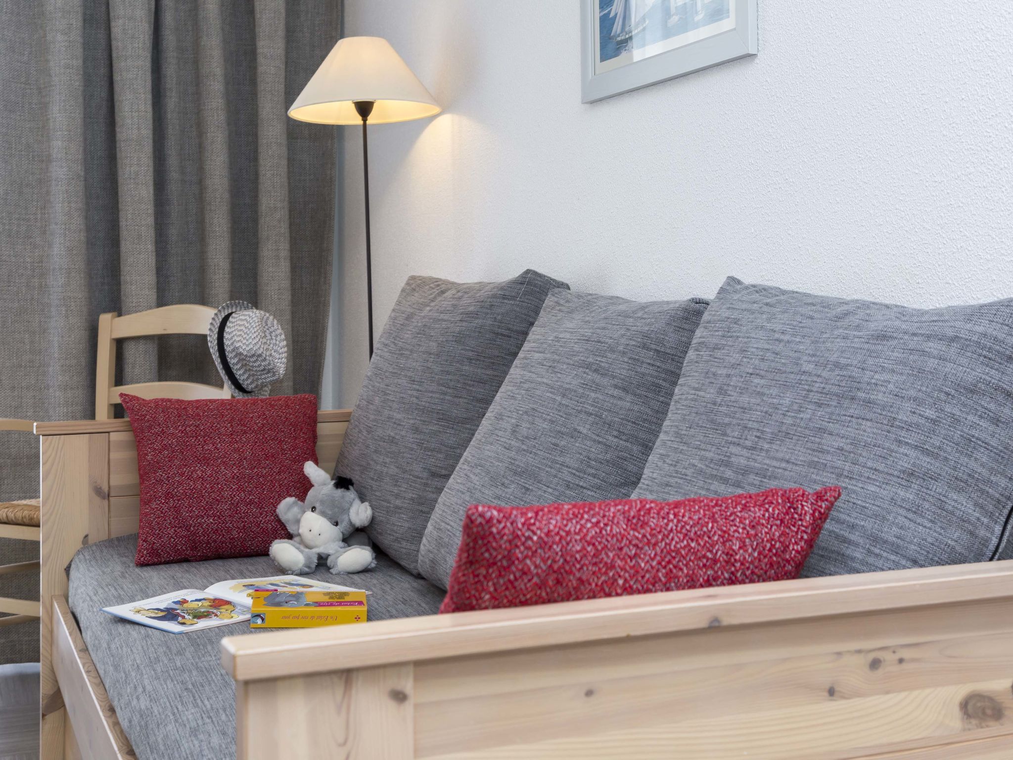 " Odalys Domaine des Roches Jaunes", 2-room apartment 35 m2. Bright, modern furnishings: living/sleeping room with 1 sofabed, 1 pull-out bed, dining table and TV can be hired (flat screen). Exit to the terrace. 1 room with 2 sleeping facilities. Kitchenette (dishwasher, 2 ceramic glass hob hotplates, microwave, electric coffee machine). Shower/WC. Electric heating. Balcony or terrace. Terrace furniture. View of the countryside. Facilities: children's high chair, baby cot. Internet (WiFi, extra). Please note: non-smokers only. Maximum 2 pets/ dogs allowed. Smoke alarm.