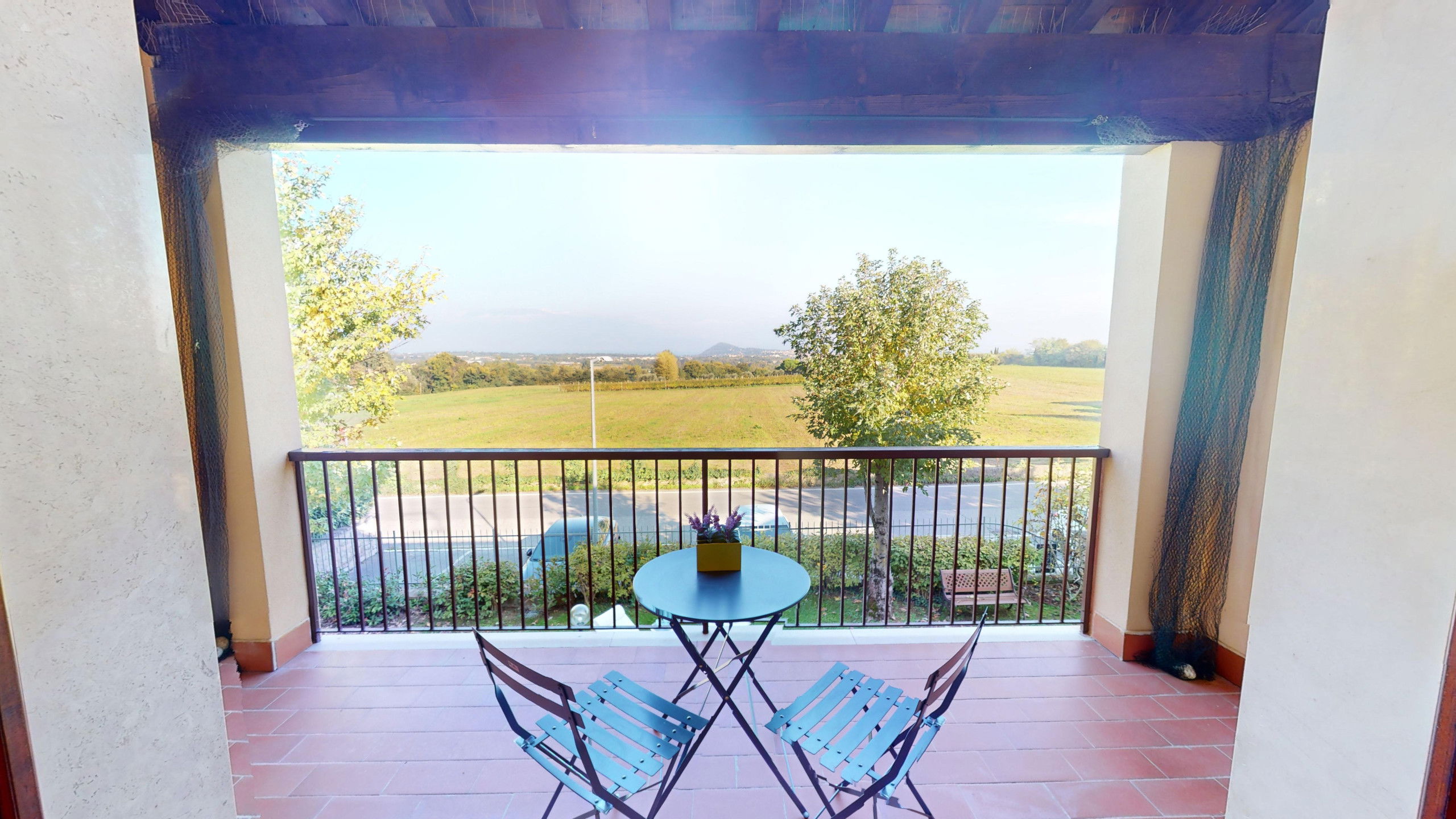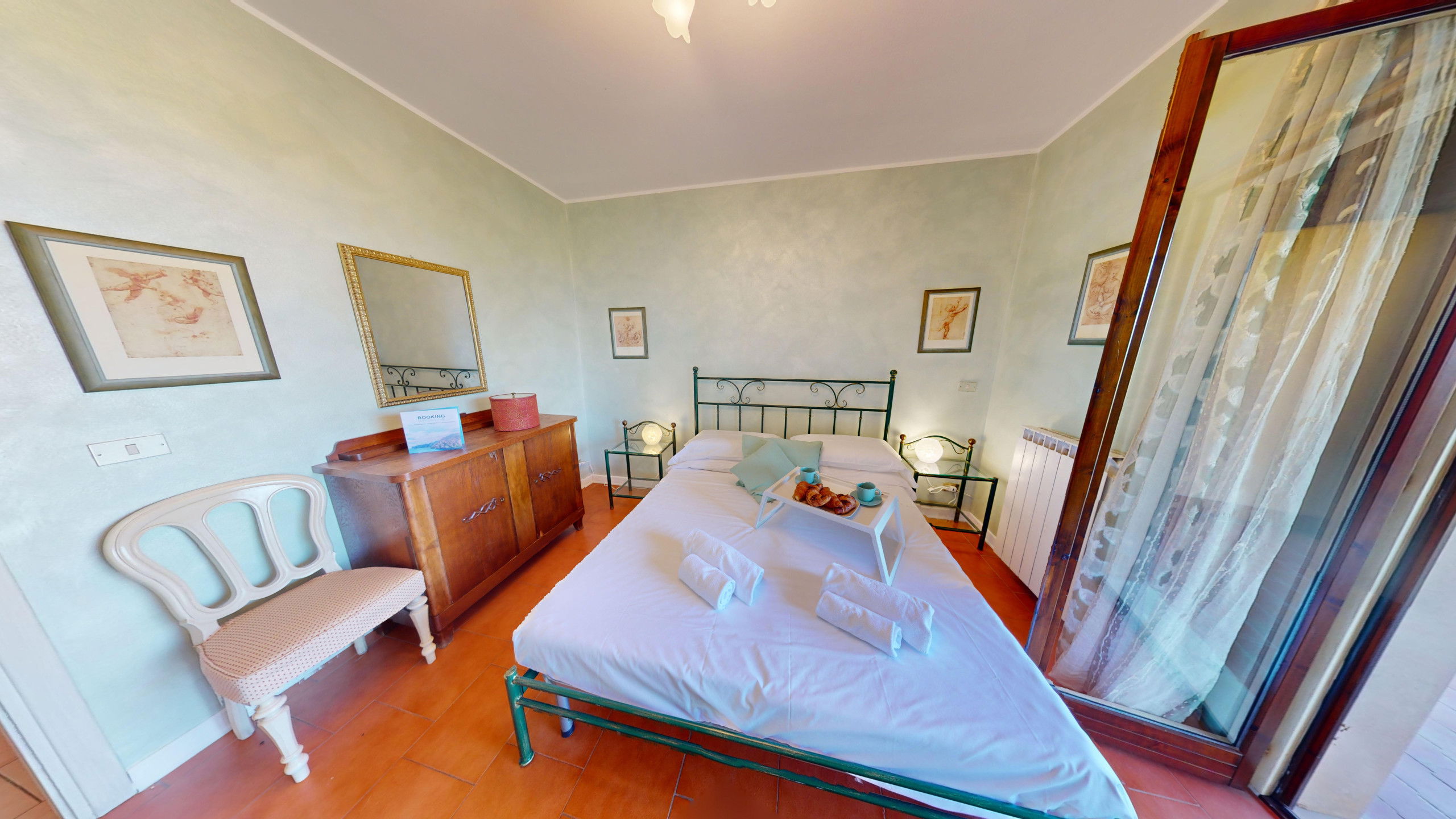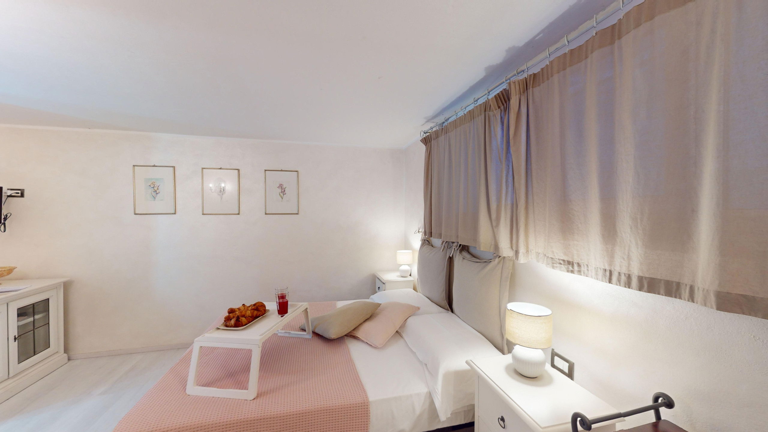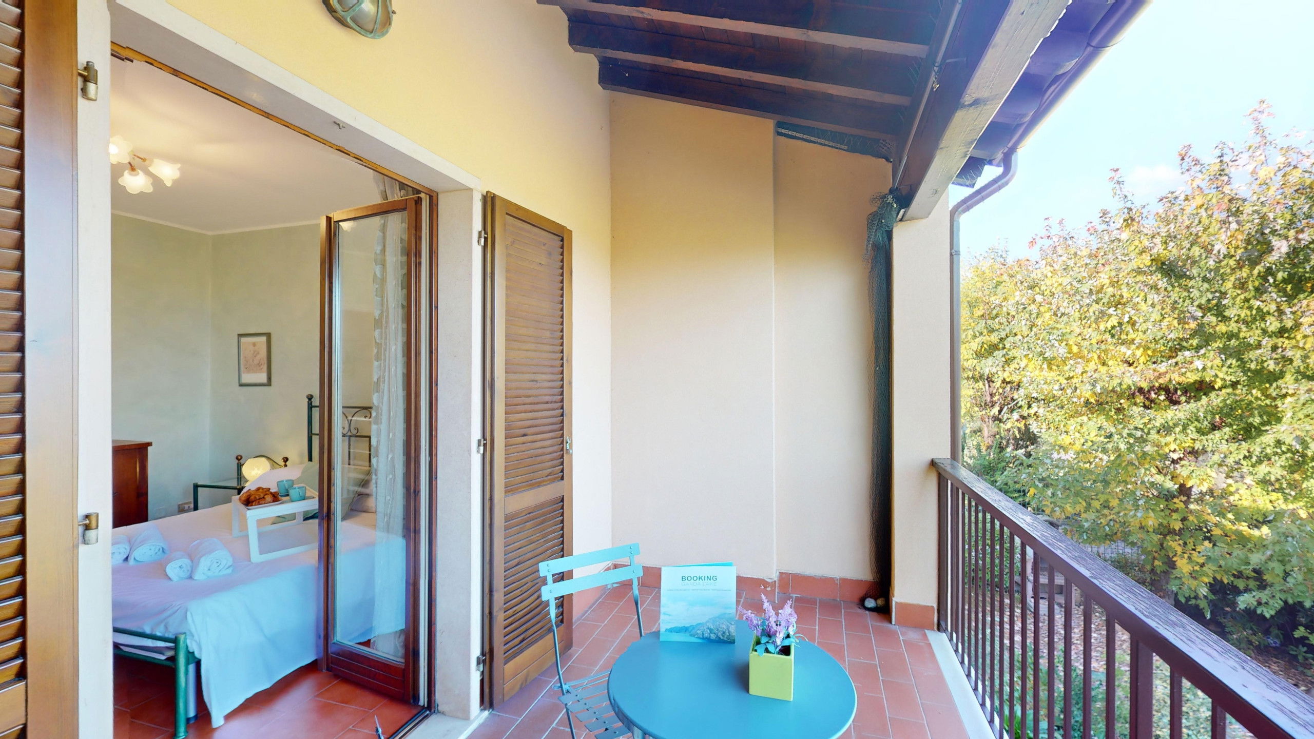 On the second floor there is the sleeping area with a double bedroom for children and a small private balcony overlooking the residence, a bathroom with tub and the double bedroom with a large terrace overlooking the lake.