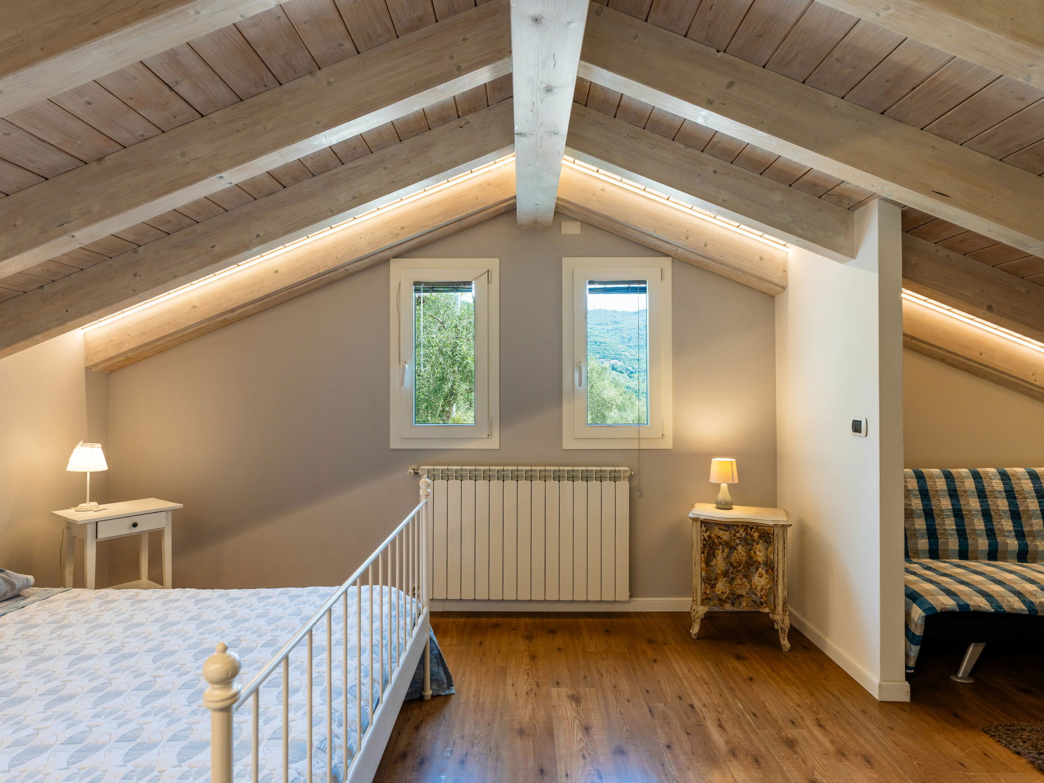 "Casa Mimosa", 4-room apartment 140 m2 on 2 levels. Beautiful furnishings: large living room with 1 sofabed (160 cm, length 200 cm). Exit to the patio. 1 double bedroom. Exit to the terrace. Kitchen-/living room (oven, dishwasher, 4 gas rings, toaster, kettle). Exit to the terrace. Shower/bidet/WC. Upper floor: (ladder), 1 double bedroom. 1 children's room, ceiling height 120 - 150 cm with 2 beds (80 cm, length 190 cm). Sep. WC. Gas heating. Heating available only from 15.10. to 30.04. Natural stone floors. Patio 300 m2. Terrace furniture, deck chairs. Beautiful panoramic view of the mountains. Facilities: washing machine. Internet (WiFi, free). Parking (2 cars). Maximum 1 pet/ dog allowed. IT008045C2K7UXH8DA