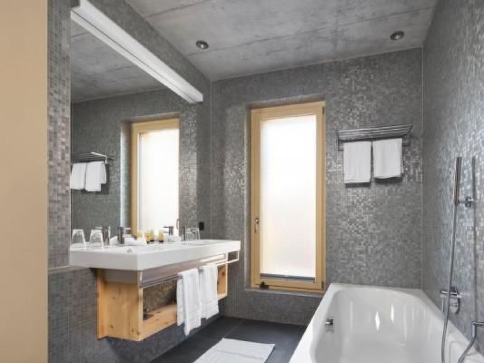 At the on-site spa, guests have access to our sauna, steam room and massage room. A connecting passage leads to the relaxation area and gym in the adjoining Chesa al Parc with direct access to the outside area with wooden deck, beach chairs, cushions and outdoor shower. Also available: a parking garage with four charging stations for electric vehicles.