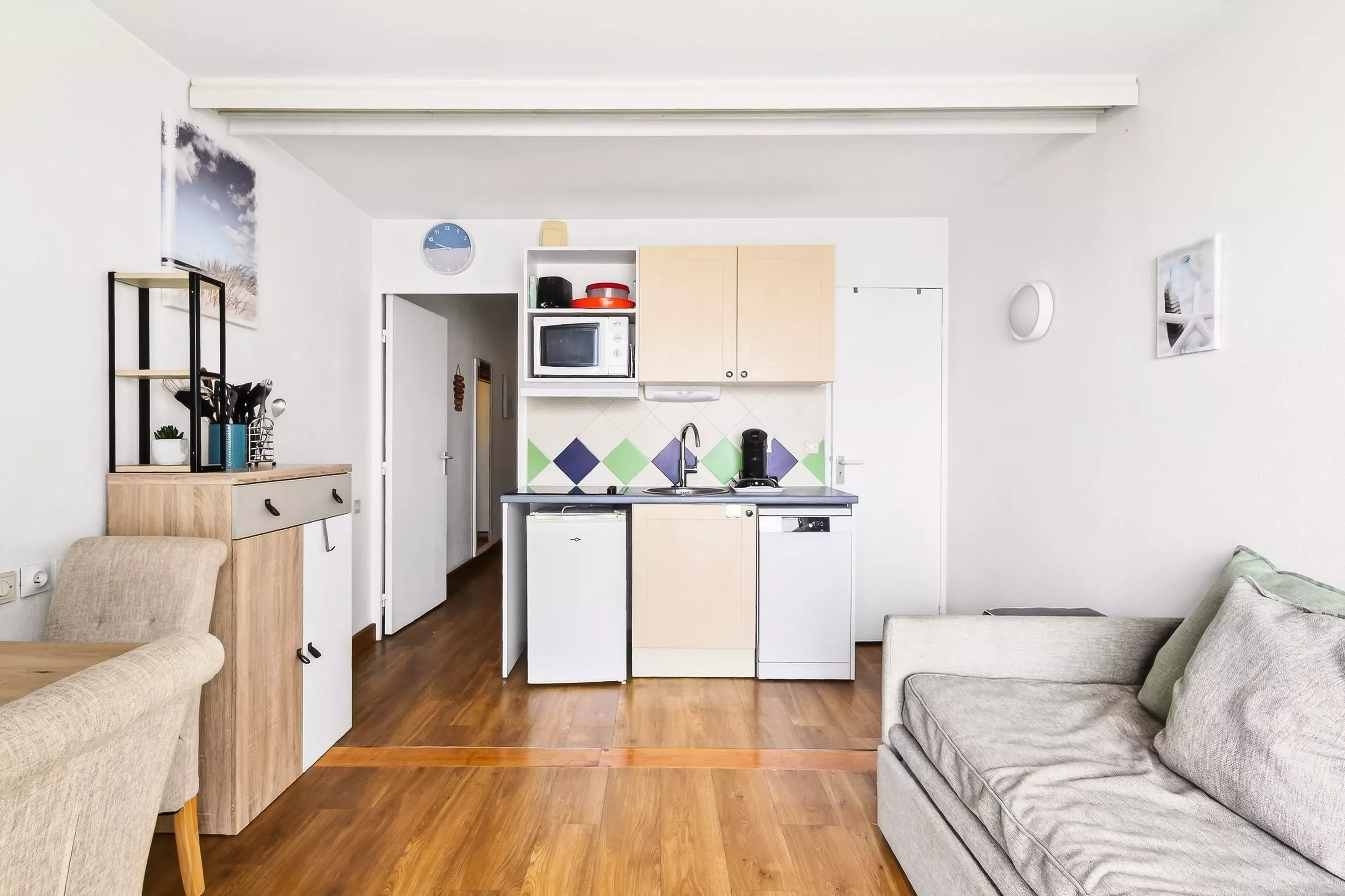 Just steps from the sea, this studio apartment with a sleeping alcove, located on the 3rd floor with elevator access, offers a prime location for enjoying the coastline. Designed to accommodate up to 4 people, this bright apartment features an optimized and functional layout. Shops and activities are less than 100 meters away, allowing you to easily get around on foot during your stay.