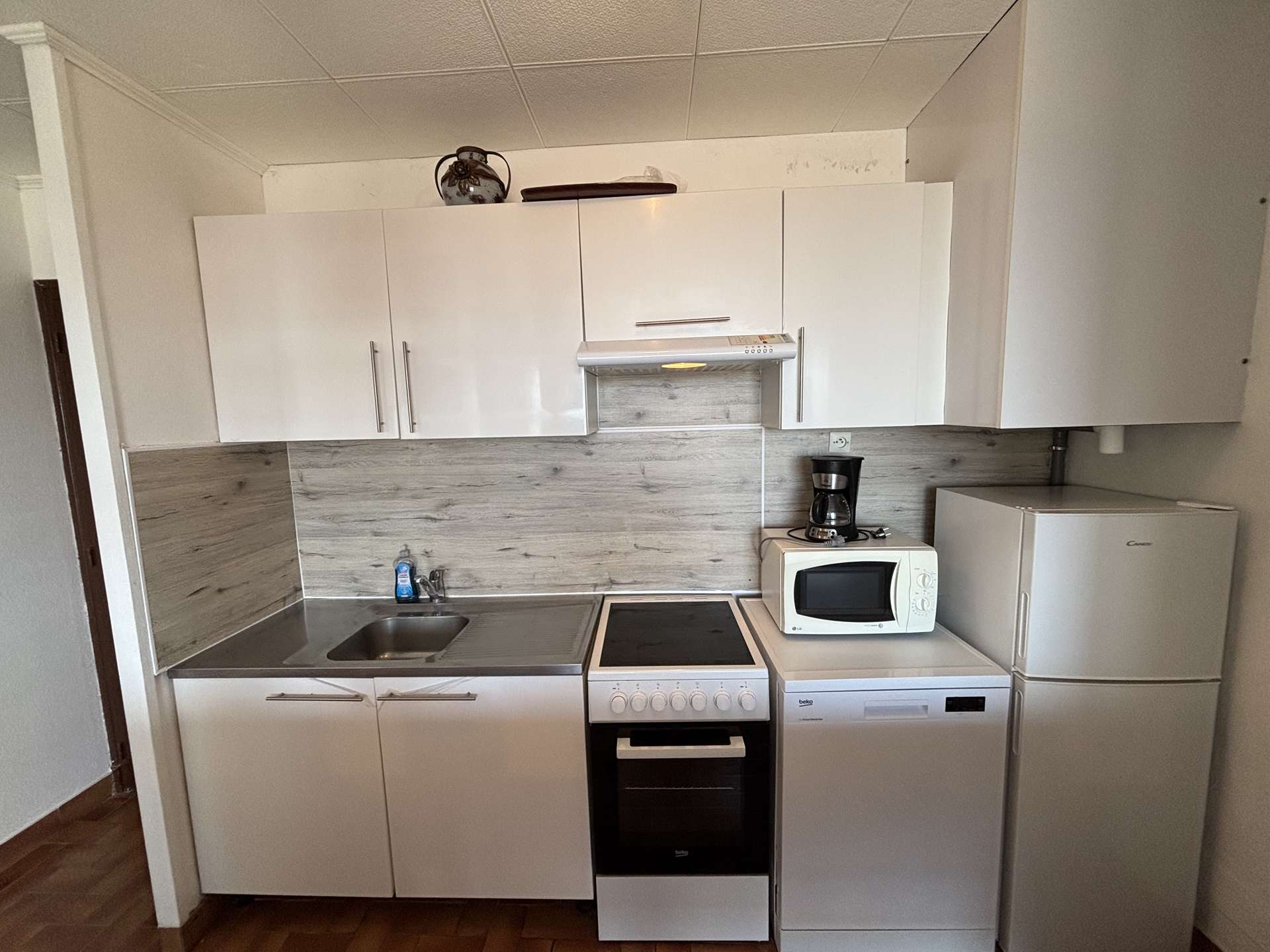 This rental by the sea, located on the 1st floor, includes a living room with a double sofa bed and flat screen TV, an equipped kitchen area with dishwasher, a bedroom with a 140 cm bed, a bathroom and separate WC.
