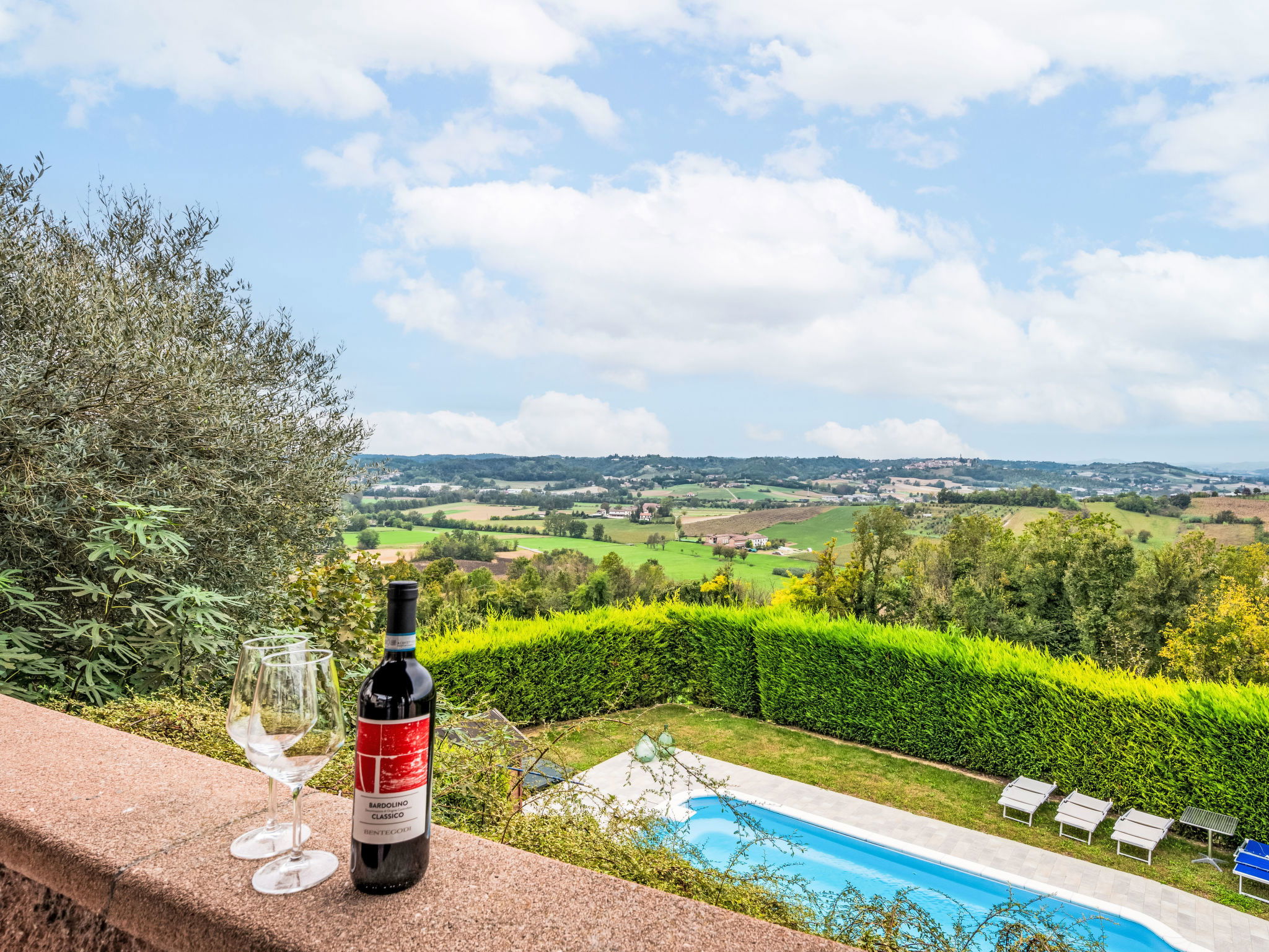Cosy 3-family house, 2 storeys, surrounded by fields and vineyards. Outside the resort, 2 km from the centre of Portacomaro, in a quiet, sunny position on top of a hill. For shared use: natural state property 1'500 m2 (fenced) with lawn and trees, swimming pool (11 x 4 m, depth 150 cm, seasonal availability: 01.May. - 15.Oct.). Outdoor shower, terrace, garden furniture, parking at the house on the premises. Grocery 2 km, supermarket 5 km, restaurant 1 km, bakery 2 km, bus stop 1.6 km. Nearby attractions: Asti 12 km, Turin 50 km, Alba 35 km. Please note: car recommended. Owner lives in separate semi-detached house. The owner has a dog.