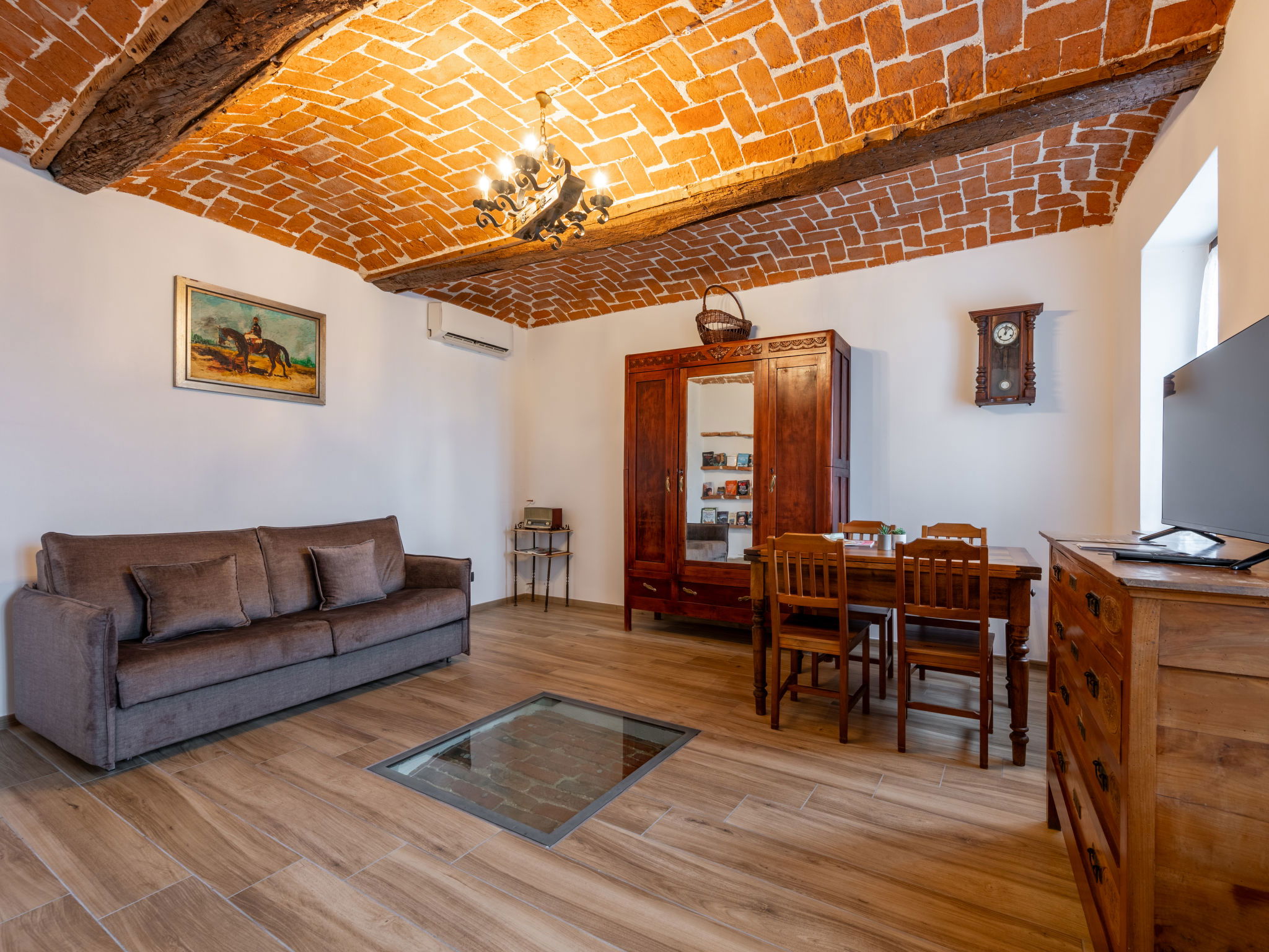 "Zio", 3-room semi-detached house 90 m2. Rustic and cosy furnishings: living/sleeping room with 1 double sofabed, Scandinavian wood stove, TV and air conditioning. Kitchen (oven, Gas stove, 4 gas rings, freezer, electric coffee machine). Shower/WC. Upper floor: 1 room with 1 bed, 1 double bed and air conditioning. Exit to the balcony. 1 room with 1 bed, 1 double bed and air conditioning. Exit to the balcony. Natural stone floors. Large terrace 20 m2. Terrace furniture, barbecue. Beautiful view of the mountains and the countryside. Facilities: washing machine, iron, baby cot for up to 2 year olds. Internet (WiFi, free). Please note: maximum 1 pet/ dog allowed. Private entrance. IT005087C2AZKI95PV