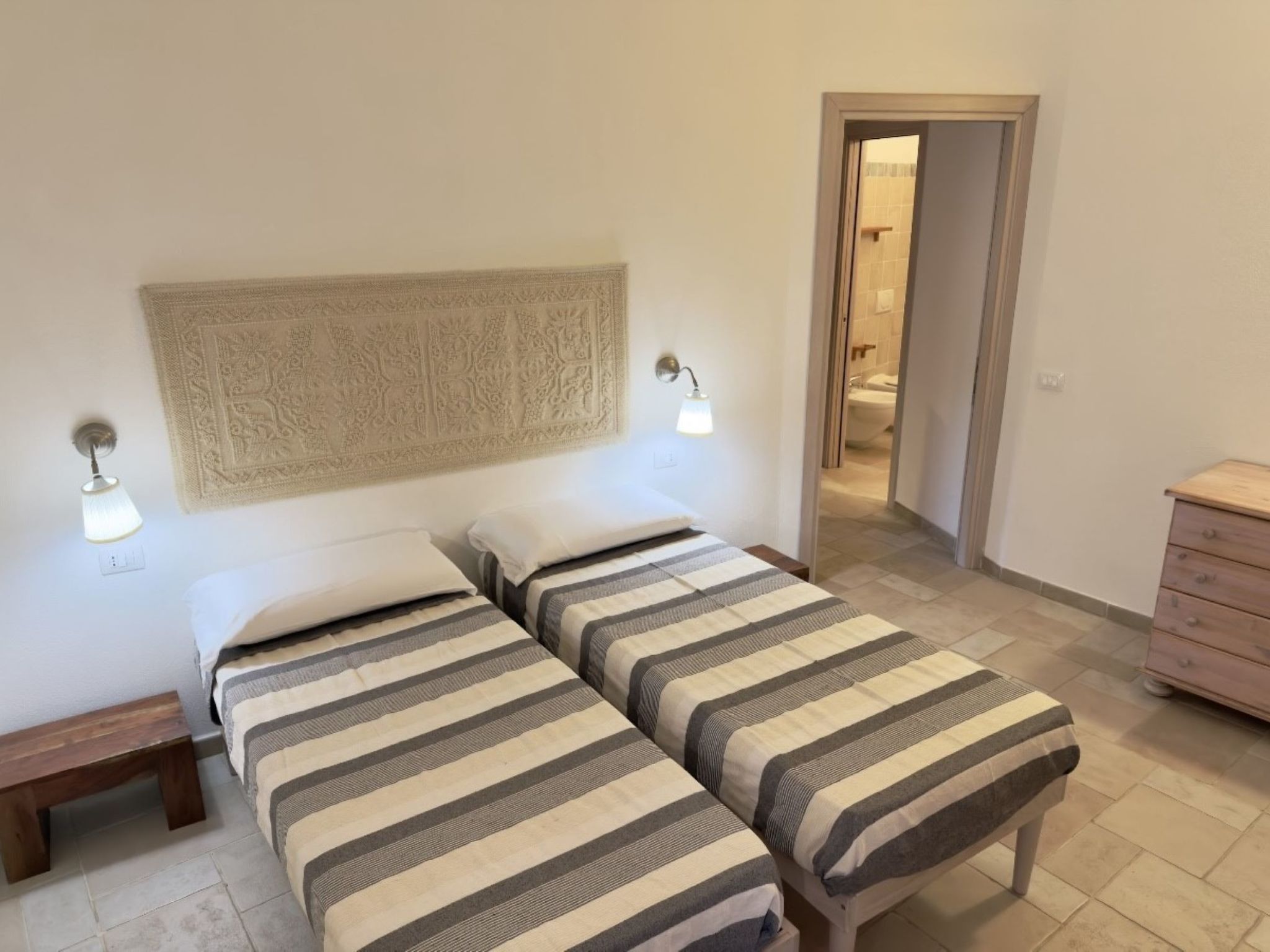 Pinus Village 13 km from Pula: Small residence "Abbaechelu", surrounded by trees. 24 apartments in the residence. 13 km from the centre of Pula, 56 m from the centre of Cagliari, in the residential district, 350 m from the sea, 350 m from the beach, in the countryside. For shared use: property (fenced), beautiful garden with plants and trees, swimming pool (120 m2, seasonal availability: 01.May. - 31.Oct.). Children's pool, barbecue. In the complex: reception, restaurant, bar, WiFi, washing machine, tumble dryer (for shared use). Parking. Grocery 7.4 km, restaurant 1.7 km, bus stop 1.7 km, sandy beach 350 m. Nearby attractions: Grotte Pinus Village 1.6 km, Chia 7.5 km, Spiaggia di Santa Margherita di Pula 3.4 km. Please note: car recommended. On request: airport transfer to the holiday accommodation. Please note: The bar and restaurant in the residence are not open throughout the season.