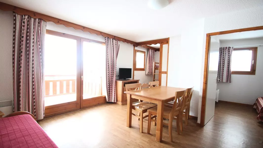 In the heart of the slopes of Puy Saint Vincent, rental of a pretty apartment of good standing for ski holidays, balcony, furnished and equipped for holidays in the mountains for 6 people. RESIDENCE LE PARC AUX ÉTOILES SWIMMING POOL AND SAUNA.