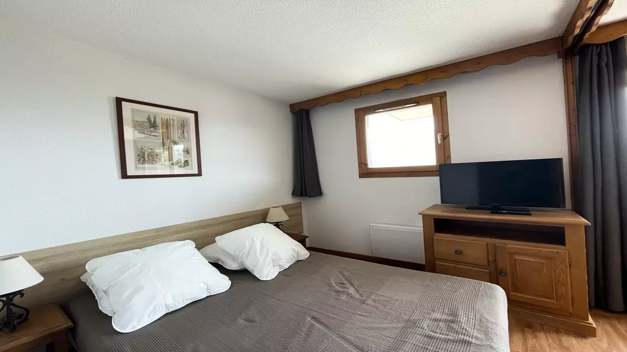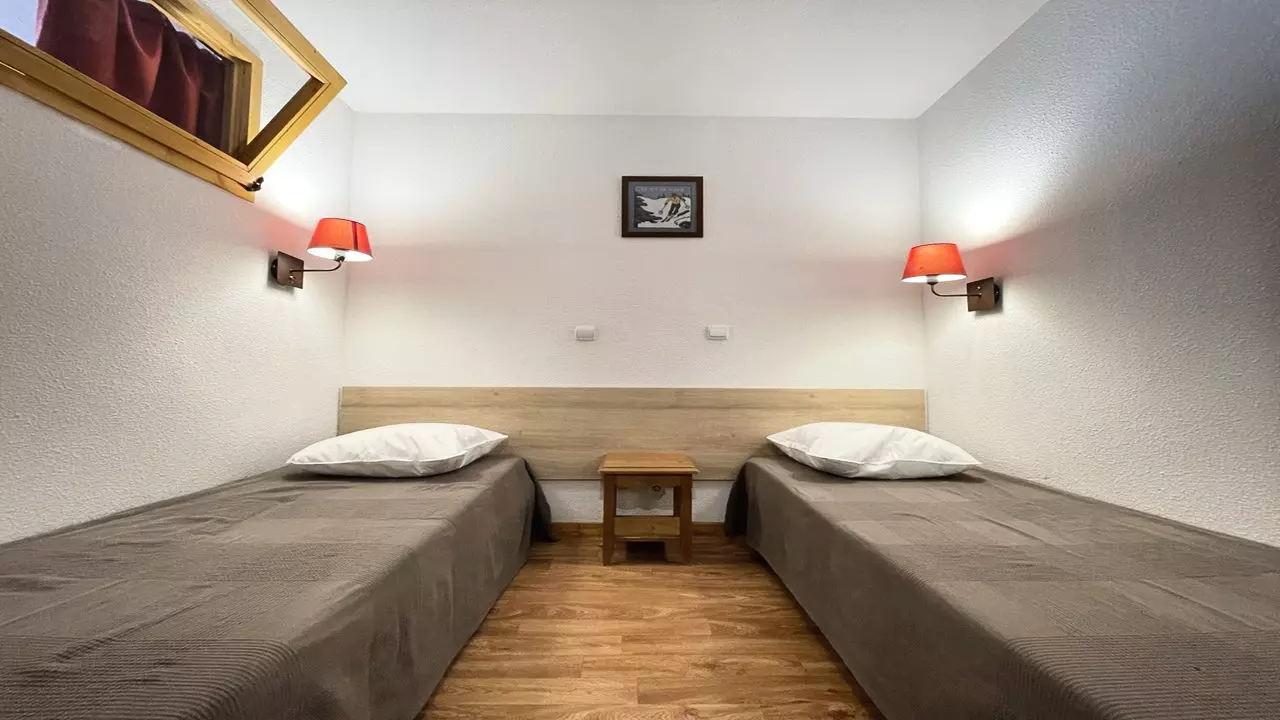 - Beds: one bedroom with double bed (140x190) and one cabin bedroom with two single beds (80x190) and storage shelves. Beds equipped with duvets.