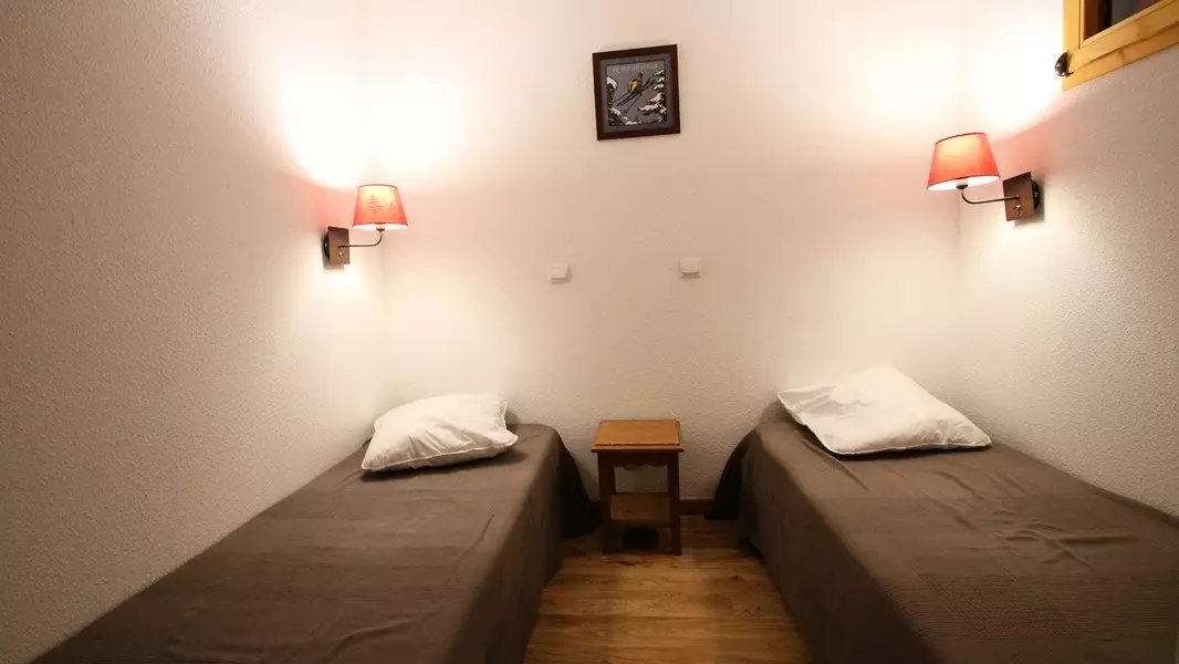 - Beds: one bedroom with double bed (160x190) and one cabin bedroom with two single beds (80x190) and storage shelves. Beds equipped with duvets.