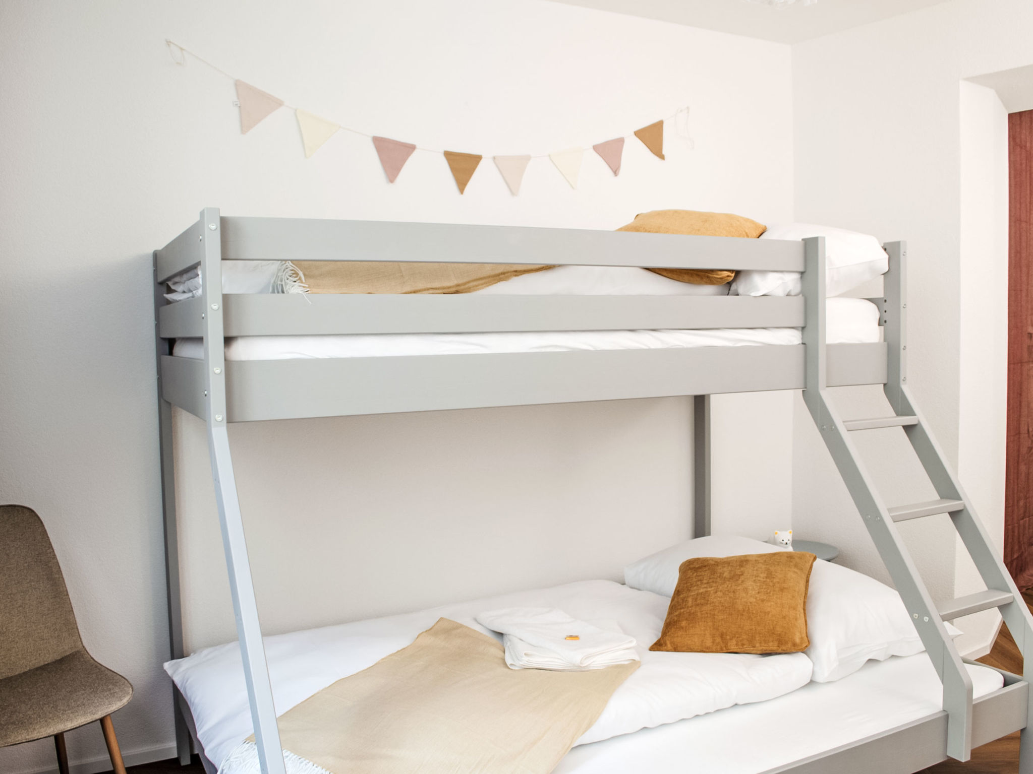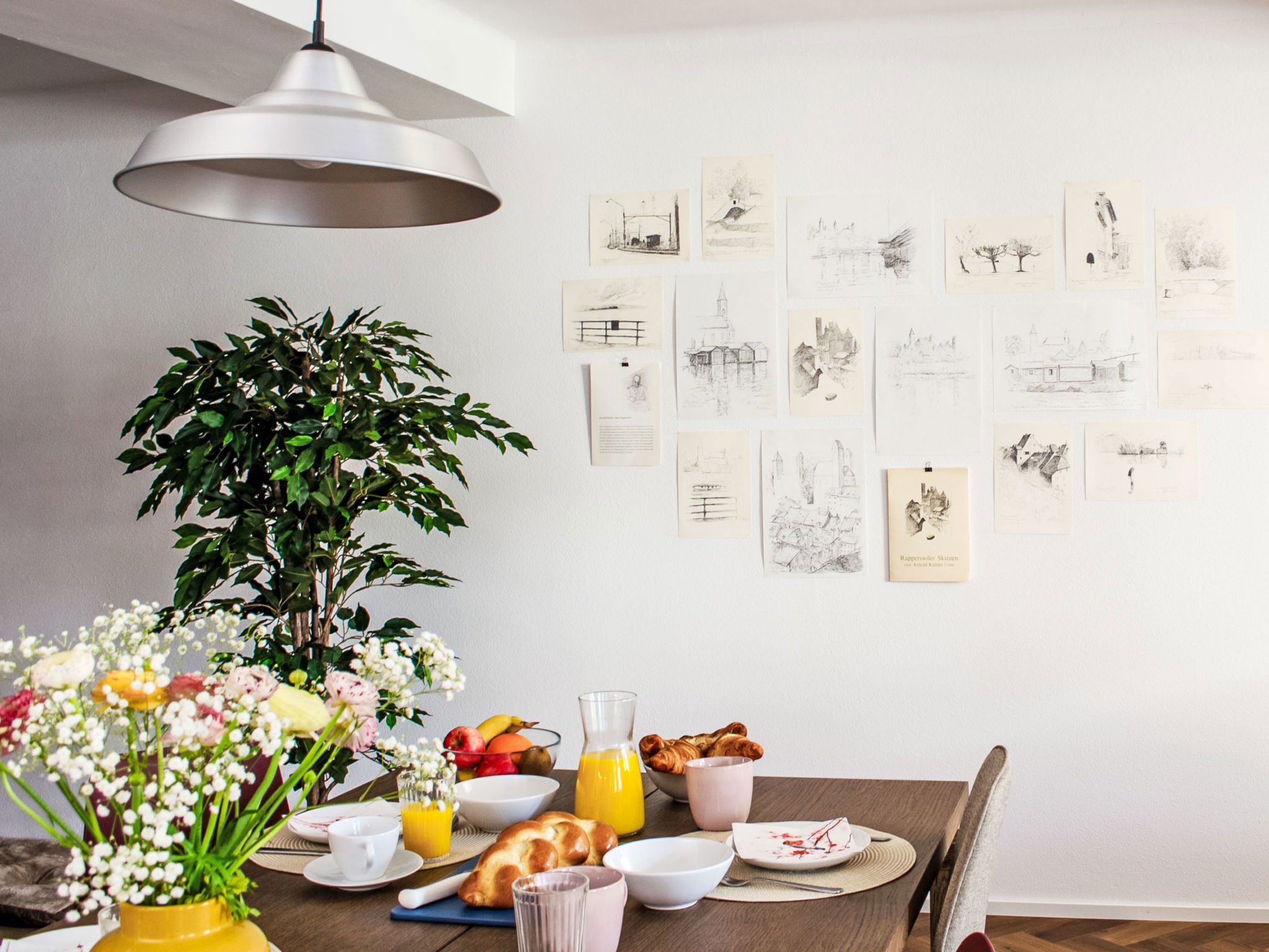 "Haus zum Hecht", 3-room apartment 120 m2. Modern and stylish furnishings: living/dining room with 1 double sofabed (140 cm, length 200 cm), dining table. 1 room with 1 x 2 bunk beds (90 cm, length 200 cm). 1 room with 1 double bed (180 cm, length 200 cm). Open kitchen (oven, dishwasher, 4 induction hot plates, toaster, kettle, microwave, freezer, electric coffee machine). Shower/WC. Terrace 14 m2 partly roofed. Partial view of the lake and the port. Facilities: washing machine, children's high chair, baby cot, hair dryer. Internet (WiFi, free). Please note: non-smokers only. 2 pets/ dogs allowed. Smoke alarm, fire extinguisher.
