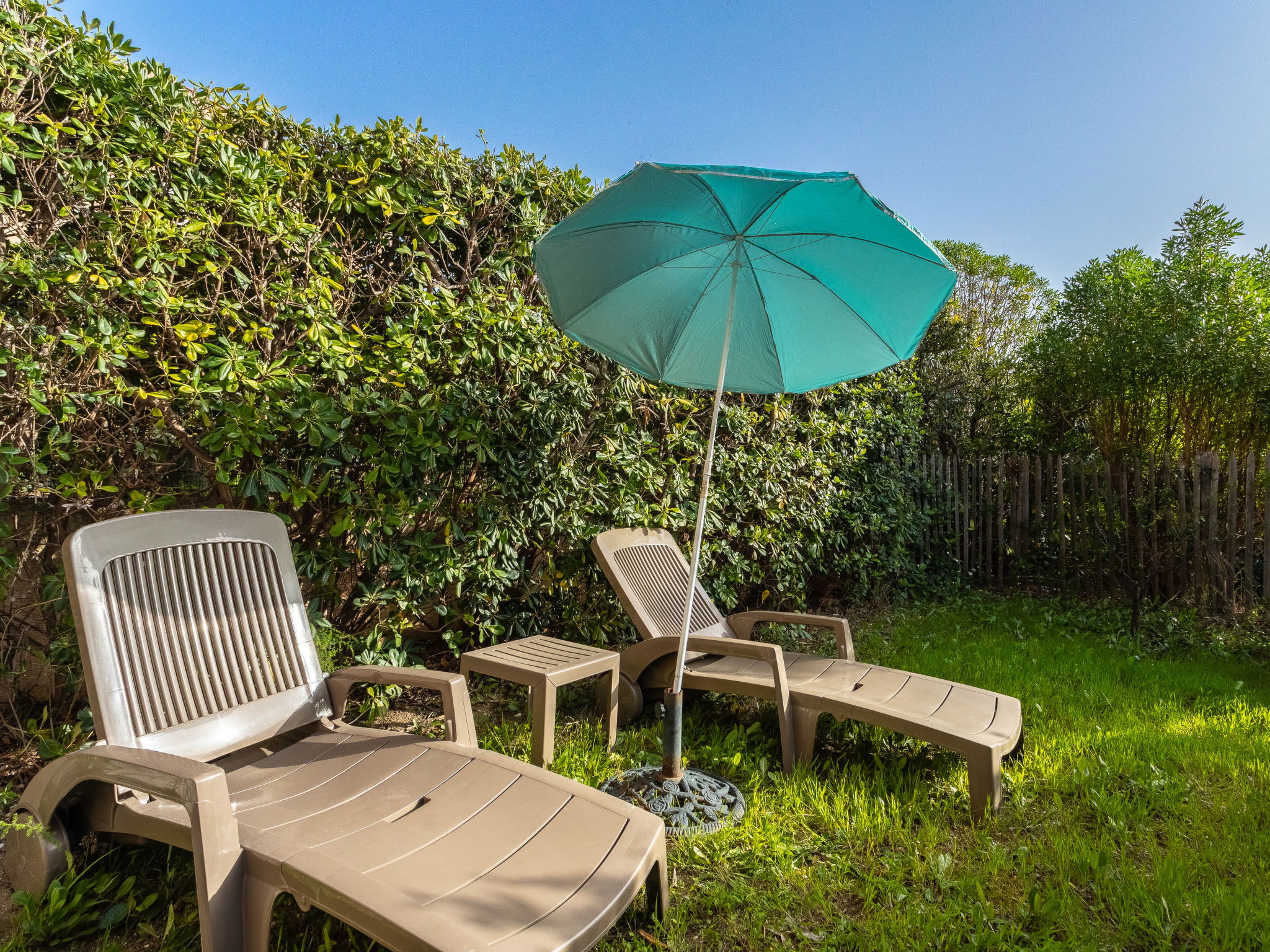 2-room apartment 28 m2, on the ground floor, south facing position. Comfortable furnishings: living/dining room with 1 sofabed (140 cm, length 190 cm), TV (flat screen), air conditioning. With veranda. 1 room with 1 french bed (160 cm, length 200 cm). Kitchenette (3 hot plates, oven, dishwasher, toaster, kettle, microwave, freezer, electric coffee machine). Bath/WC. Electric heating. Terrace 12 m2, south facing position, patio 12 m2, south facing position. Terrace furniture. Facilities: washing machine, iron, hair dryer. Internet (WiFi, extra). Parking space n 4. Please note: apartment street side. Non-smokers only. Maximum 1 small pet/ dog allowed. TV only FR. Smoke alarm. Offer by a private individual according to Art. 155, IV of CGI. 831520605225