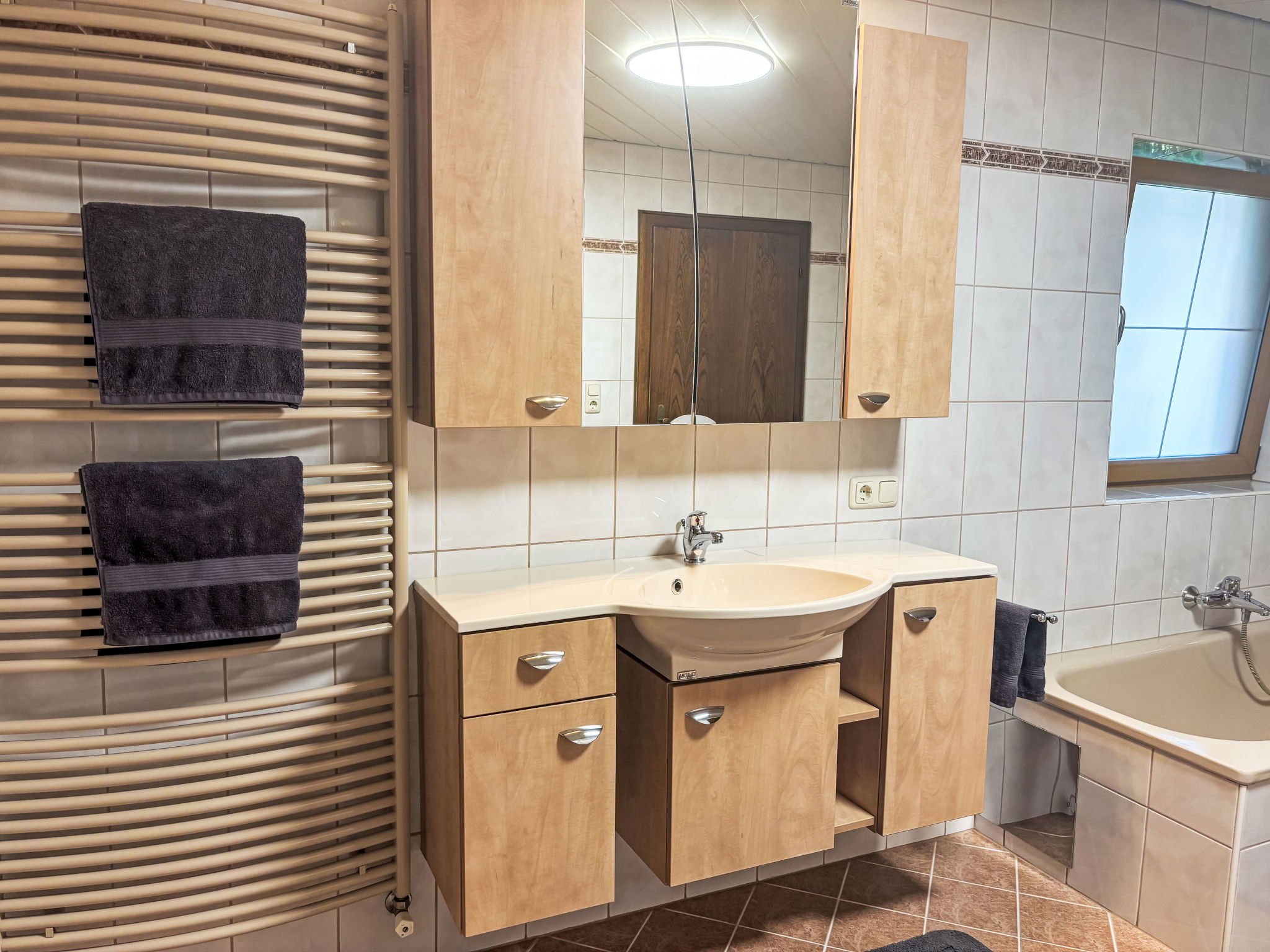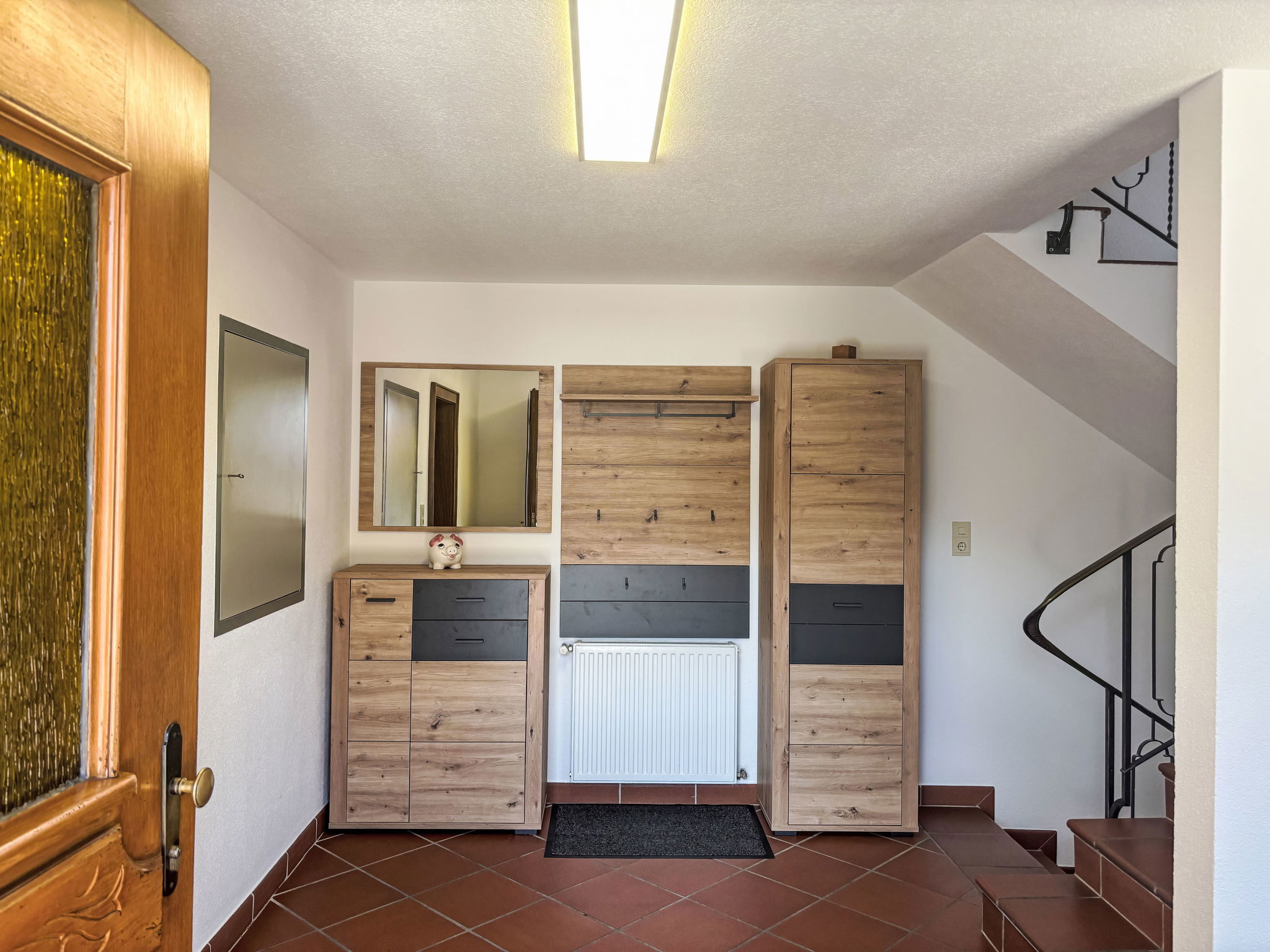 "Panoramablick", 4-room apartment 125 m2, on the ground floor. Tasteful and cosy furnishings: entrance hall with dining table. Living room with satellite TV (flat screen). 2 double bedrooms. Living/sleeping room with 1 x 1 bunk beds (90 cm, length 200 cm). Large kitchen (oven, dishwasher, 4 induction hot plates, toaster, kettle, microwave, freezer, electric coffee machine). Bath/WC. Oil heating. Terrace. Terrace furniture. Beautiful panoramic view of the mountains and the forest. Facilities: Internet (WiFi, free). Please note: non-smokers only. Maximum 1 pet/ dog allowed. Smoke alarm.