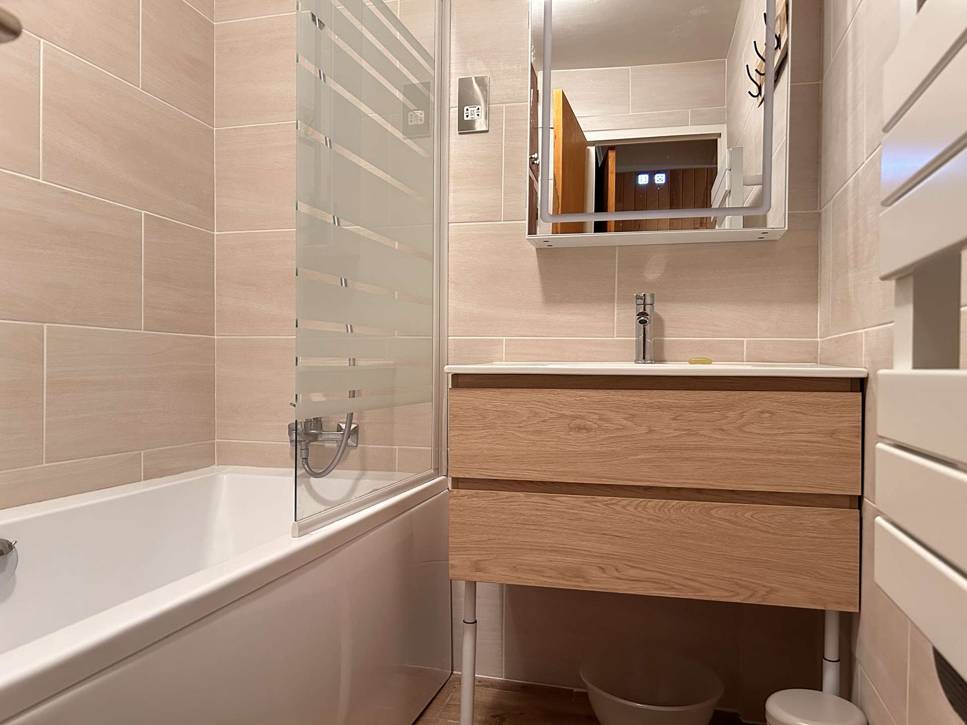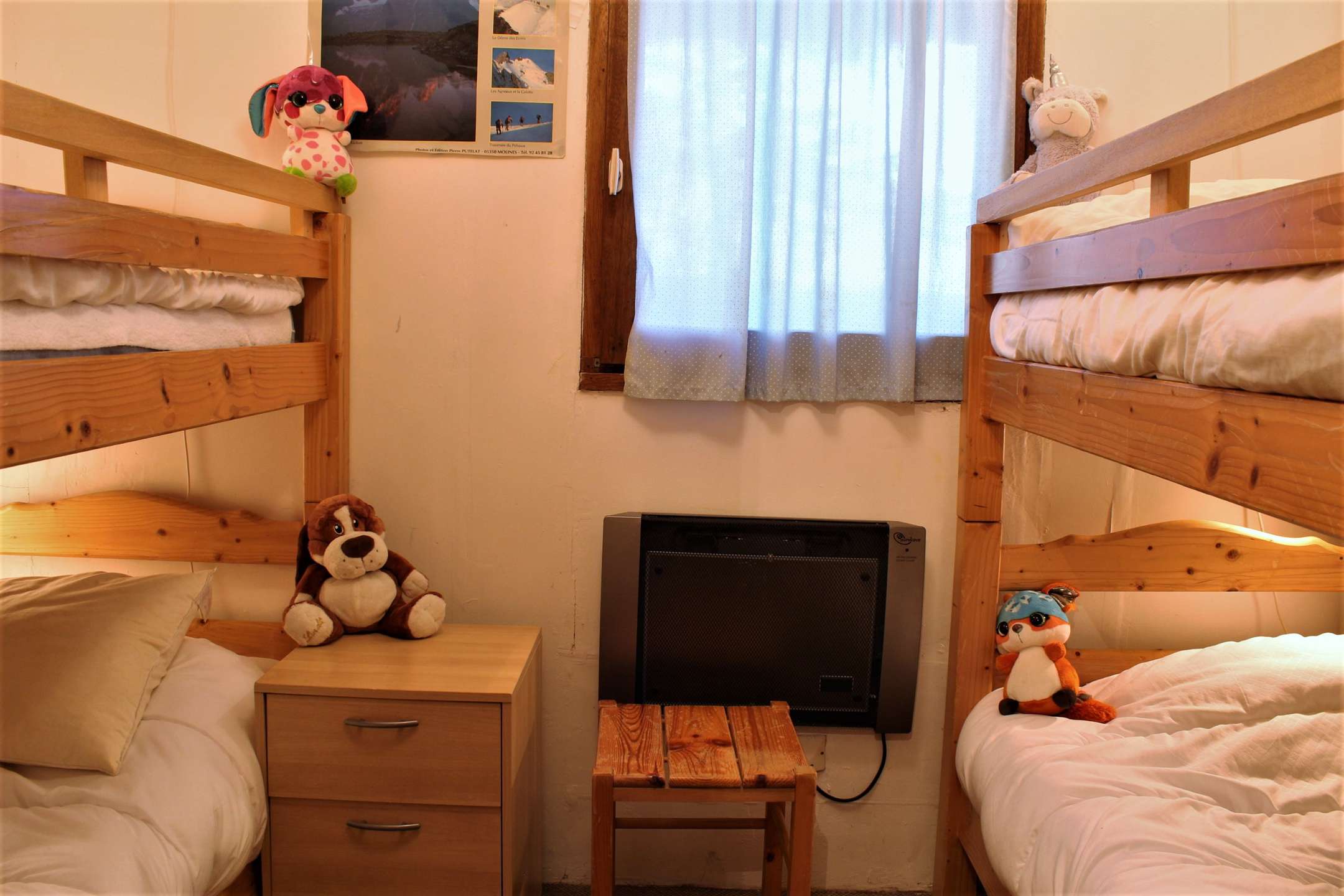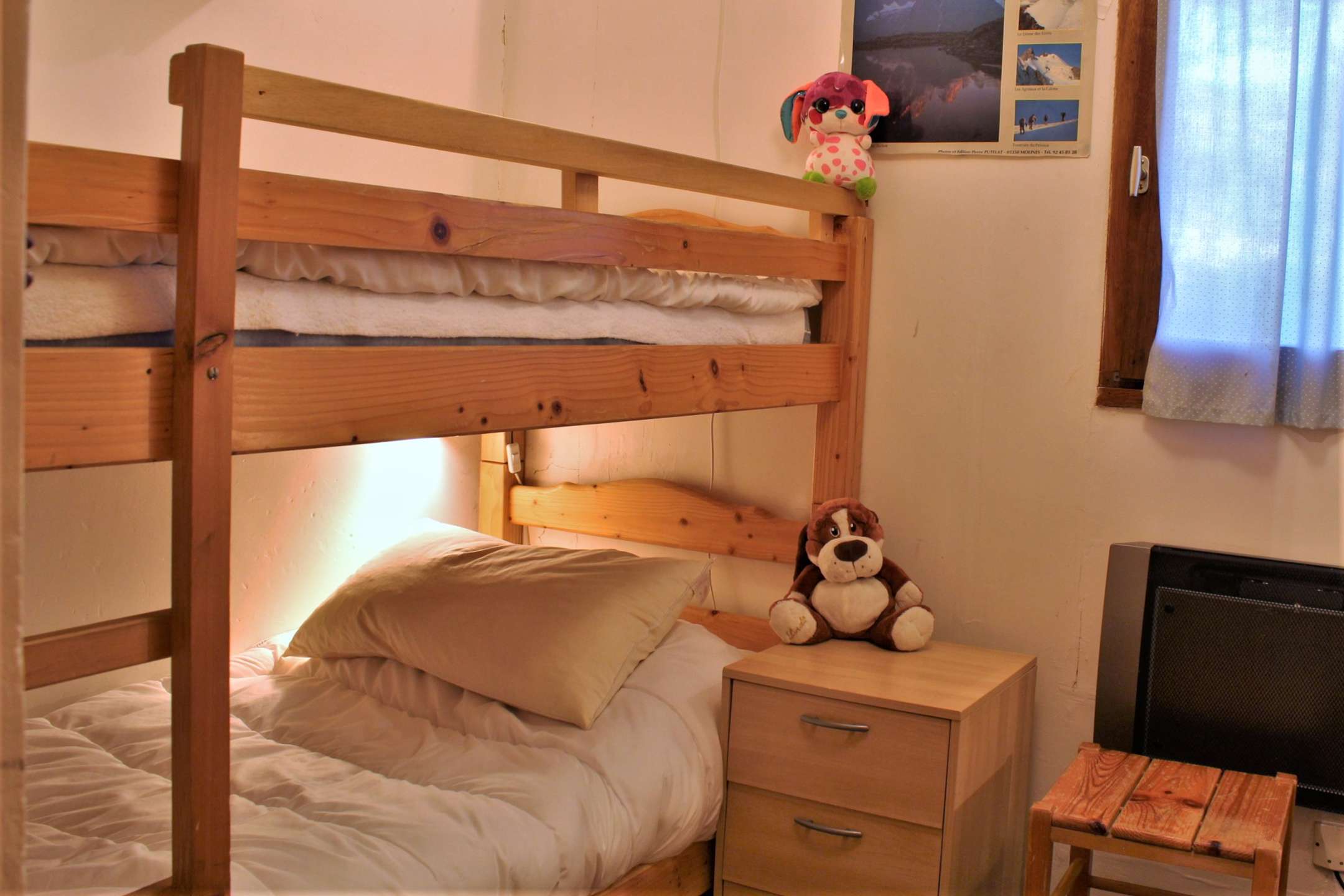 Located a few steps from the Orée du Bois ski lift, in a small condominium, the apartment consists of an equipped kitchen, a living room with convertible sofa opening onto a small terrace facing north/east, a bedroom with a double bed, and a second bedroom with 2 bunk beds (i.e. 4 people). It also offers a bathroom with bathtub and a separate toilet. The apartment also has a ski locker, located in the hallway outside the apartment.