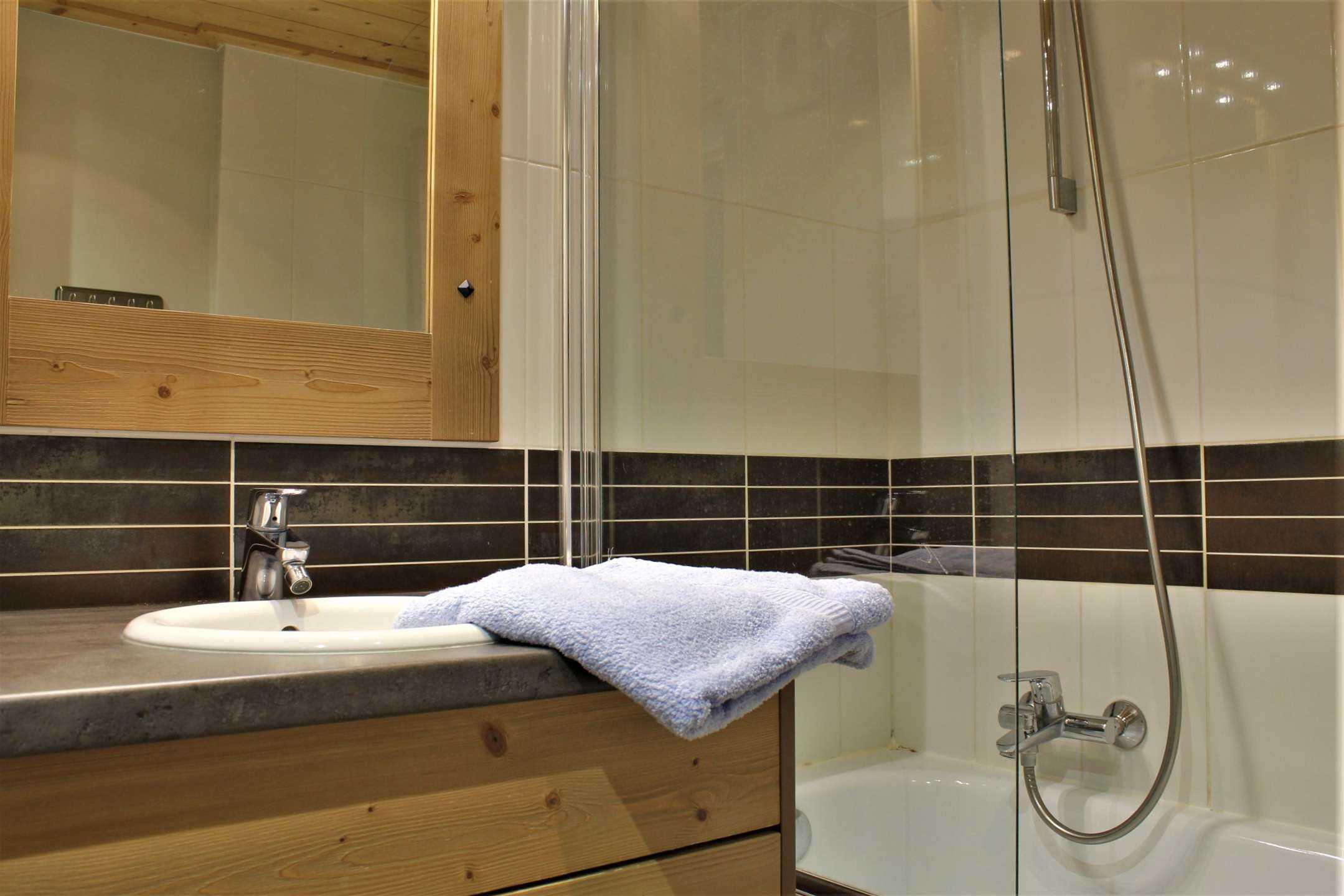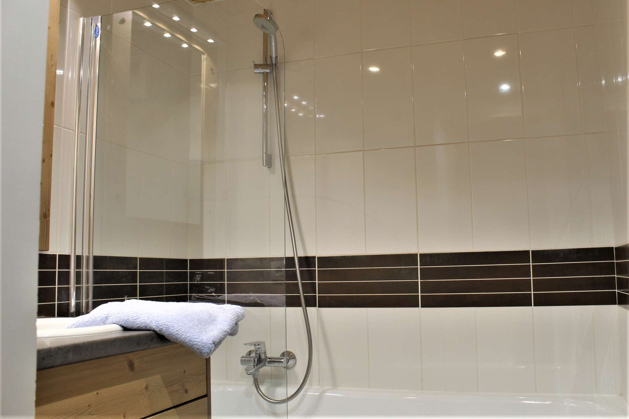 Located near the slopes, the apartment includes an entrance, a bathroom with bathtub, a separate toilet, a main room opening onto a balcony, an equipped kitchen, a bedroom with a 140 bed, a sleeping area with a bed in 90 and a convertible sofa in the living room. The apartment also has a ski locker.