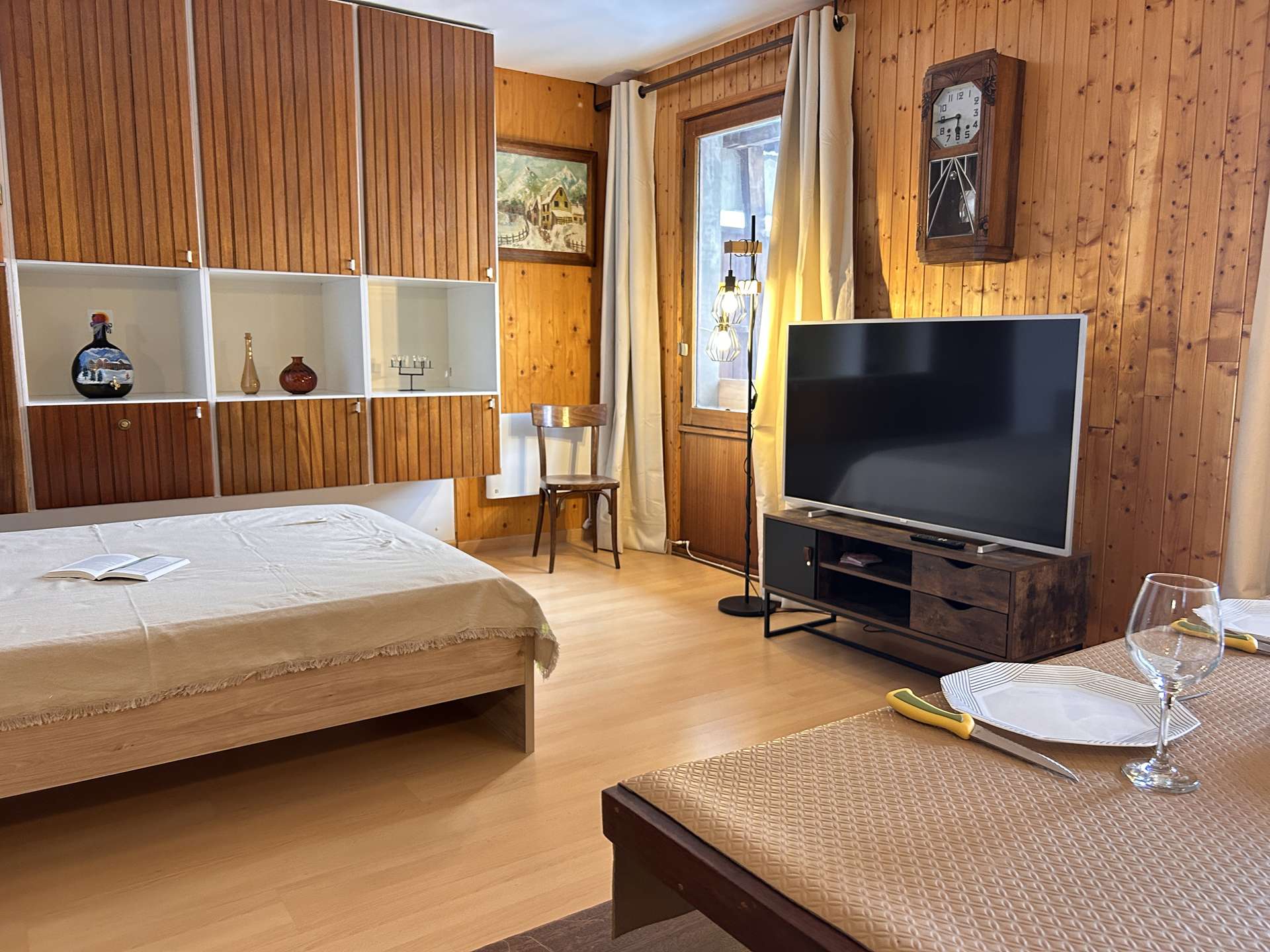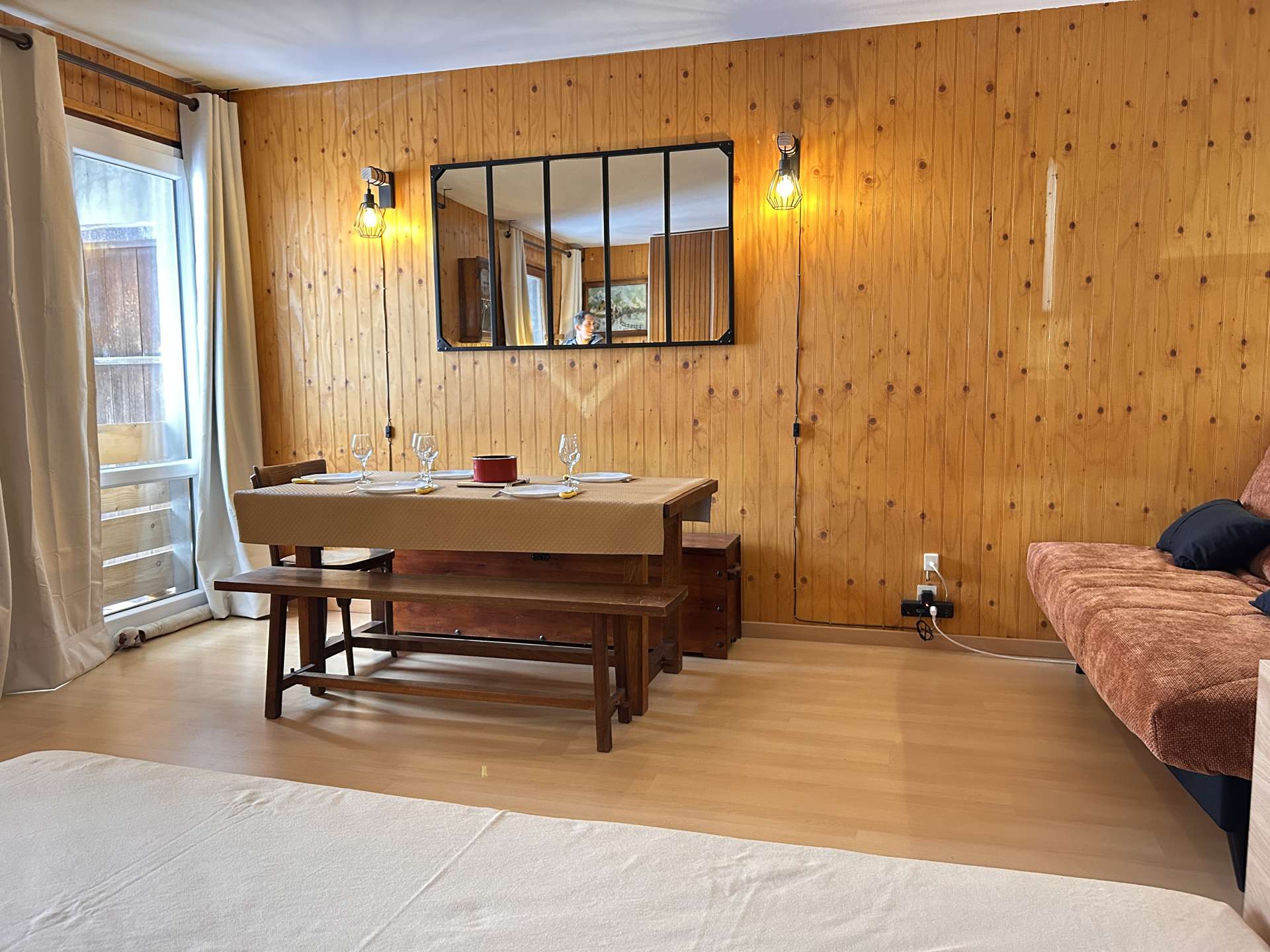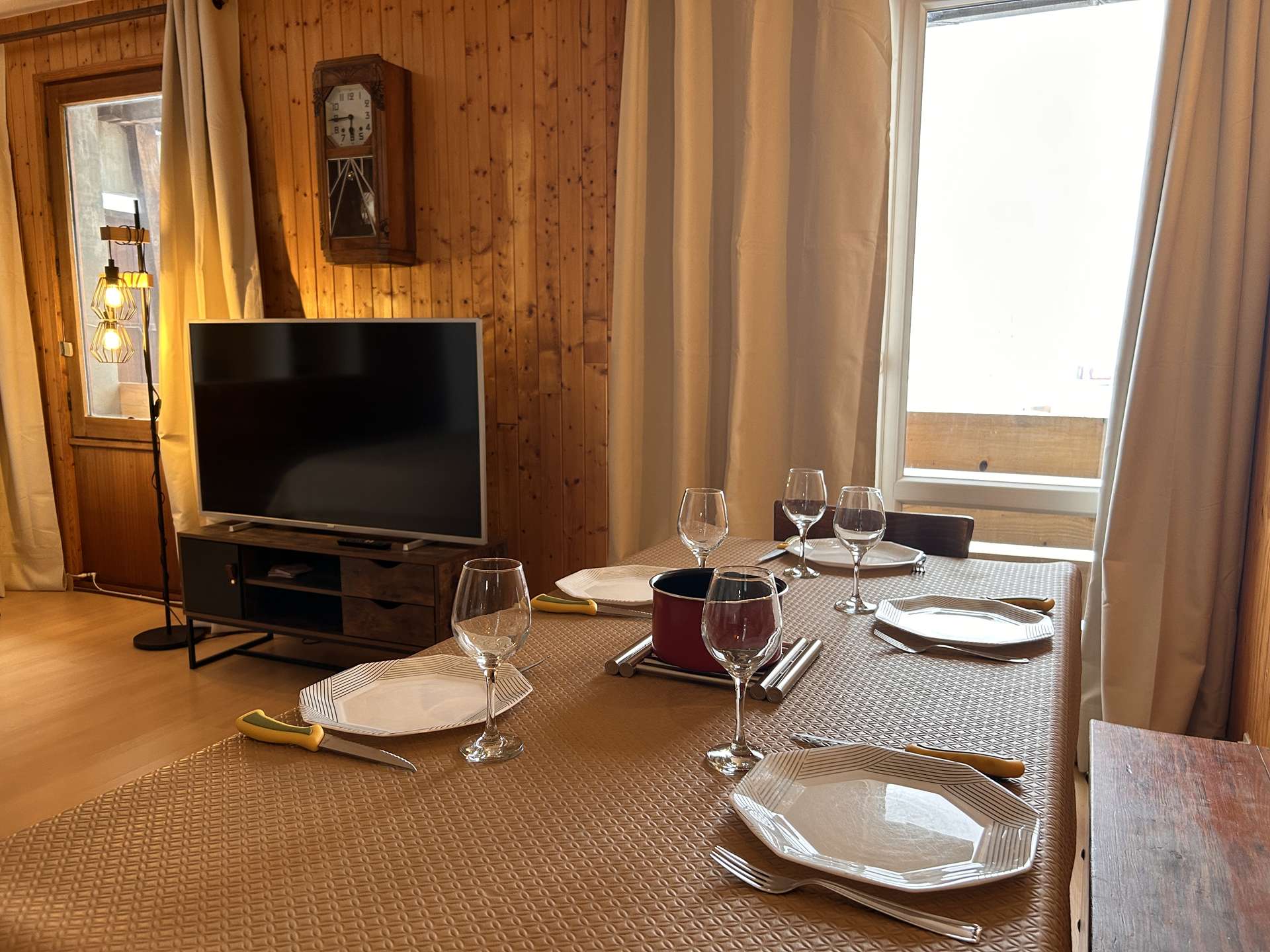 The accommodation faces south with a view of the slopes (no access to the balcony during this winter season 2025-2026).