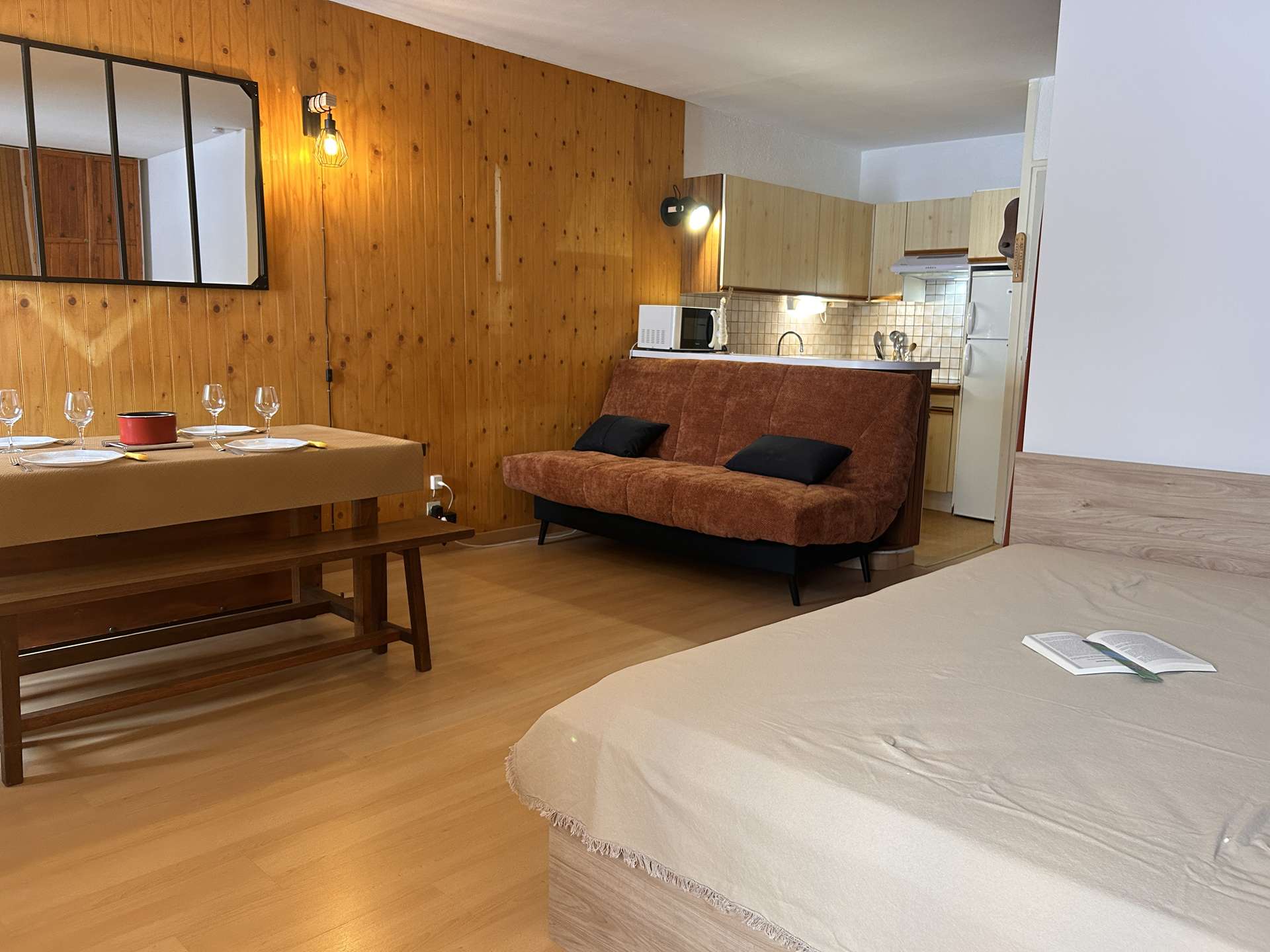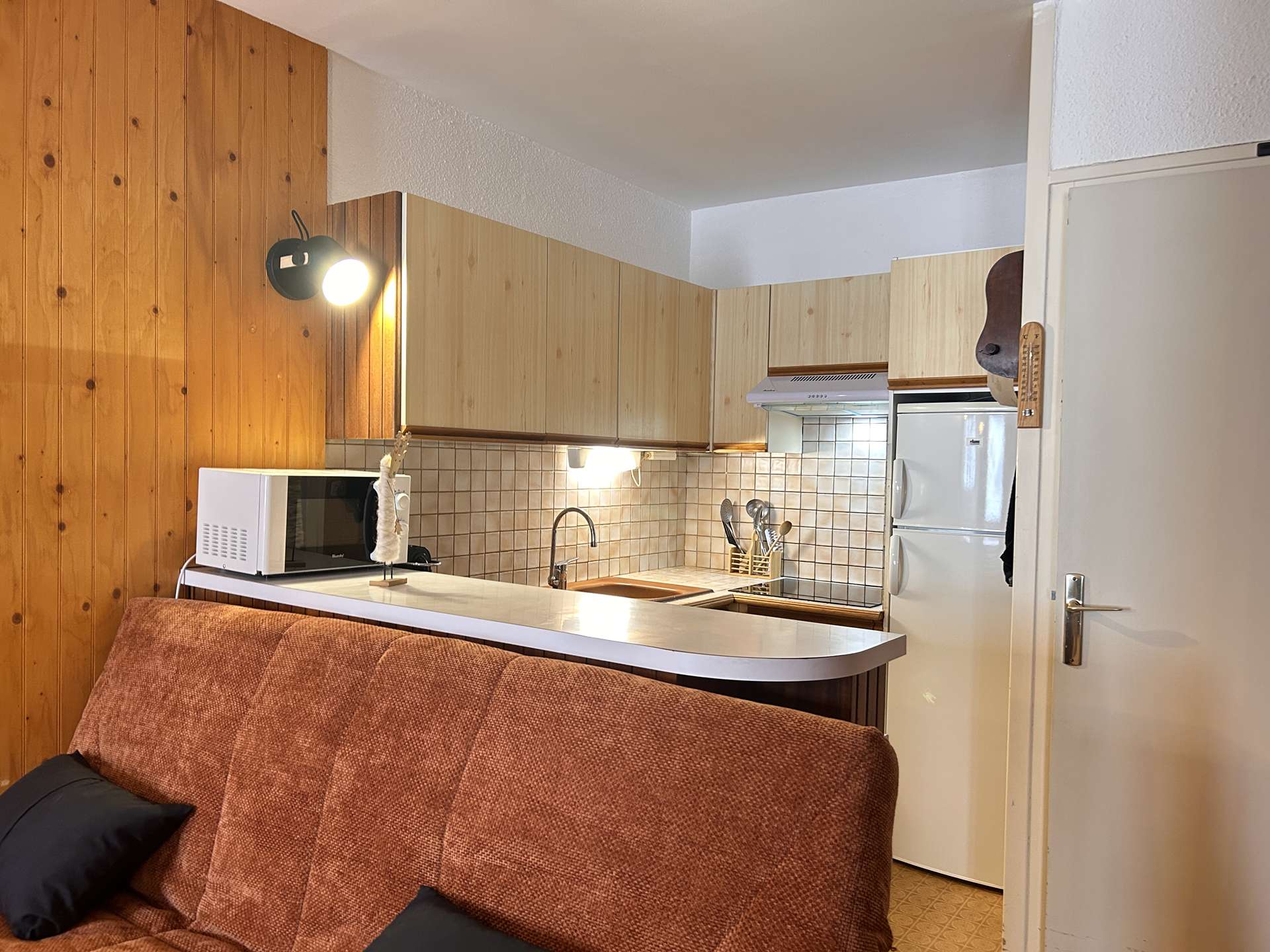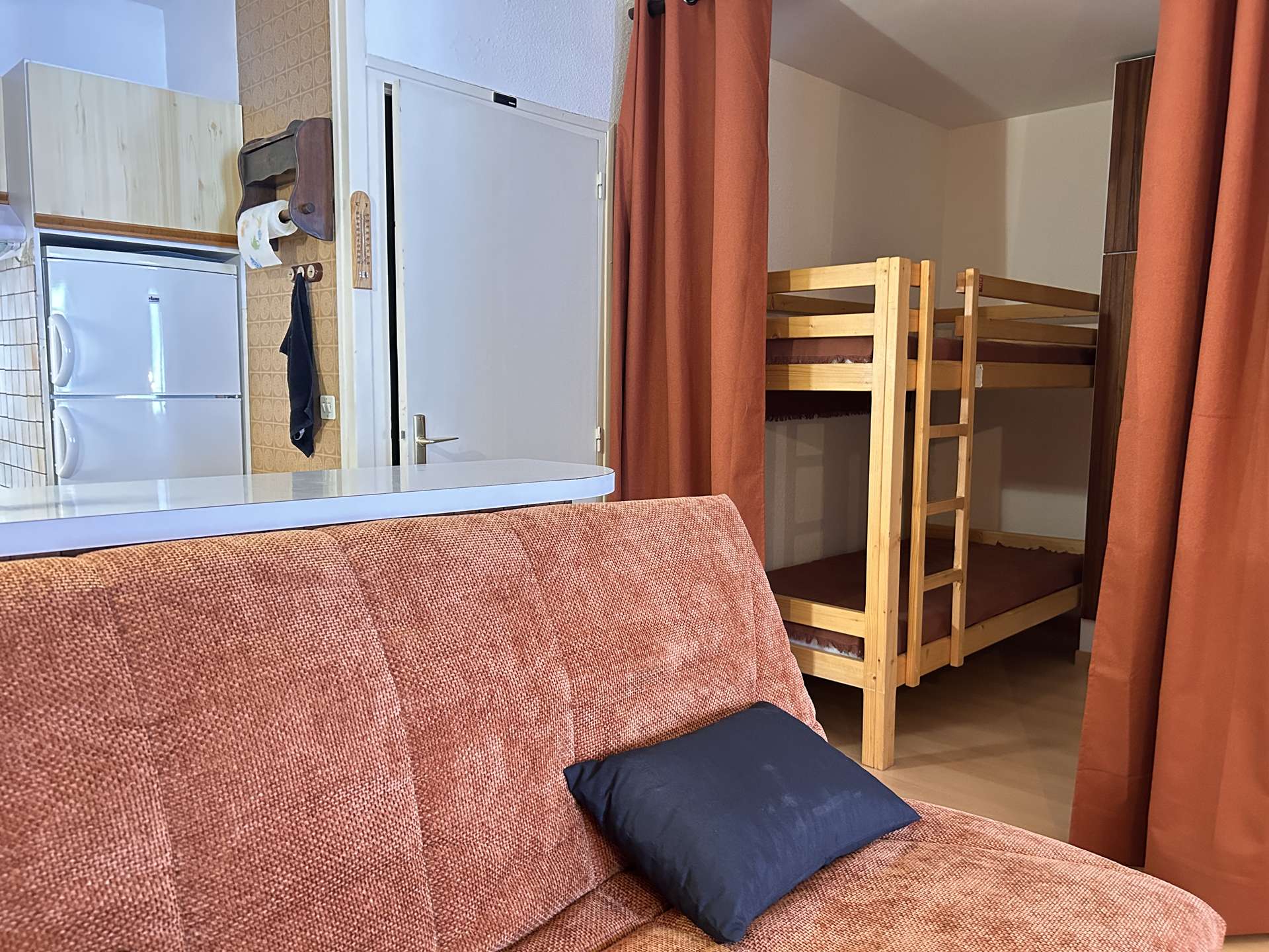 The accommodation faces south with a view of the slopes (no access to the balcony during this winter season 2025-2026).
