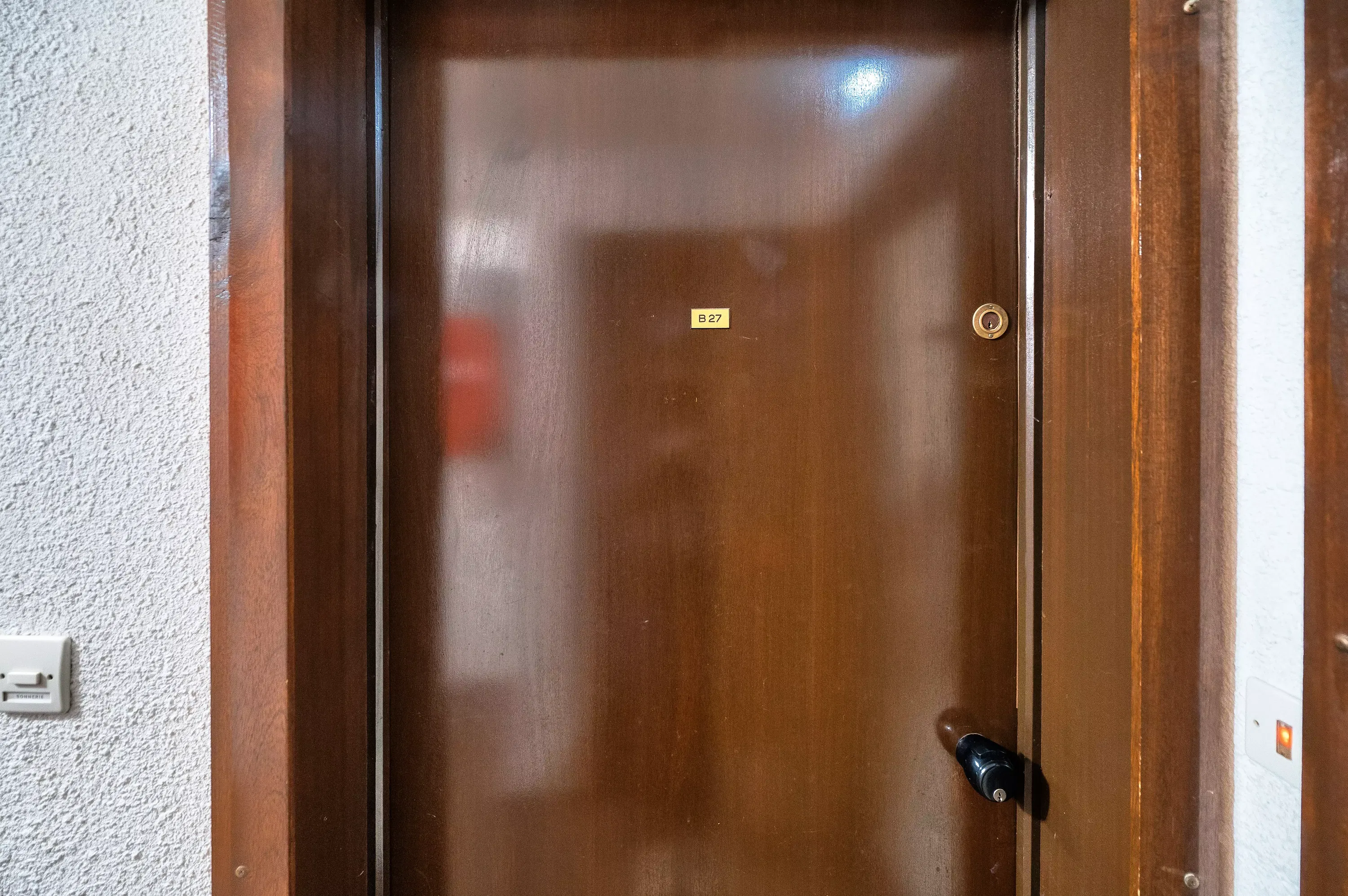 Cabin area with door: Bunk beds