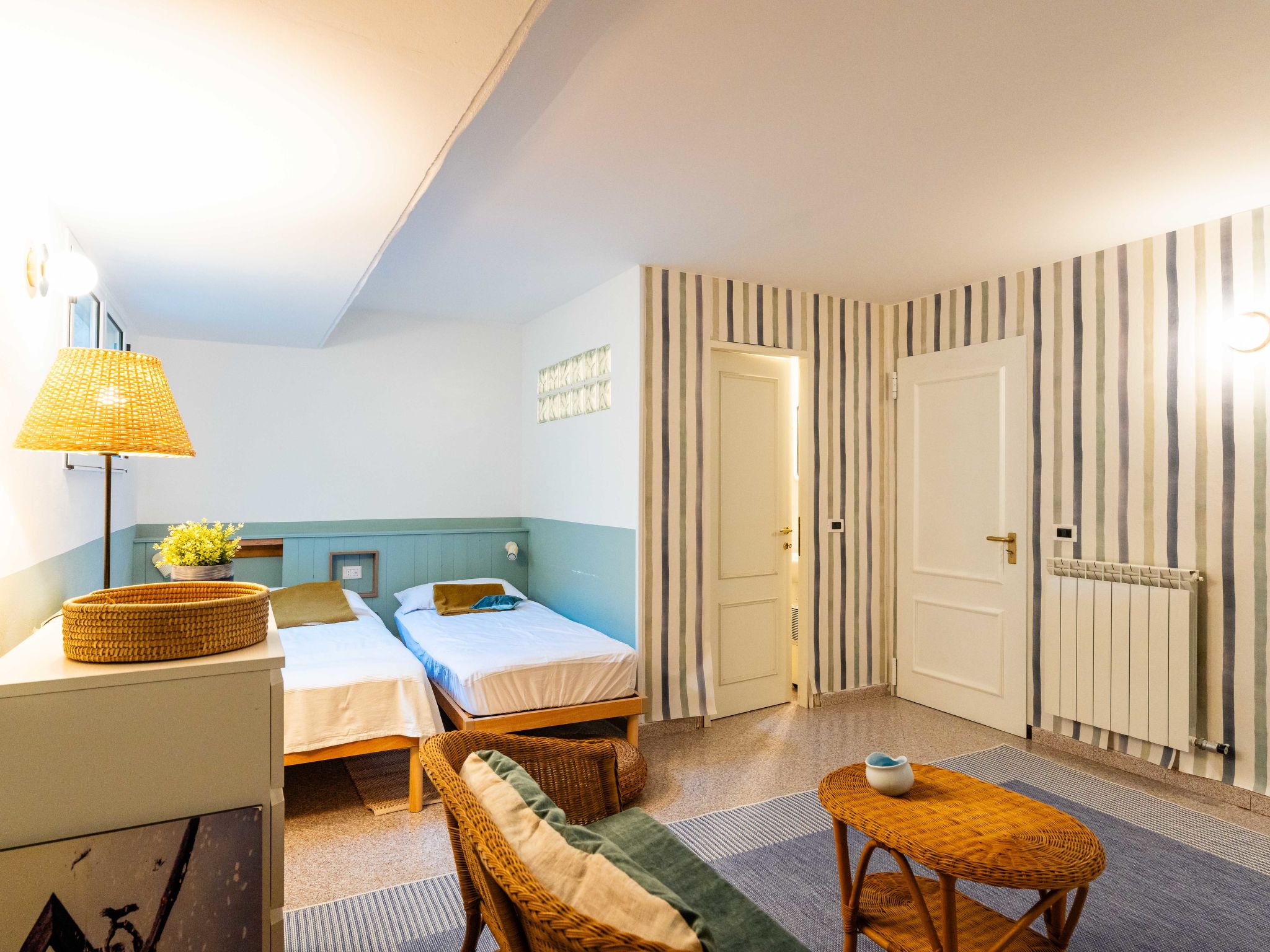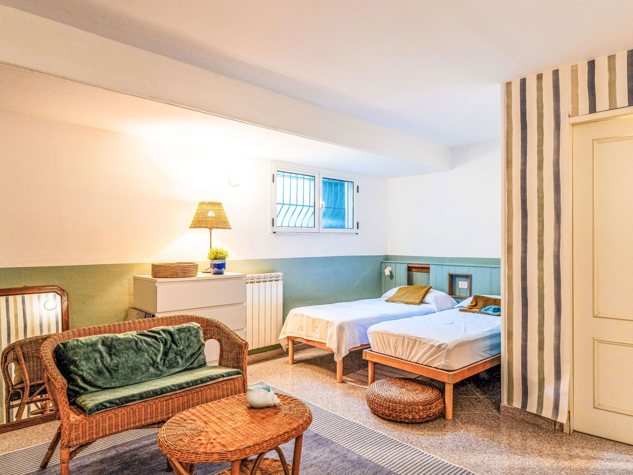 Very apartment block, 3 storeys. In the centre of Riva Ligure 3 km from the centre of Arma di Taggia, 10 km from the centre of Sanremo, 26 km from the centre of Ventimiglia, 150 m from the sea. Parking at the house, single garage at the house, public parking 100 m on the road. Grocery 400 m, supermarket 550 m, restaurant, bar 200 m, bakery 300 m, bicycle rental 250 m, bus stop 300 m, railway station "Taggia" 4 km, sandy beach 150 m pebble beach 100 m. Marina 200 m, cycle lane 50 m. Please note: Loading and unloading of baggage is possible at the holiday house.
