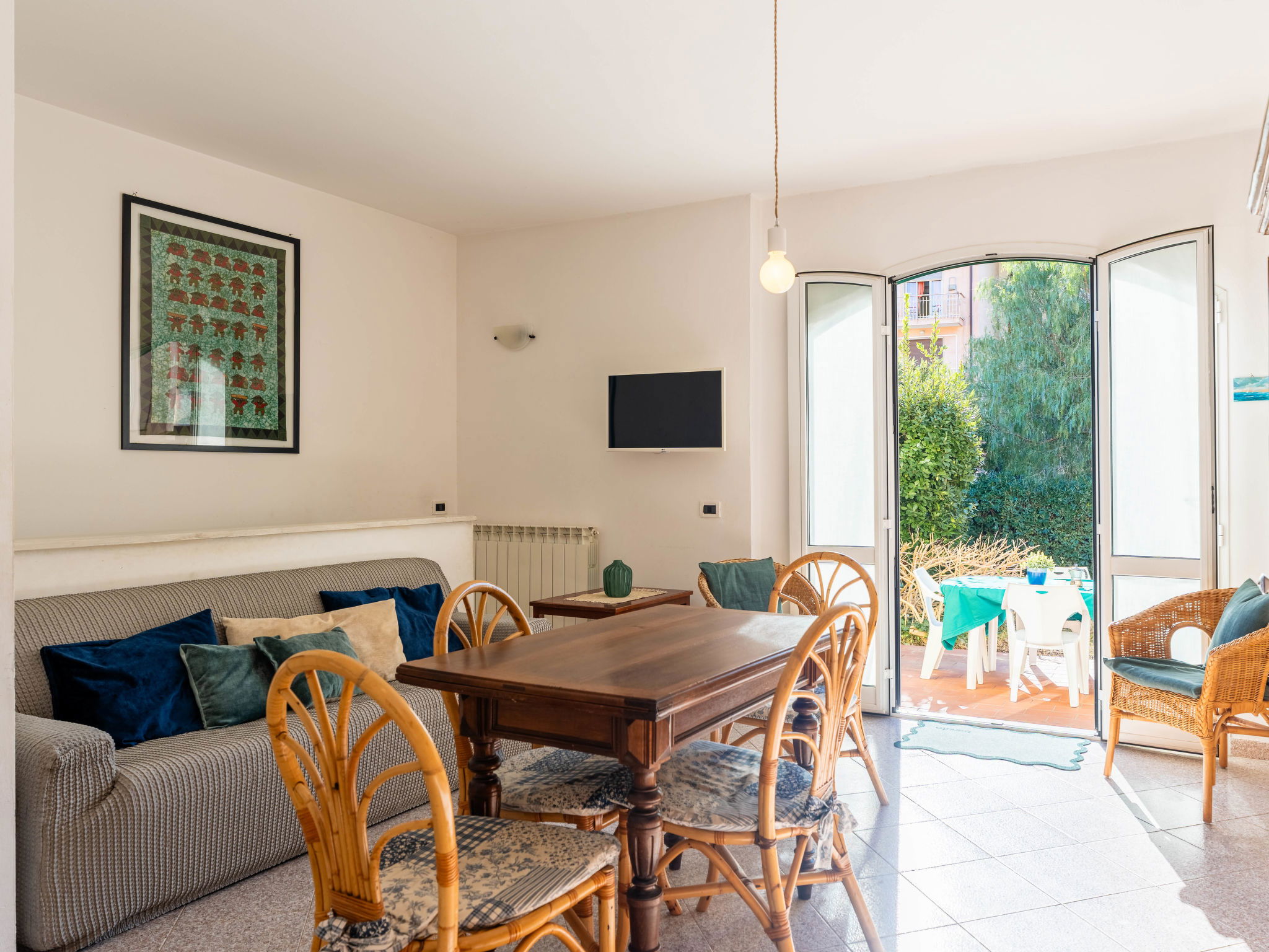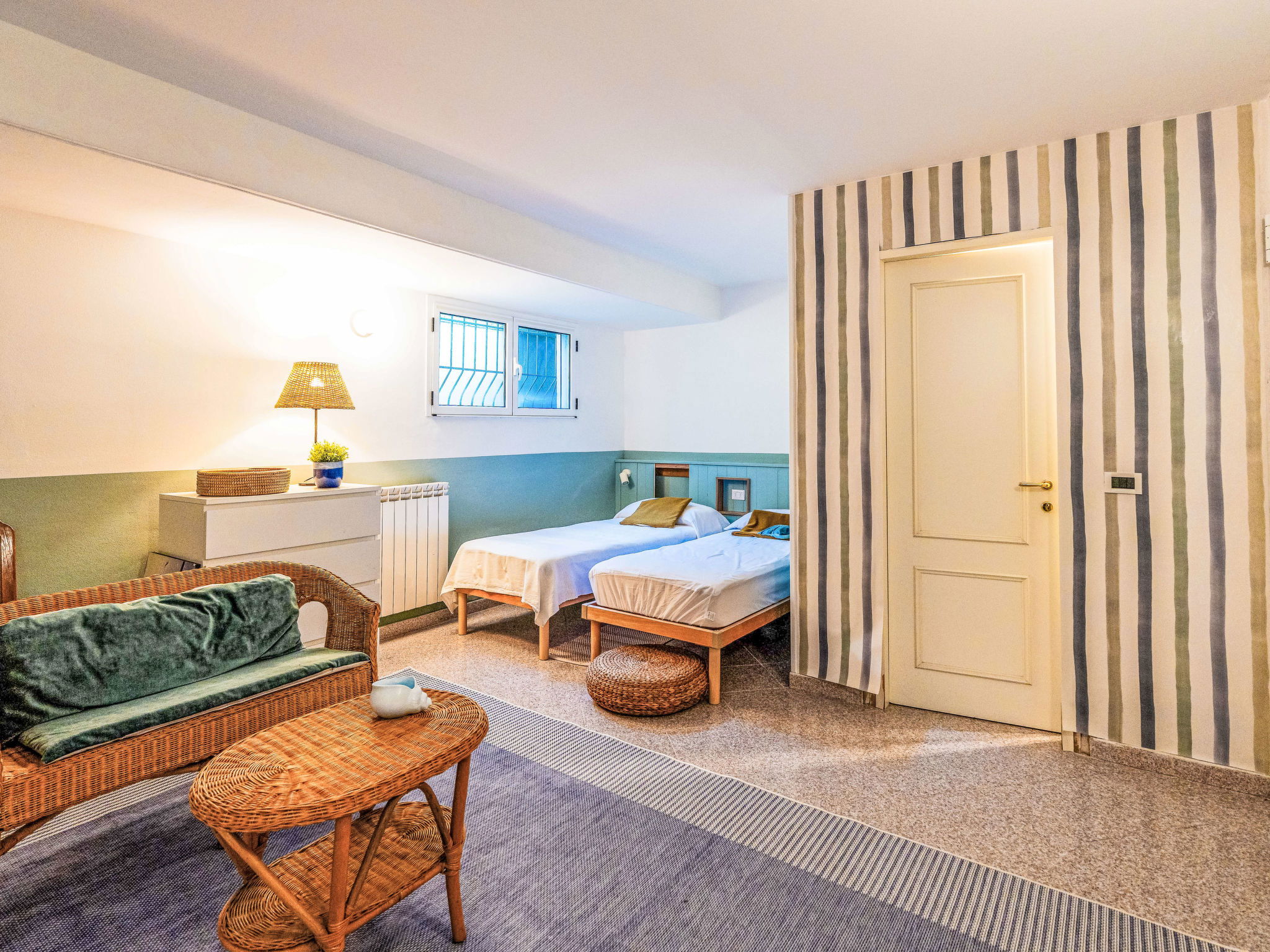 "Da Carla e Gigi", 3-room apartment 100 m2 on 2 levels, on the ground floor. Beautiful and cosy furnishings: living/dining room. Exit to the garden. 1 double bedroom. Exit to the garden. 1 room with 2 beds (80 cm, length 200 cm). Kitchenette (oven, 4 gas rings, toaster, microwave, electric coffee machine). Exit to the garden. Shower/bidet/WC. Gas heating. Heating available only from 01.11. to 15.04. On the lower ground floor: 1 double bedroom with 1 bed, 1 double bed and shower/bidet/WC. Garden. Terrace furniture. Beautiful view of the resort. Facilities: washing machine, children's high chair, baby cot for up to 2 year olds, hair dryer. Internet (WiFi, free). Parking, garage at the house. Please note: 1 pet/ dog allowed. Private entrance, smoke alarm, fire extinguisher. IT008050C2DBOZVAppartementG