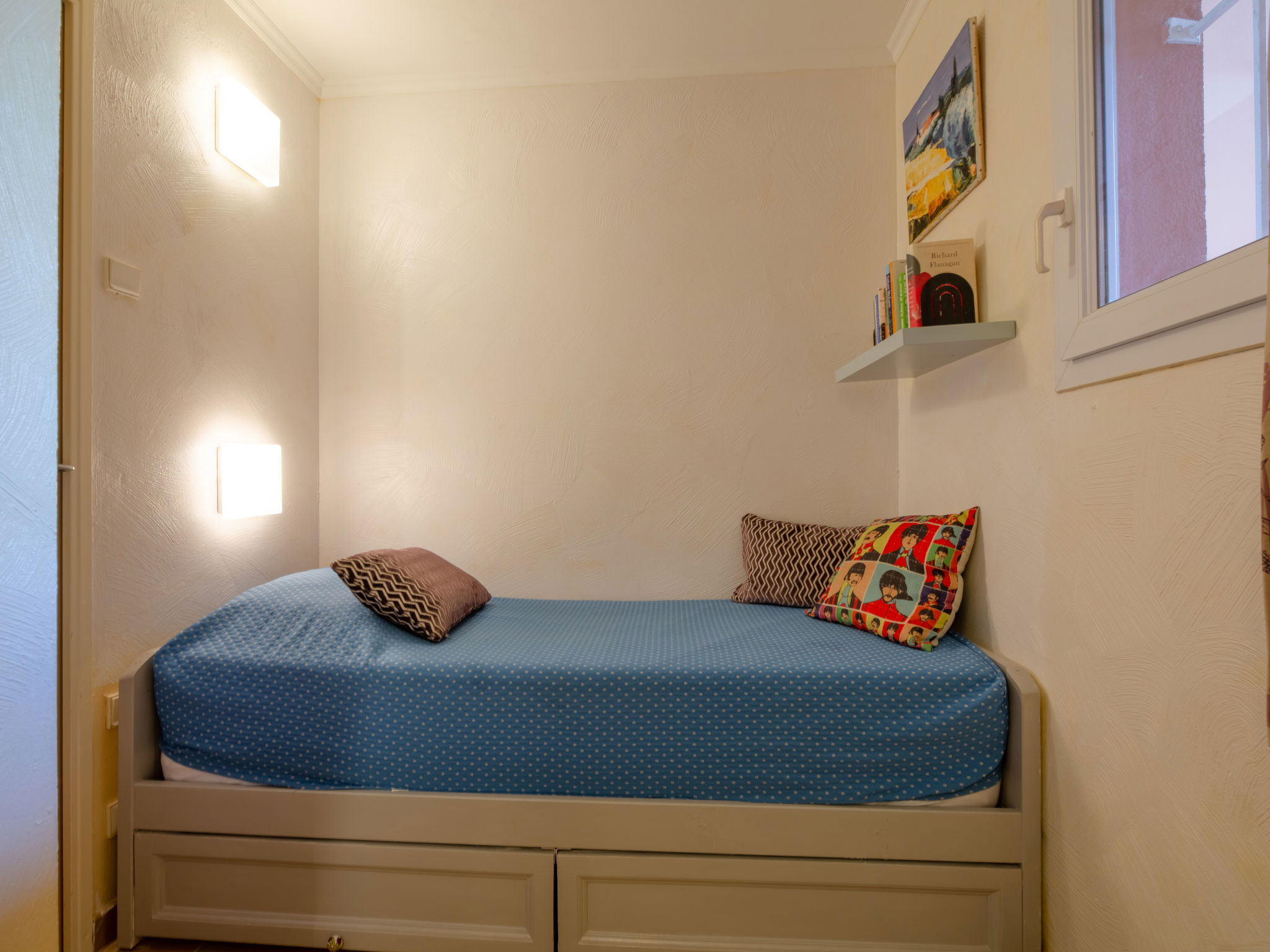 3-room apartment 45 m2 on 2nd floor. Simple and practical furnishings: living/dining room with 1 double sofabed (1 x 140 cm, length 190 cm), TV. Exit to the terrace. 1 room with 1 french bed (140 cm, length 190 cm). Sleeping alcove with 1 bed (80 cm, length 190 cm). Kitchenette (4 hot plates, dishwasher, toaster, kettle, microwave, electric coffee machine). Bathroom, shower/WC. Electric heating. Terrace 10 m2, roofed, south facing position. Balcony furniture. Very beautiful view of the sea. Facilities: Internet (WiFi, extra). Parking space n 344. Please note: non-smokers only. 1 small pet/ dog allowed. Smoke alarm. 83107000180H0