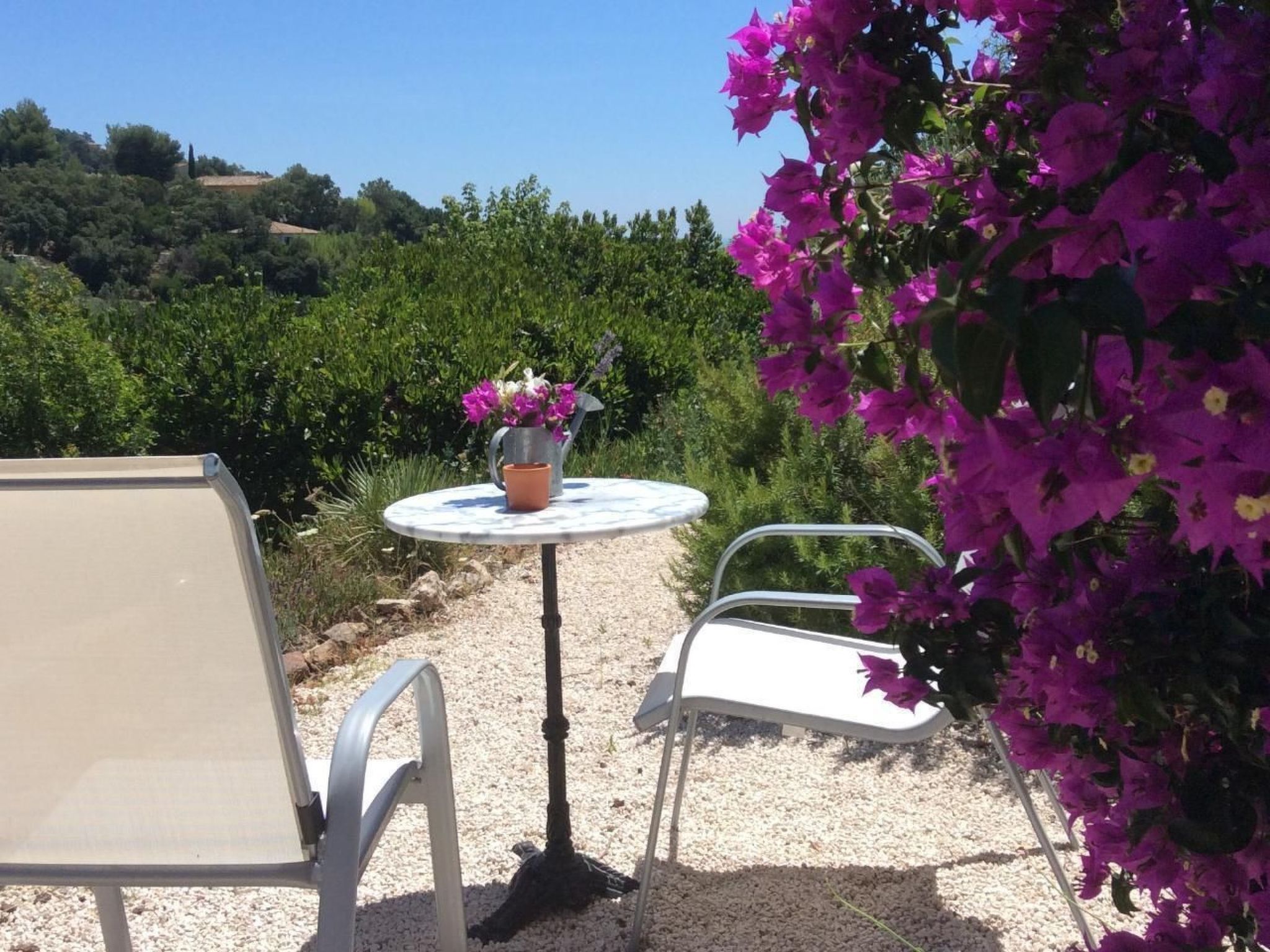 The outdoor area boasts an inviting garden with a variety of garden furniture, ideal for relaxing under the southern French sun. A special highlight is the access to the flat, which leads via a picturesque garden staircase through the upper part of the garden. For the comfort and safety of guests, there are two private car parks directly below the house. Guests also have access to numerous leisure facilities within the Domaine, including two spacious swimming pool areas with breathtaking sea views, four tennis courts, table tennis, boccia, a beach volleyball/basketball court and a playground for children.
