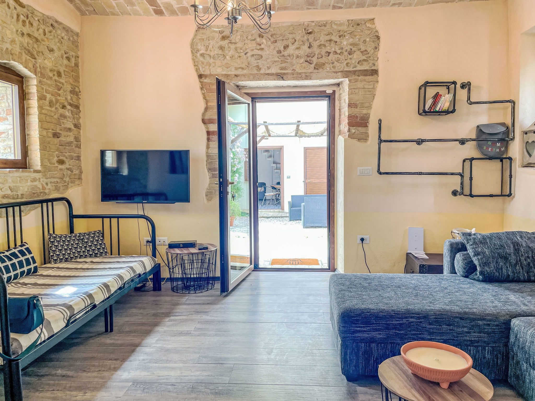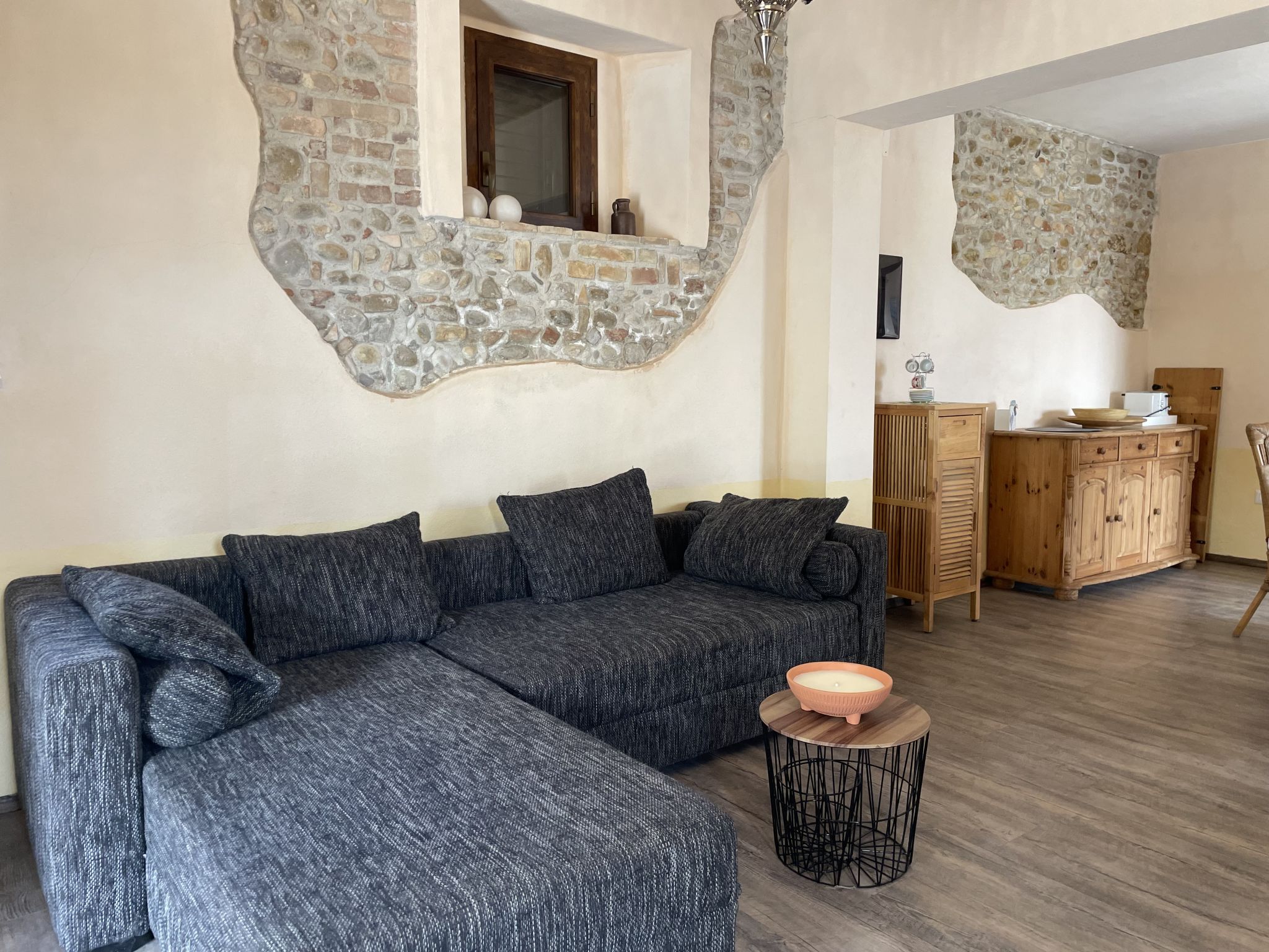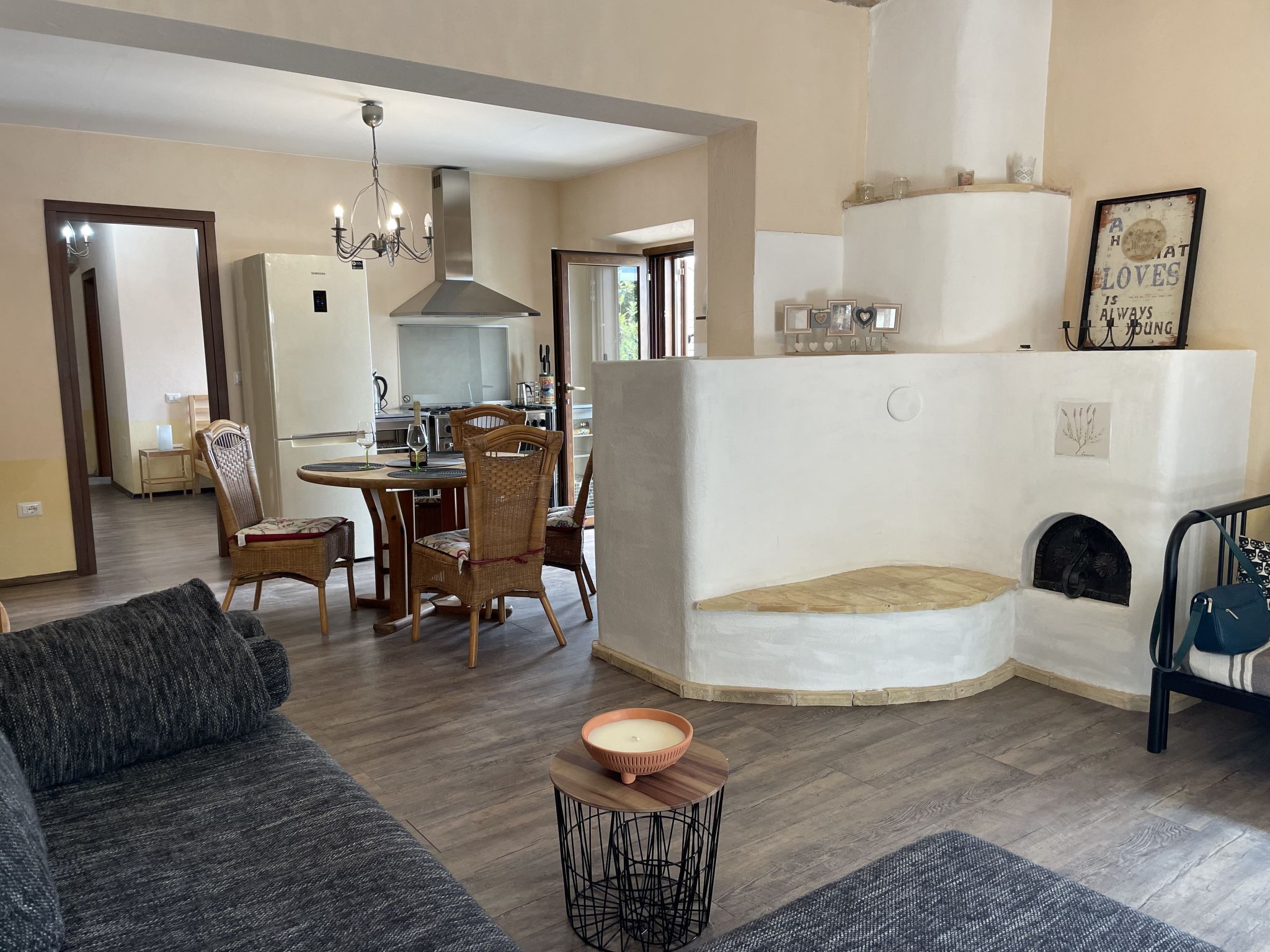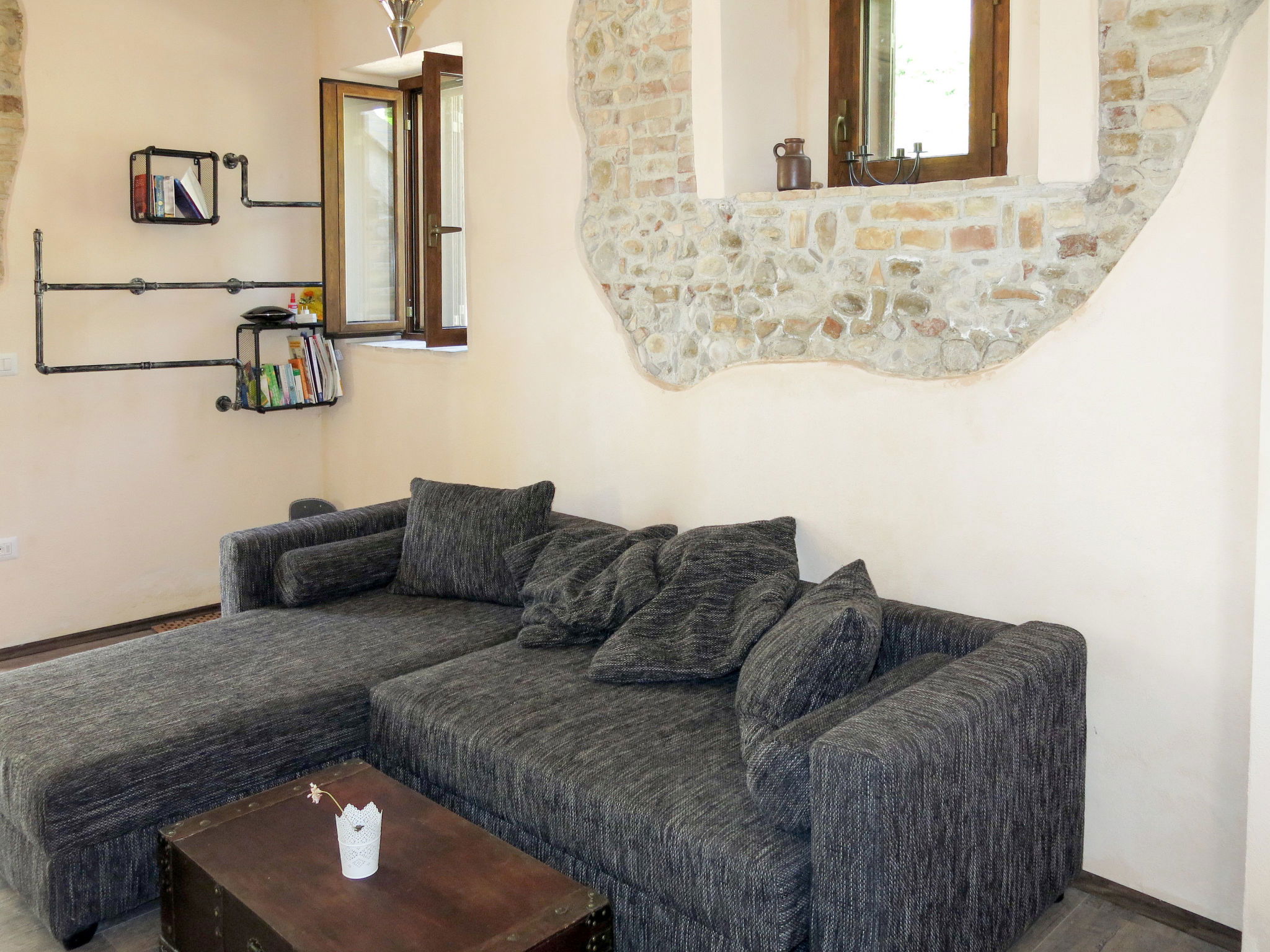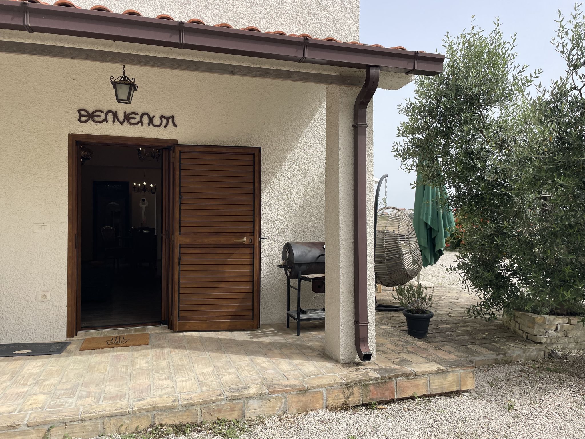 Very beautiful, rustic, comfortable country house "Serrani", renovated in 2018, surrounded by meadows and fields. 2 houses in the residence. 4 apartments in the residence. 8 km from the centre of Roseto degli Abruzzi, 13 km from the centre of Giulianova, 17 km from the centre of Pineto, in a secluded, sunny position on a slope, 6 km from the sea, in the countryside. For shared use: natural state property 5 ha, beautiful terraced garden, 5'000 m2 (not fenced) with plants and trees, orchard, lawn for sunbathing, swimming pool (above ground) (10 x 5 m, depth 130 cm, seasonal availability: 01.Jun. - 28.Sep.). Patio, arbour, pergola, garden furniture, barbecue. In the complex: hot tub (extra). Washing machine (for shared use). 100 m long bumpy motor access to the house. Stepped path to the house. Parking on the premises. Shop 1 km, supermarket 8 km, bus stop 500 m, railway station "Roseto degli Abruzzi" 8 km, sandy beach 6 km. Local sale of farm products. Please note: Additional accommodations can be booked.