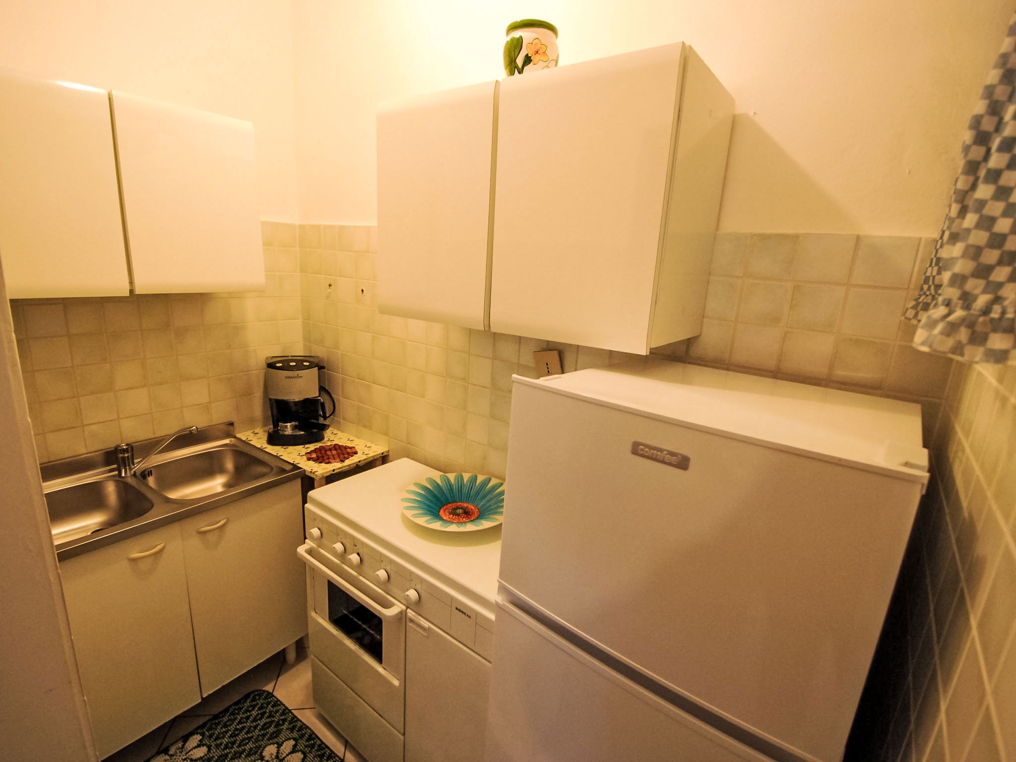3-room apartment 40 m2. Bright, simple and practical furnishings: living/dining room with 1 double sofabed, dining table and TV. 1 room with 2 beds. 1 room with 1 double bed. Kitchenette (4 hot plates, oven, freezer). Shower/bidet/WC. Air-conditioning. No heating option. Facilities: children's high chair, baby cot (extra). Internet (WiFi, free). Please note: non-smokers only. Maximum 1 pet/ dog allowed. IT029040B4R0N5KZBJ