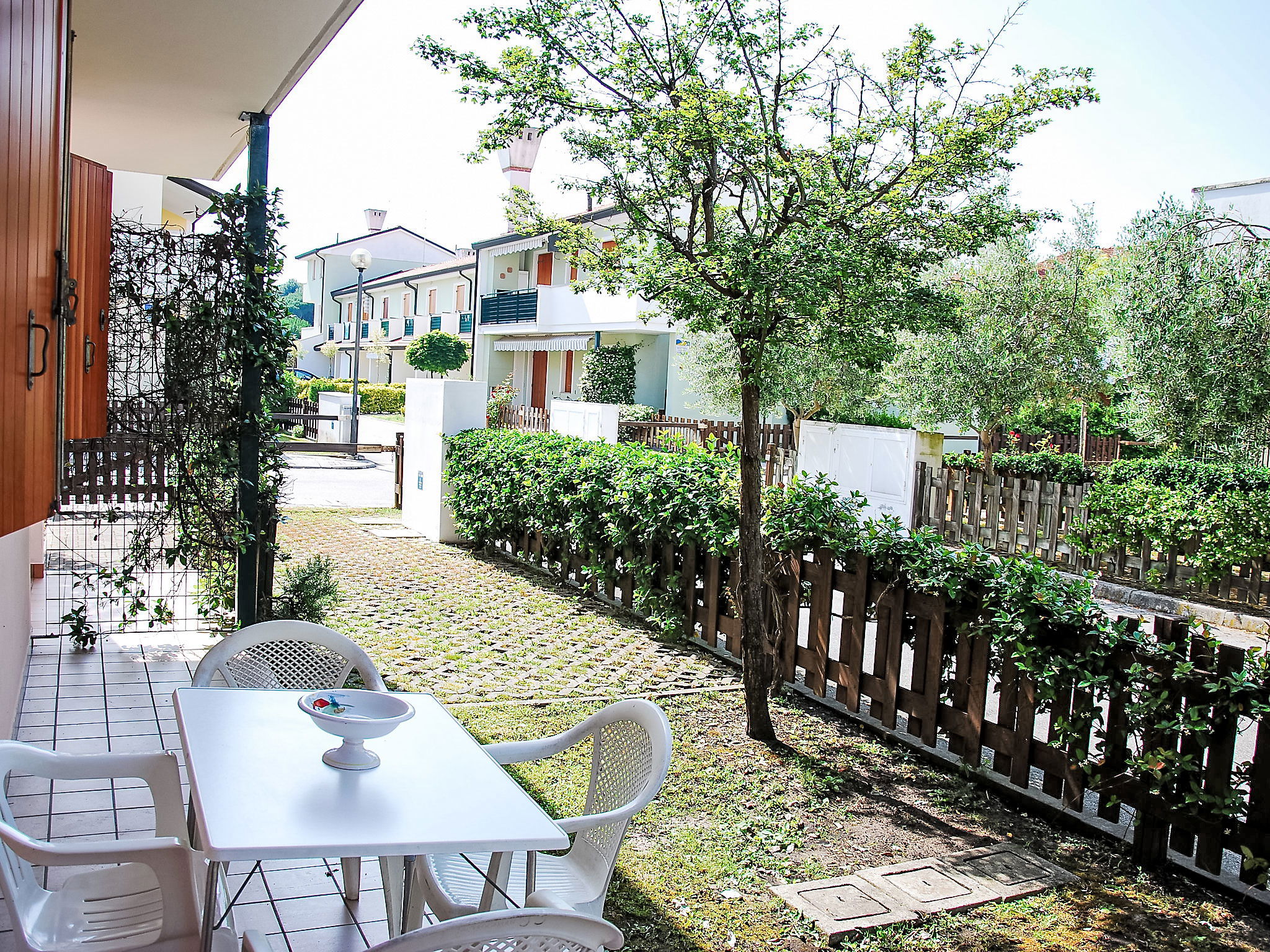 Residence "Mediterraneo". 200 m from the centre of Rosolina, 600 m from the sea, 550 m from the beach. For shared use: swimming pool (800 m2, depth 50 - 190 cm, seasonal availability: 01.Jun. - 11.Sep. pool opening hours: 09:30-19:00) with internal staircase. Children's pool, outdoor shower, terrace, garden furniture. In the complex: restaurant, bar. Parking at the house. Bus stop "Rosolina" 10 km, sandy beach 550 m. Please note: car recommended, no lift. The photograph shows a typical example. Additional accommodations can be booked.