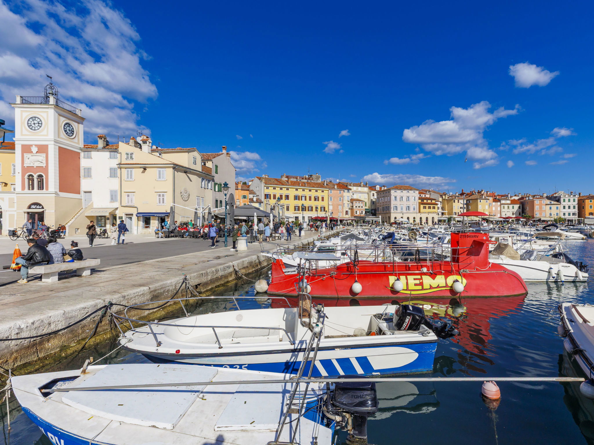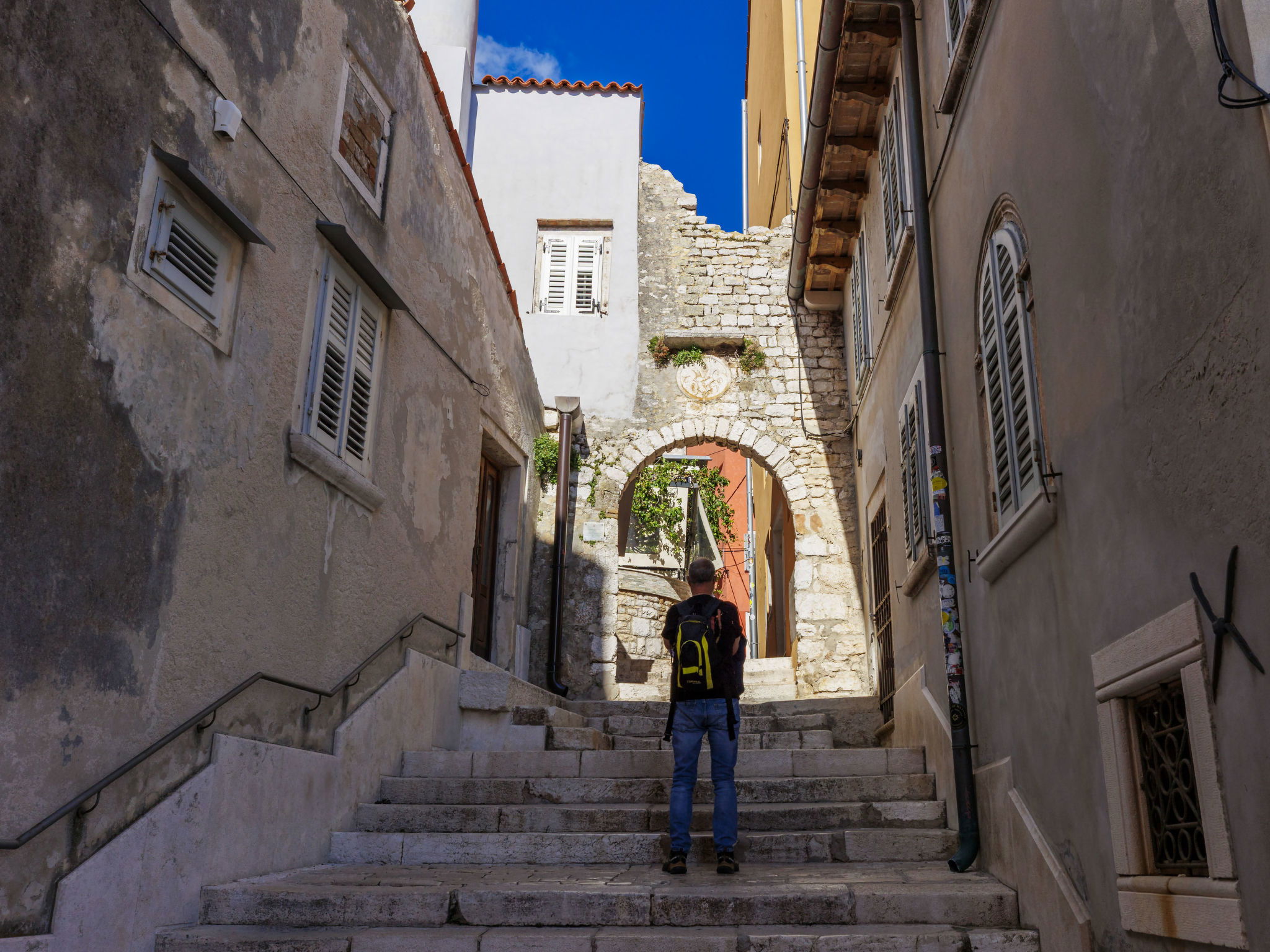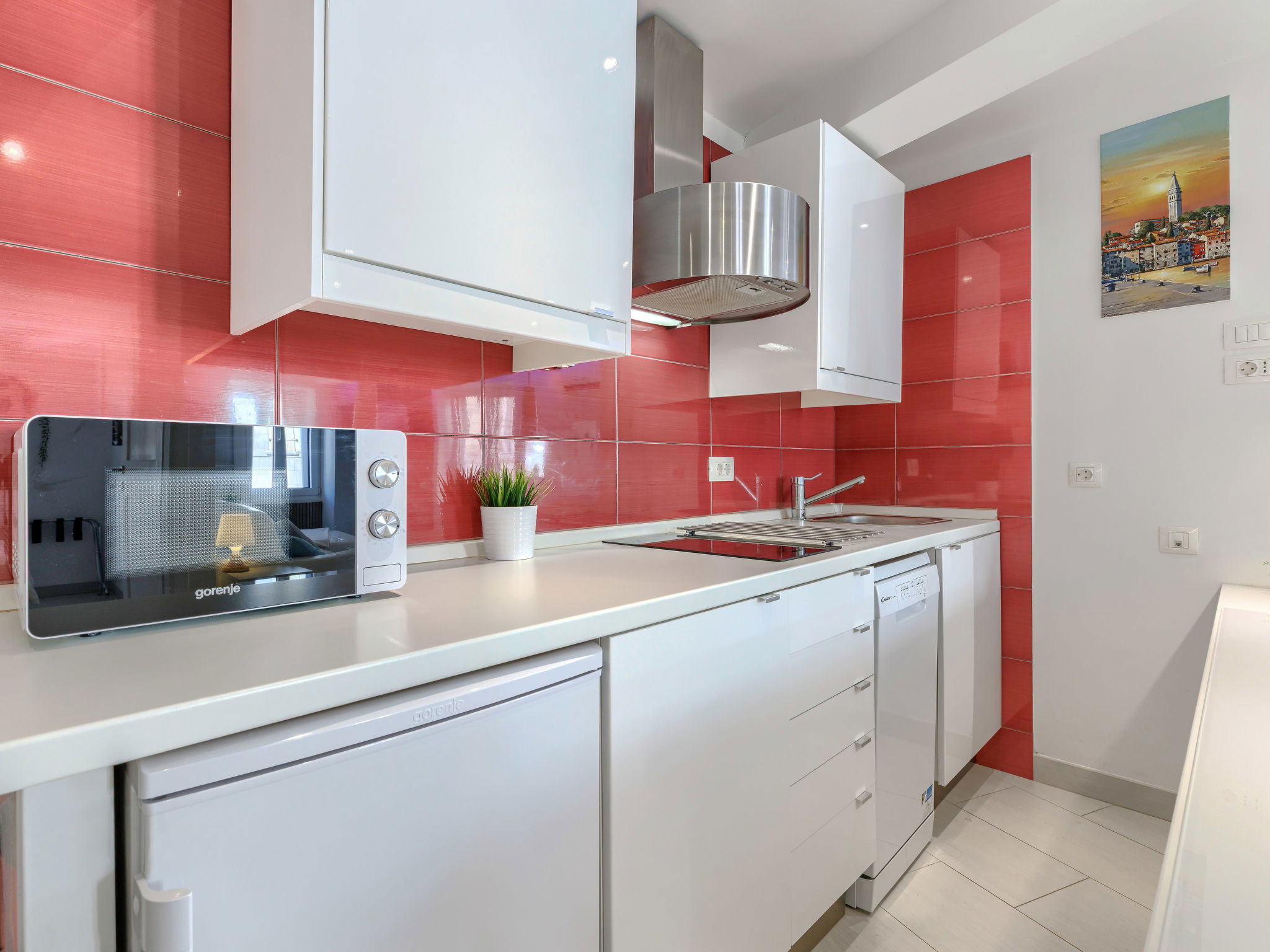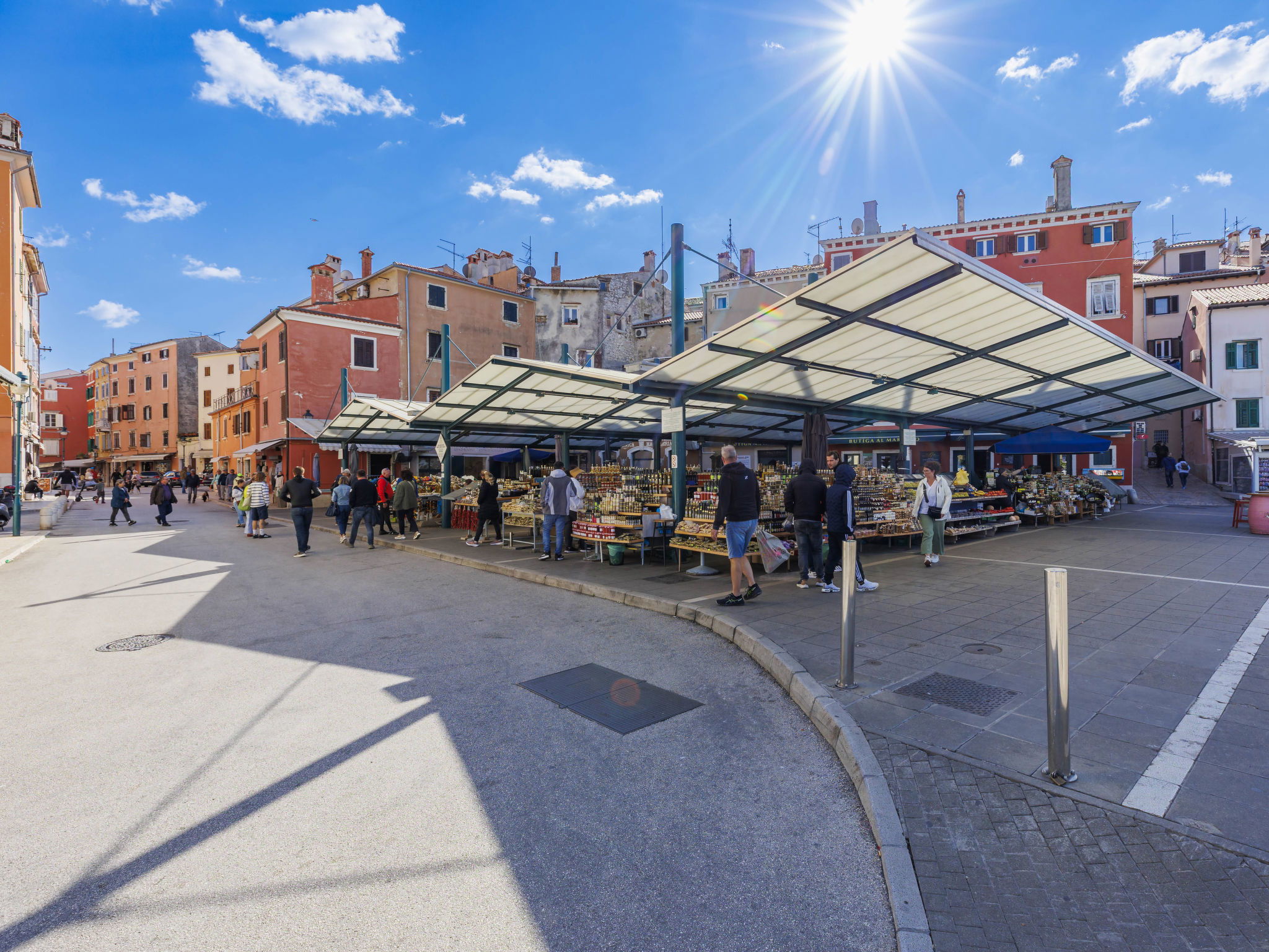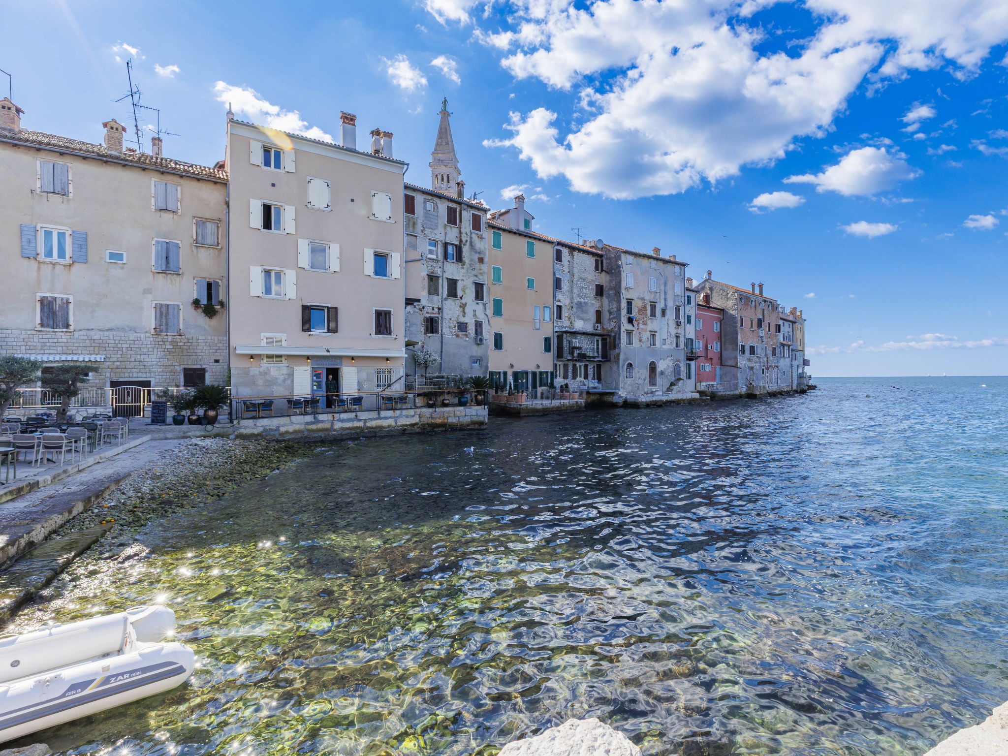 Apartment block. In the centre of Rovinj, in the heart of the city, 100 m from the sea, 100 m from the beach, in a pedestrian area. In the house: internet access, bicycles available. Available: bicycles (2). Public parking 600 m extra. Shop, restaurant 100 m, café 10 m, bus stop 650 m, rocky beach 100 m, public bathing area 250 m. Please note: airfield 40 km from the property.
