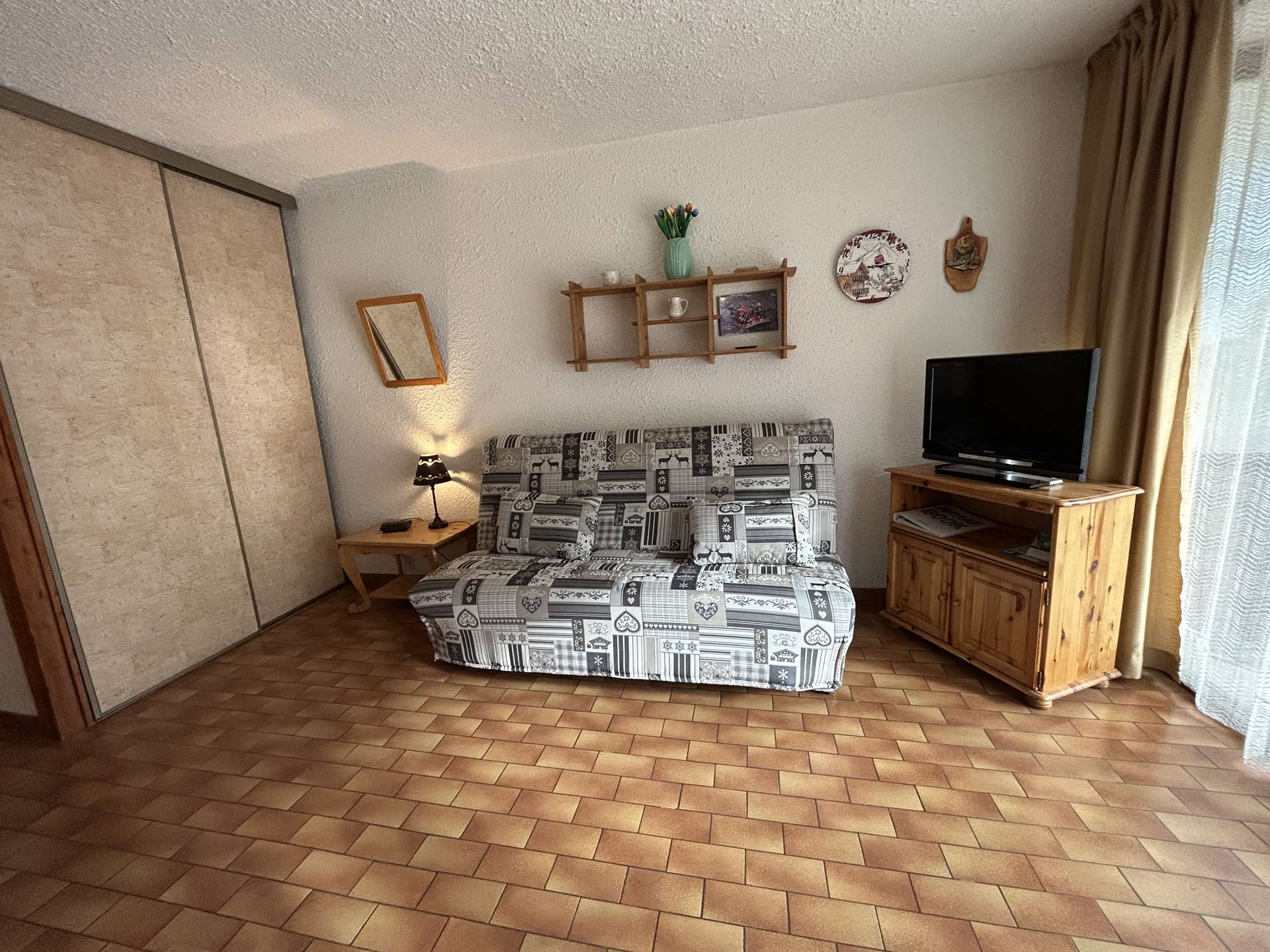 This studio has a mountain corner with two-seater sofa bed