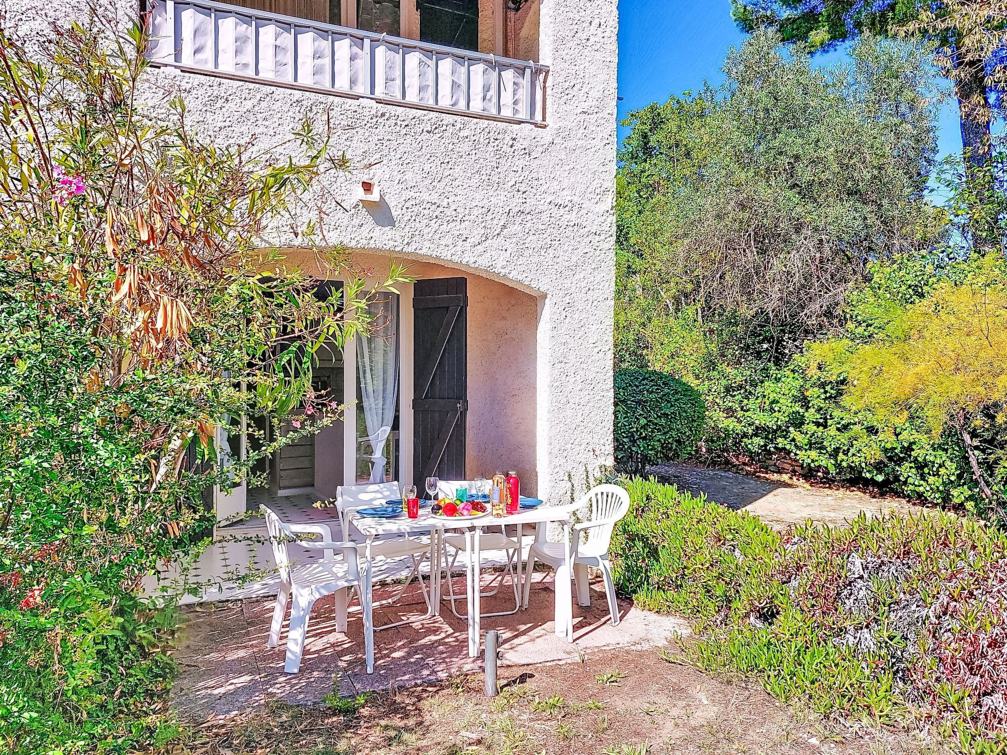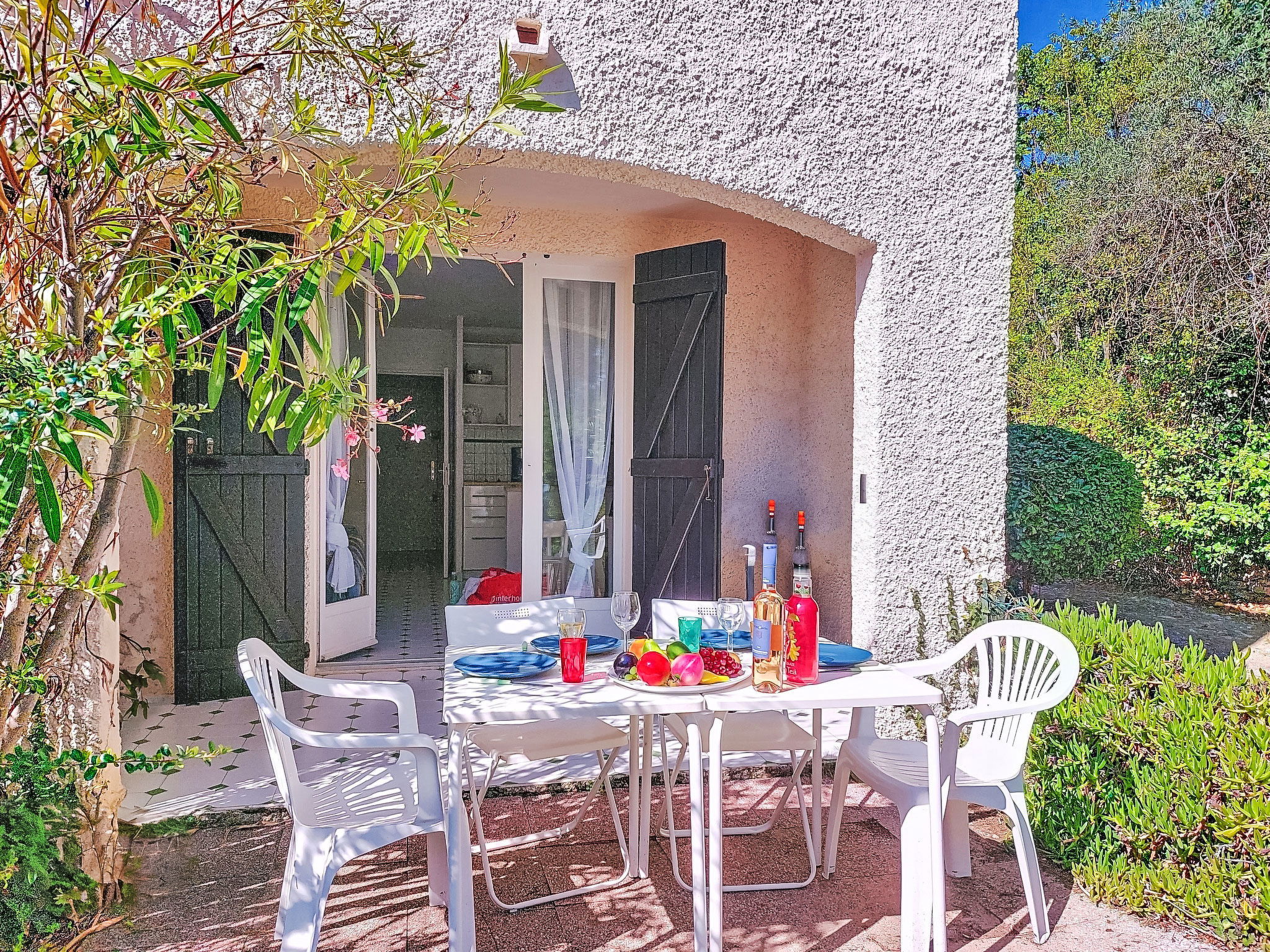 1-room apartment 23 m2, on the upper ground floor. Comfortable and beautiful furnishings: entrance hall, without window with 1 x 2 bunk beds (80 cm, length 190 cm). Living/dining room with 1 sofabed (140 cm, length 190 cm), TV. Exit to the terrace. Kitchenette (mini-oven, 2 ceramic glass hob hotplates, toaster, kettle, microwave, electric coffee machine). Shower/WC. Electric heating. Terrace 7 m2, roofed, south facing position, patio 15 m2, south facing position. Terrace furniture, electric barbecue. Facilities: Internet (WiFi, extra). Parking space n 374. Please note: maximum 1 pet/ dog allowed. TV only FR. Smoke alarm. 831120000824M