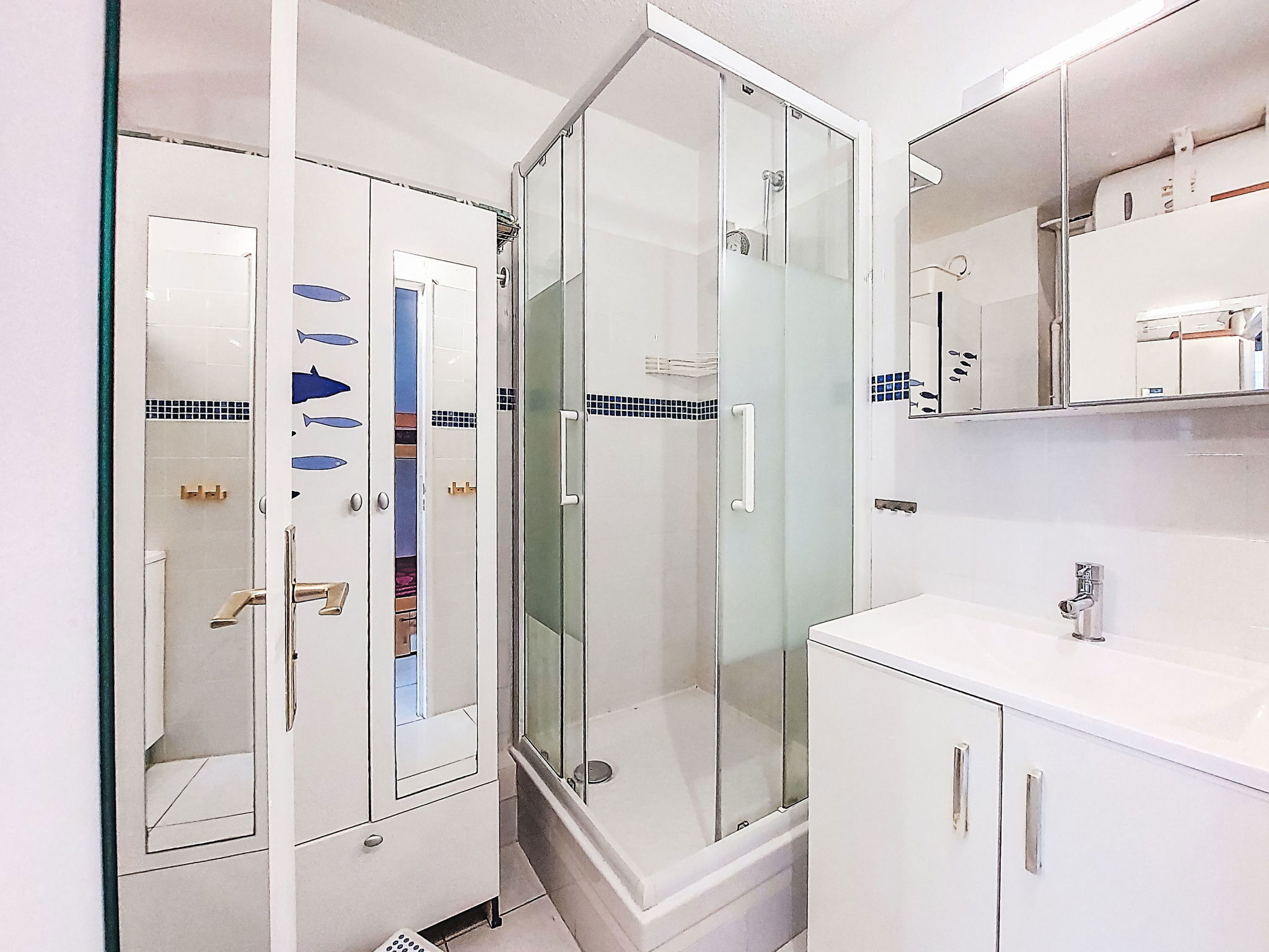 1-room apartment 23 m2 on 1st floor, south facing position. Bright, practical furnishings: entrance hall, without window with 1 x 2 bunk beds (80 cm, length 190 cm). Living/dining room with 1 double sofabed (140 cm, length 200 cm), TV and DVD. Exit to the terrace. Kitchenette (2 hot plates, mini-oven, toaster, kettle, microwave, electric coffee machine). Shower/WC. Electric heating. Terrace 6 m2, roofed, south facing position. Terrace furniture. Facilities: washing machine, iron. Internet (WiFi, extra). Parking space n 633. Please note: suitable for families. Maximum 1 small pet/ dog allowed. TV only FR. Smoke alarm. 83112000120D3