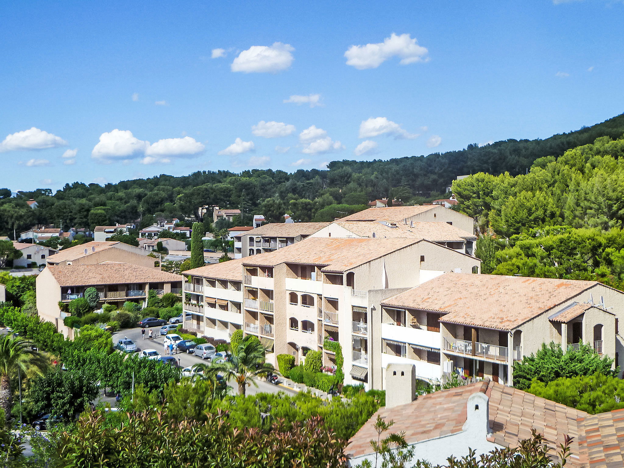 Residence "Les Aigues Marines", 3 storeys. In the resort 2 km from the centre of Saint Cyr sur Mer, in an elevated position in the residential district, 600 m from the sea, 600 m from the beach, located by a road, in the countryside. Parking (limited number of spaces), public parking extra. Grocery 200 m, restaurant 500 m, bus stop "Le Viguier" 2.3 km, railway station "Saint Cyr les Lecques-La Cadière" 3.1 km, sandy beach "La Madrague", shingle beach 600 m. Sports harbour 500 m, golf course (18 hole) 4 km. Nearby attractions: Aqualand 3 km, Sentier du Littoral 1 km. Hiking paths: Sainte Baume, Sainte Victoire, Calanques Port-Cros, Porquerolles, Ile verte, Embiez, Figuerolles, Cassis. Please note: the keys‘ handover takes place by the agency in St Cyr La Madrague. The photograph shows a typical example. Additional accommodations can be booked.