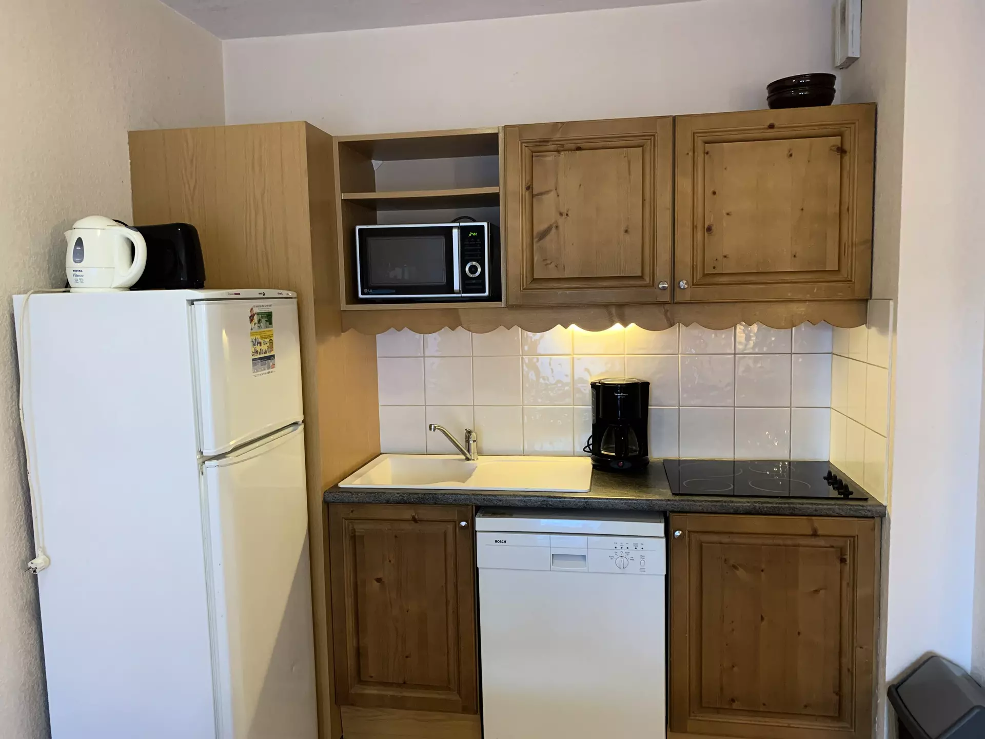 - Kitchen equipped with a dishwasher, ceramic hob, refrigerator, microwave, coffee maker, toaster, kettle.