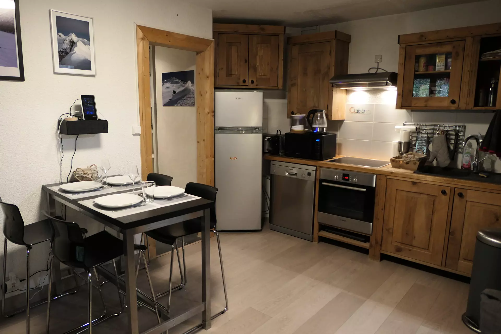 - Kitchen equipped with a refrigerator, Nespresso coffee machine, oven, microwave, kettle, ceramic hob, extractor fan, dishwasher, raclette / pierrade / fondue machine.