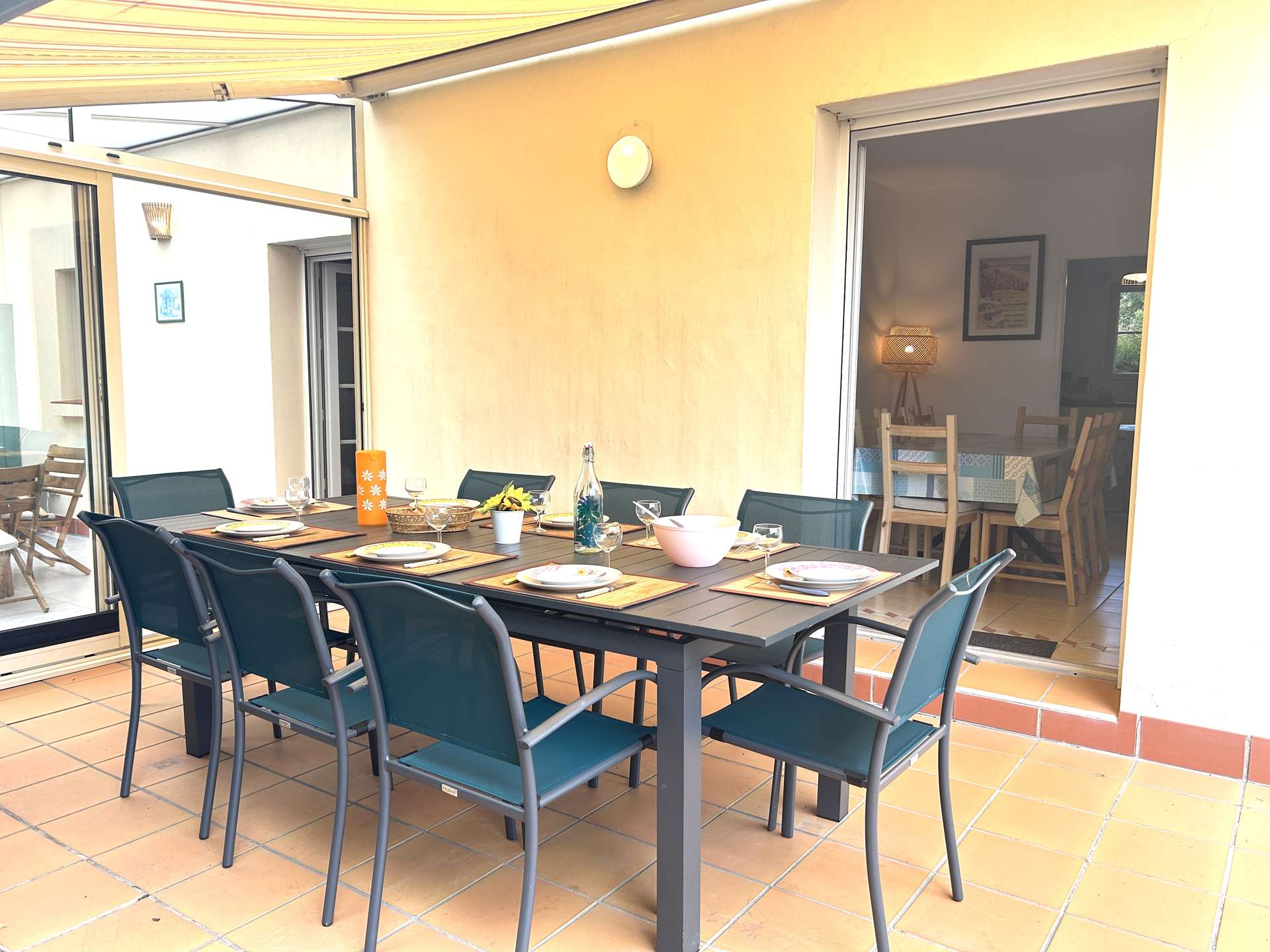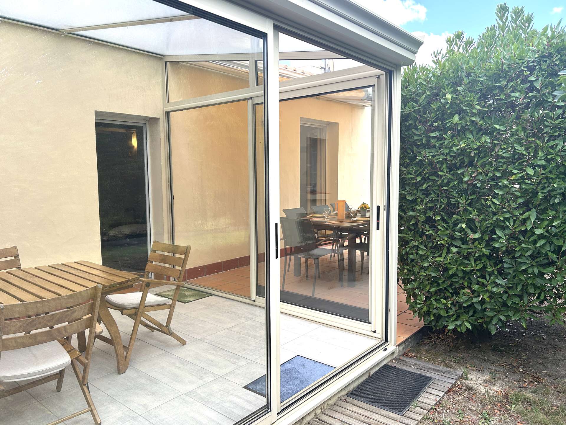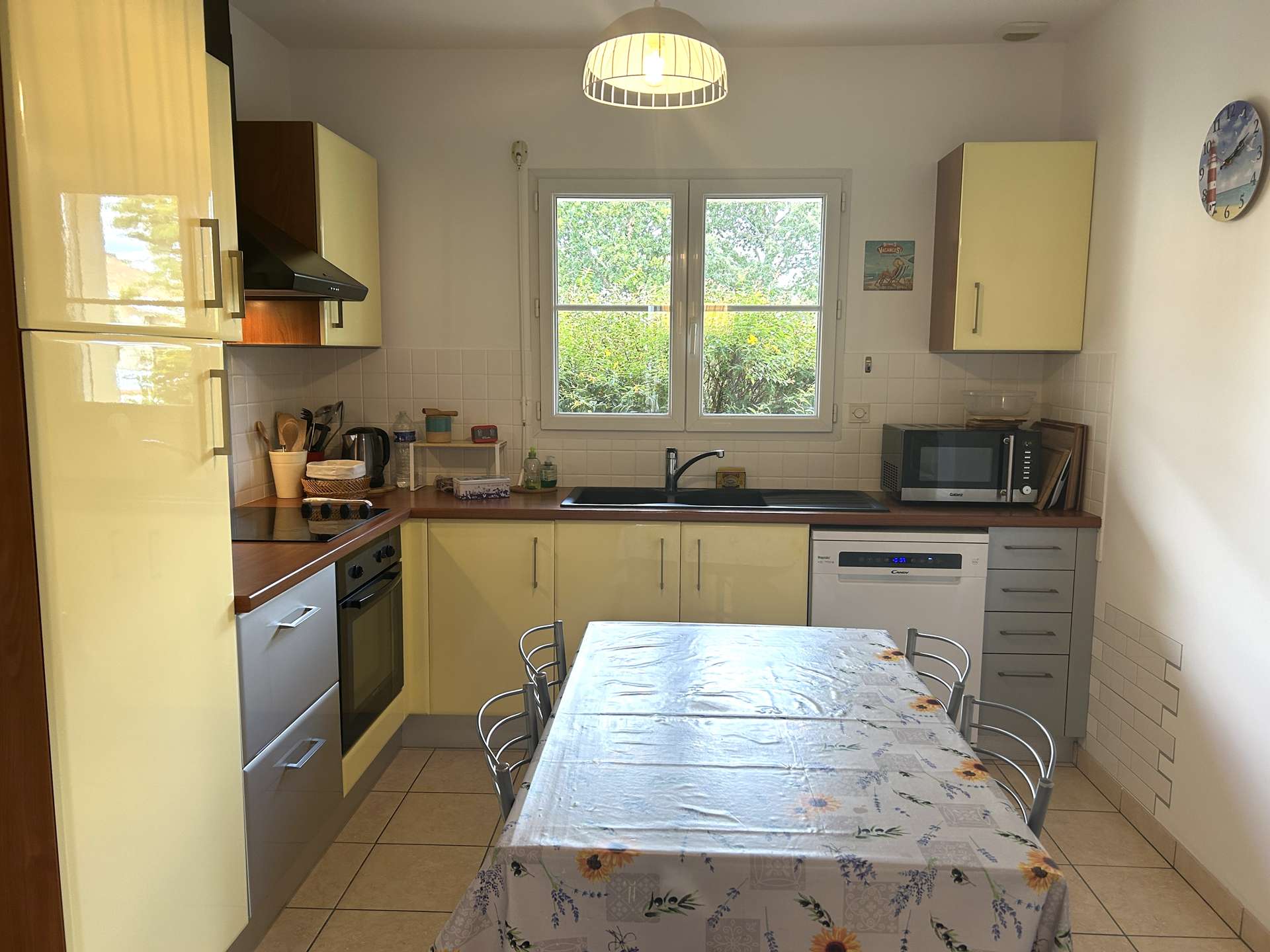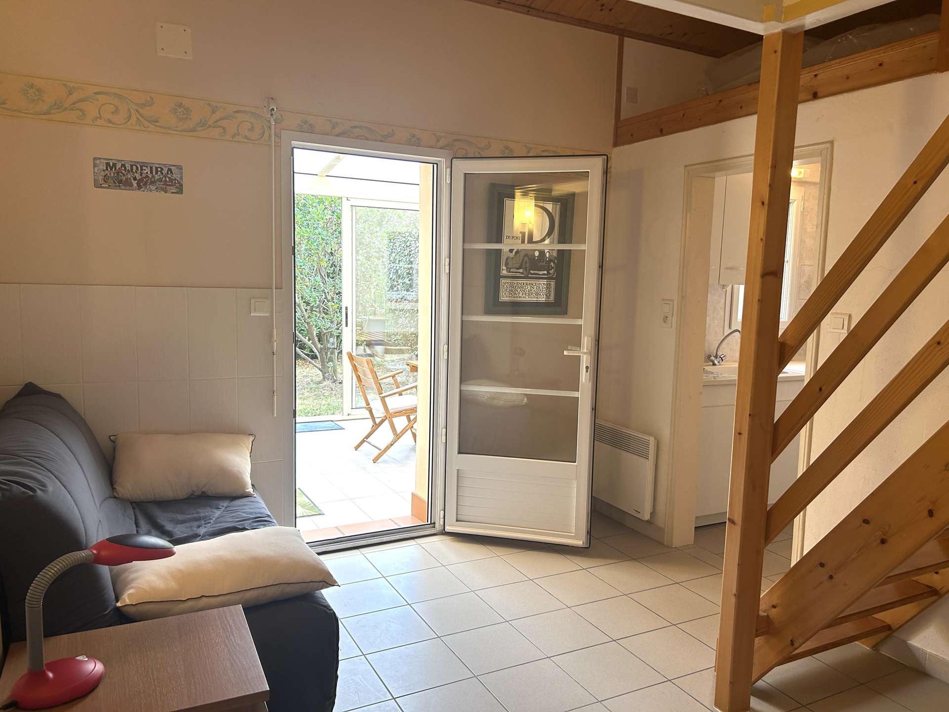 A du 1km du centre ville et des commerces, cette spacieuse et agréable maison de vacances indépendante, sur terrain clos se compose d'une entrée, une cuisine aménagée micro-ondes et lave-vaisselle, un séjour/salon avec télévision, deux chambres totalisant 1 lit double et 2 lits simples (pouvant faire un lit 160), une salle de bains (baignoire et cabine de douche), wc avec lave-mains, un studio indépendant comprenant un salon, une cuisine, une salle d'eau, une mezzanine avec 1 lit double et 2 lits simples, garage, cellier avec lave-linge et congélateulr, terrasse (store banne électrique) avec salon de jardin et barbecue weber.