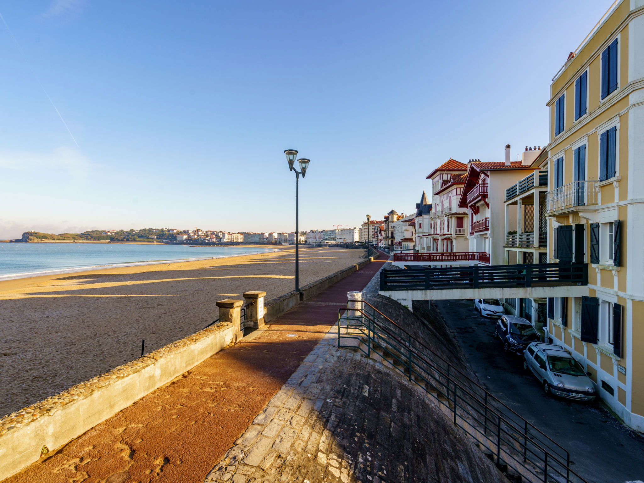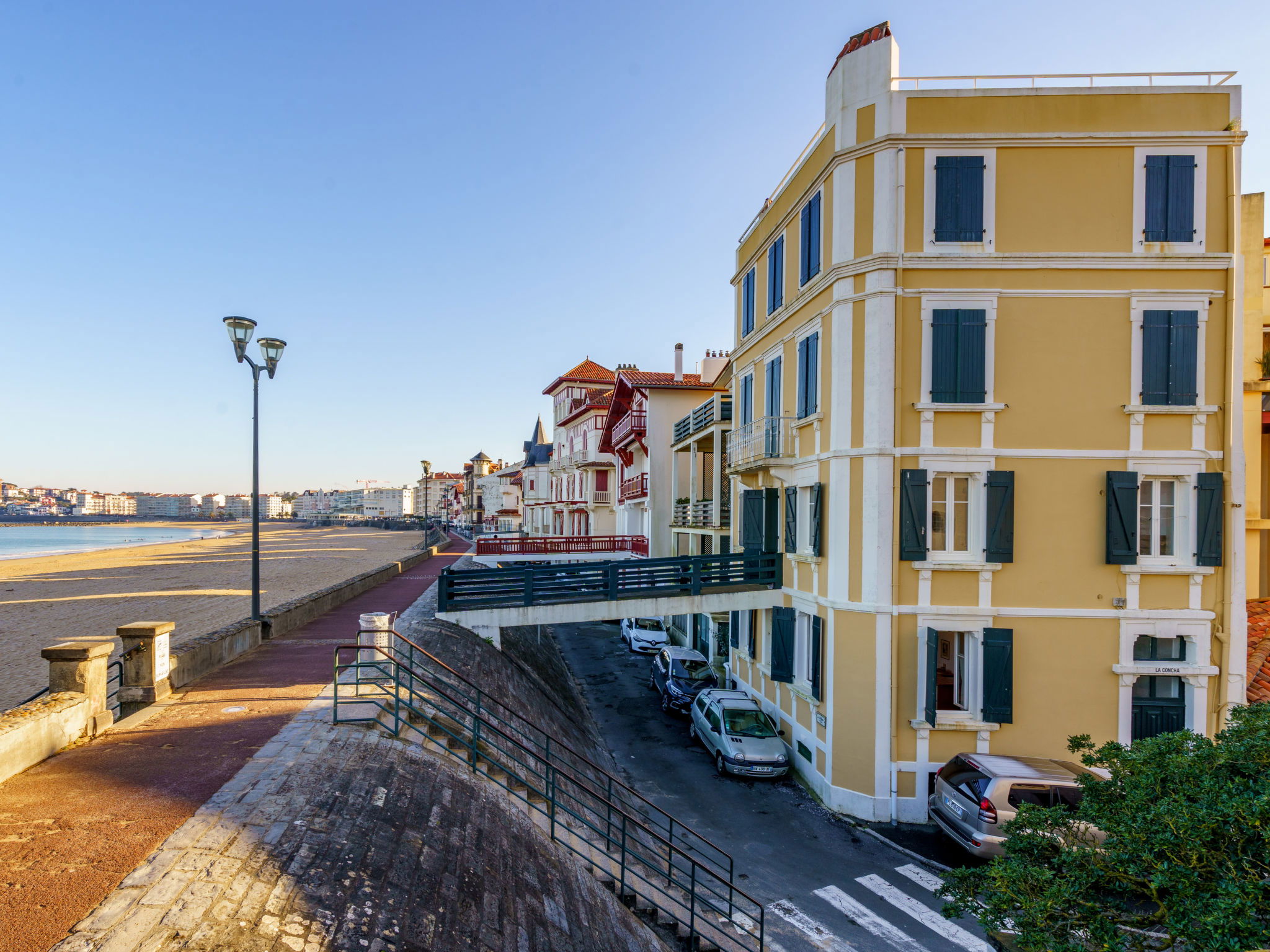 Saint Jean de Luz: 3-family house "Villa La Concha". 4 m from the sea, 3 m from the beach, direct access to the beach. In the house: storage room for bicycles. Shop, bakery 100 m, pedestrian zone 3 m, 5 minute walk to the centre, bus stop 600 m, railway station "Saint jean de Luz" 600 m, sandy beach 3 m, park "Ducontenia" 500 m. Sports harbour 200 m. Nearby attractions: Thalasso Helianthal 500 m, Les Halles de Saint Jean de Luz 500 m. Well-known lakes can easily be reached: Lac de Saint Pée sur Nivelle 18 km. Hiking paths: La Rhune 20 km.