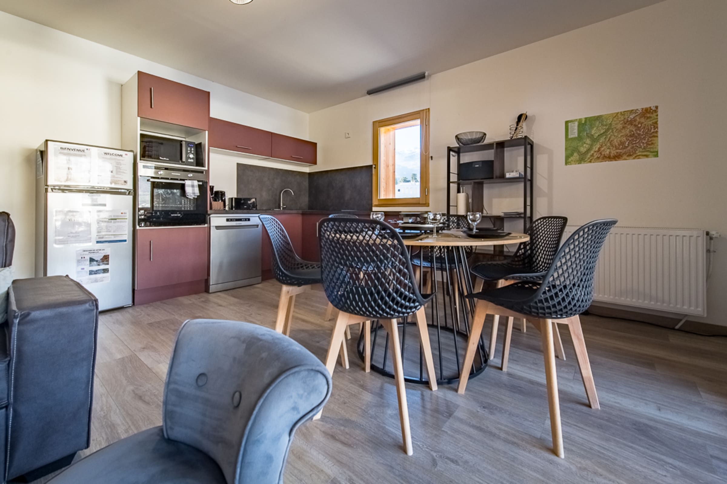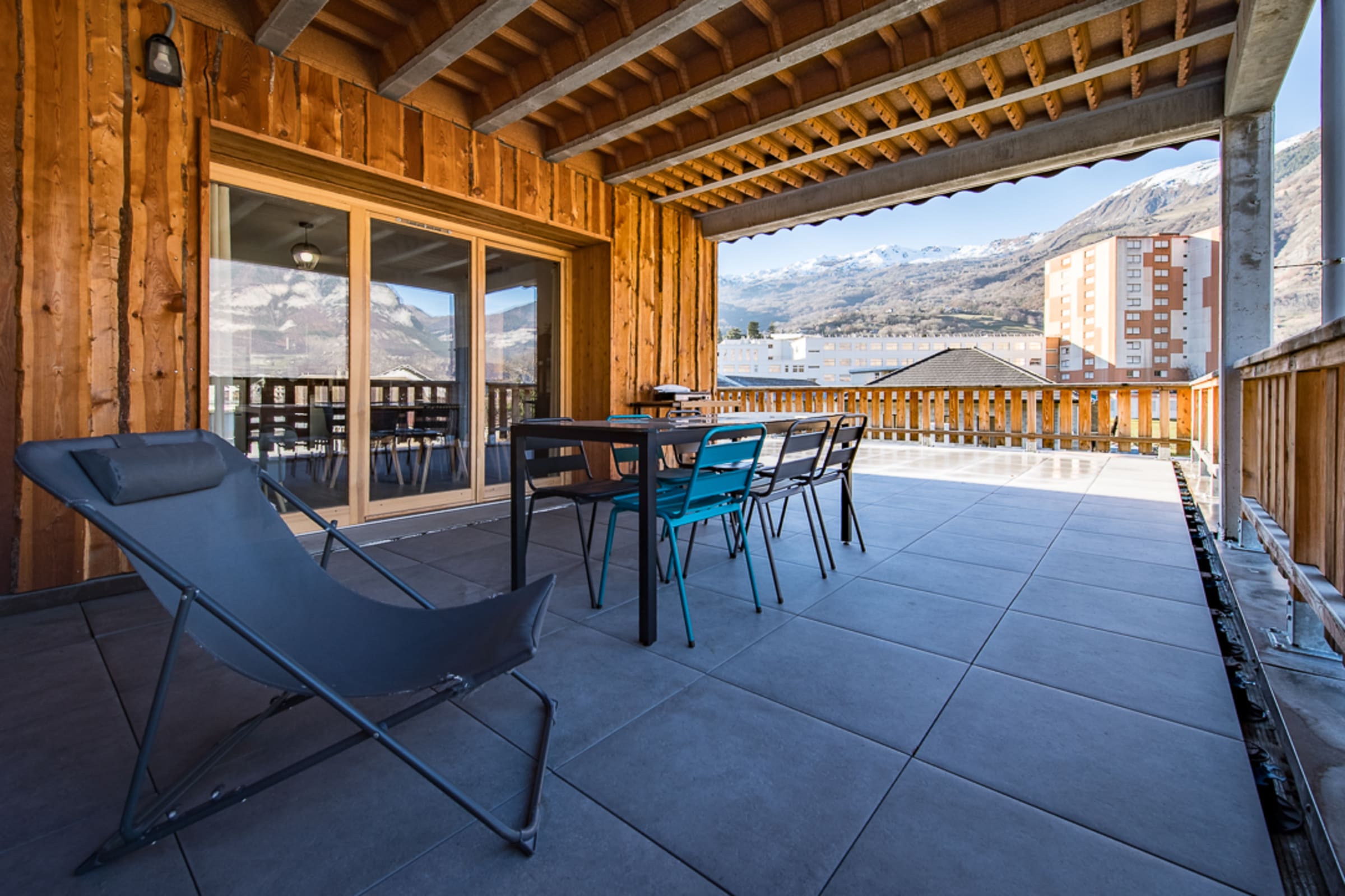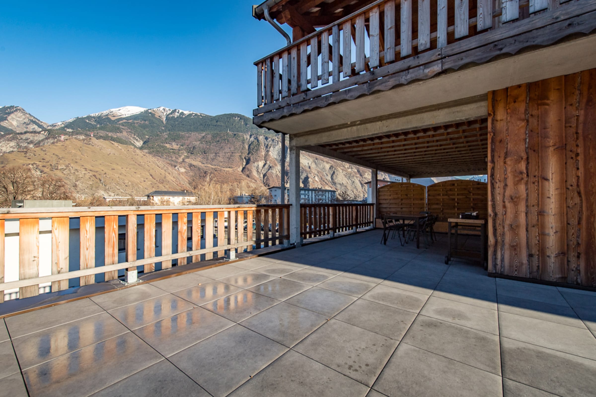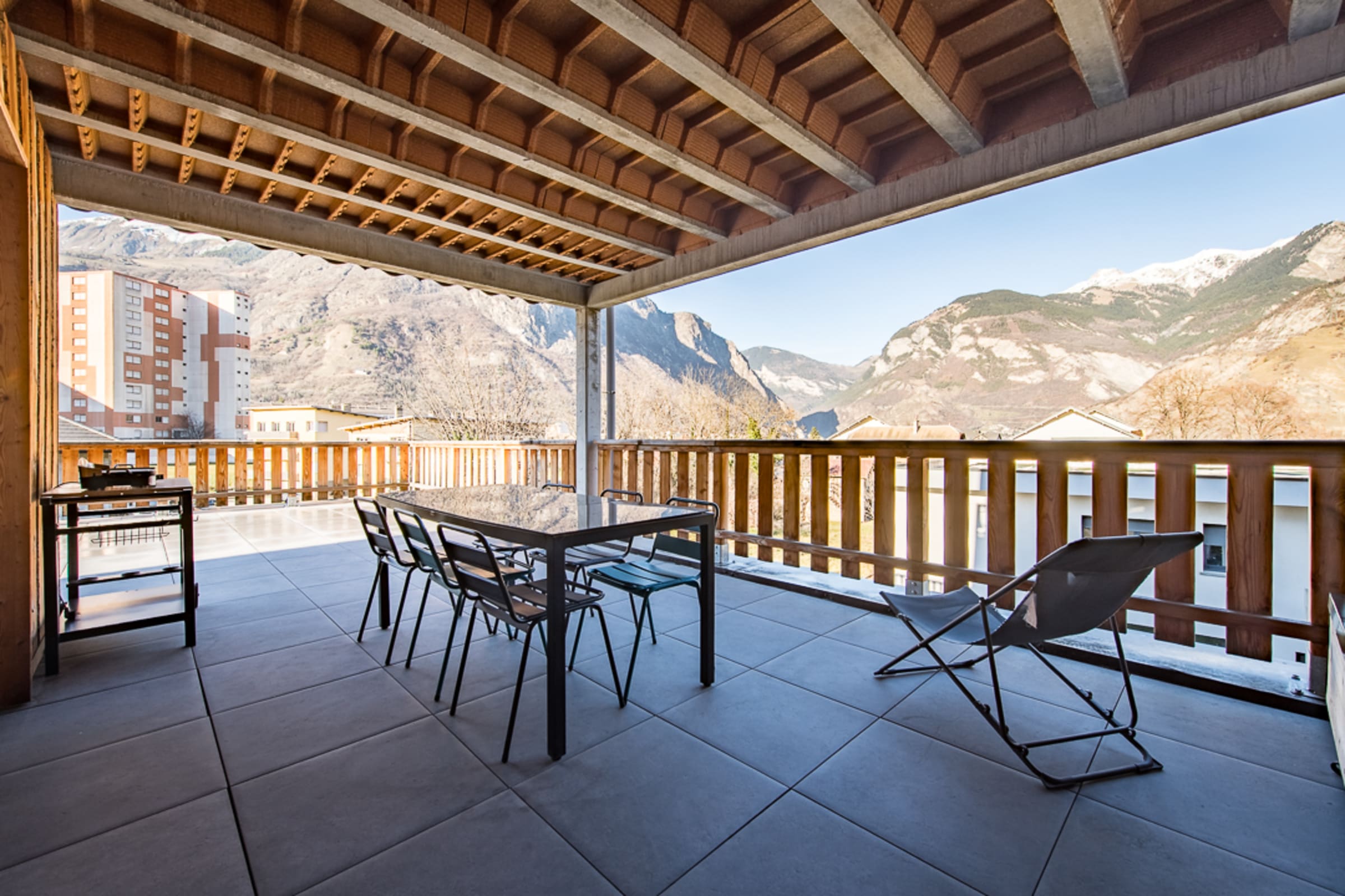 The 60 m² terrace is a true asset, offering a spacious and peaceful outdoor area where you can enjoy the stunning views of the valley and surrounding mountains. It’s the perfect spot for your morning coffee or an outdoor dinner. A plancha grill is available!