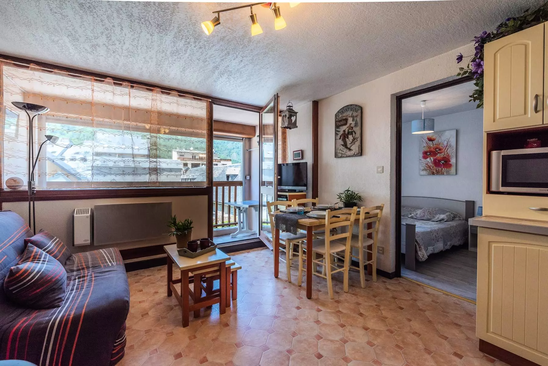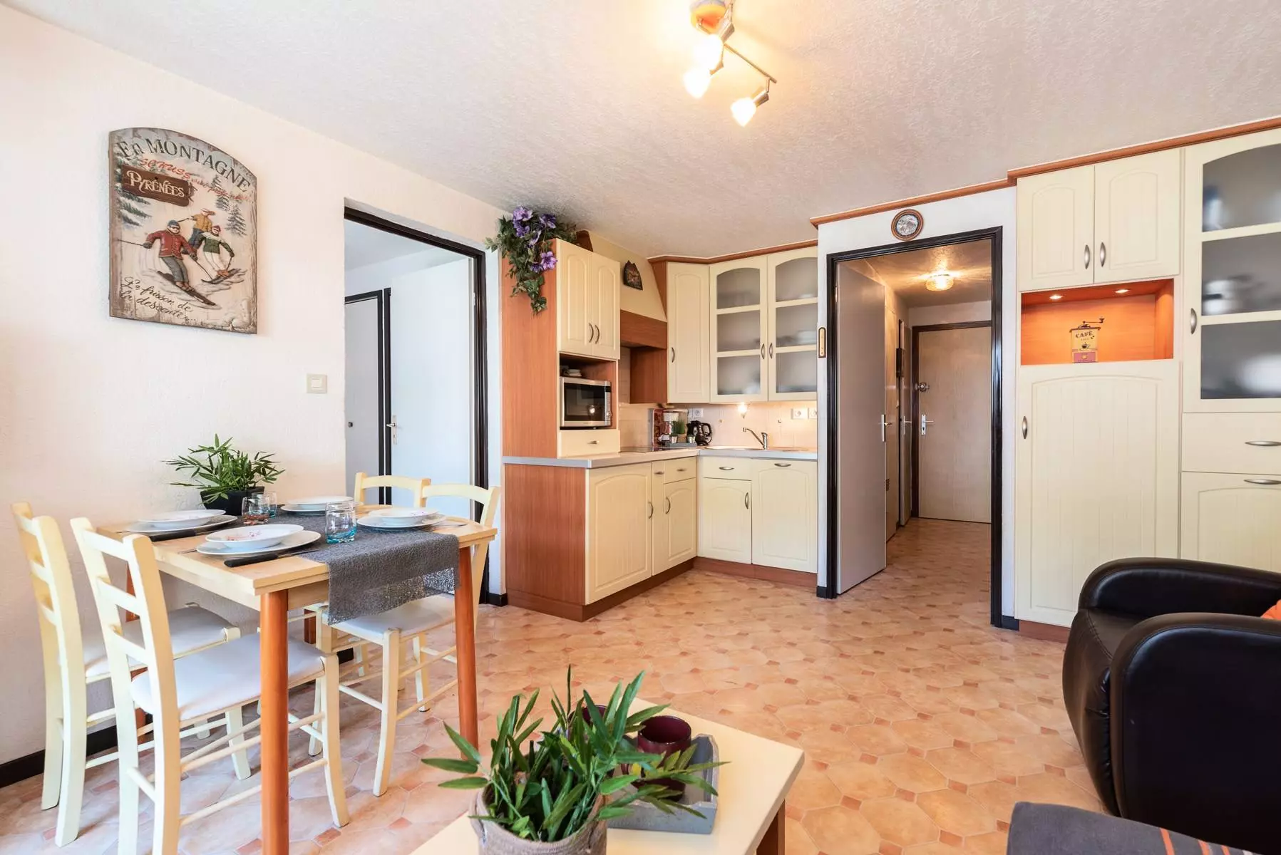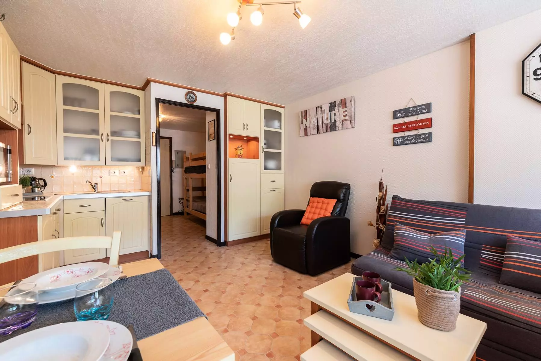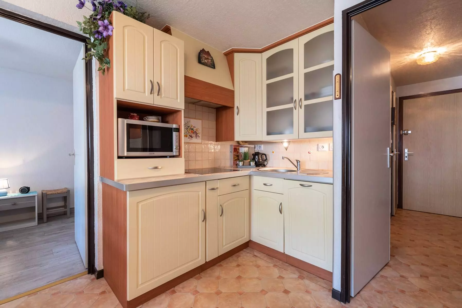 The equipped kitchenette opens onto the living room.