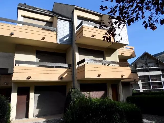 On the 1st floor without elevator, of a small residence in the thermal baths district, apartment for 6 people in duplex with a living room with a sofa bed for 2 people, a TV, kitchenette equipped with LV, opening onto a south-facing balcony. Bathroom and separate toilet, gerflex floor. Upstairs, 1 attic bedroom with 1 bed in 140 and skylight. An attic bedroom with 1 bed in 120, 2 bunk beds and skylight. Carpeted floor. Traditional pine furniture. Approx. 40 M2. Living room 15 M2 approx. Parking space and ski locker.