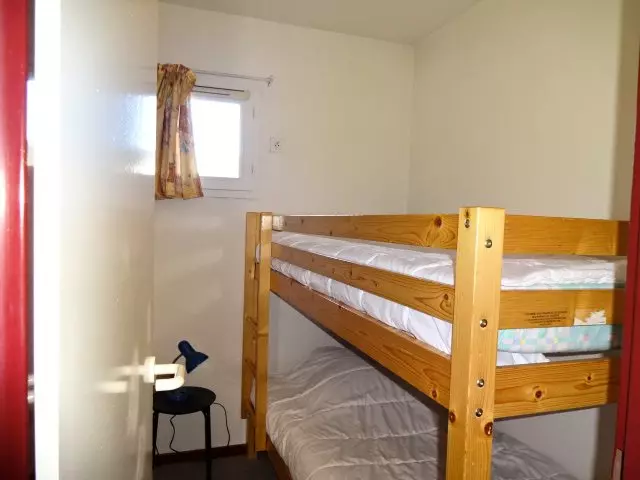 A sleeping area with 1 bed (140cm) and window, a sleeping area with 2 bunk beds (90cm) and window. Bathroom with bathtub and separate WC.