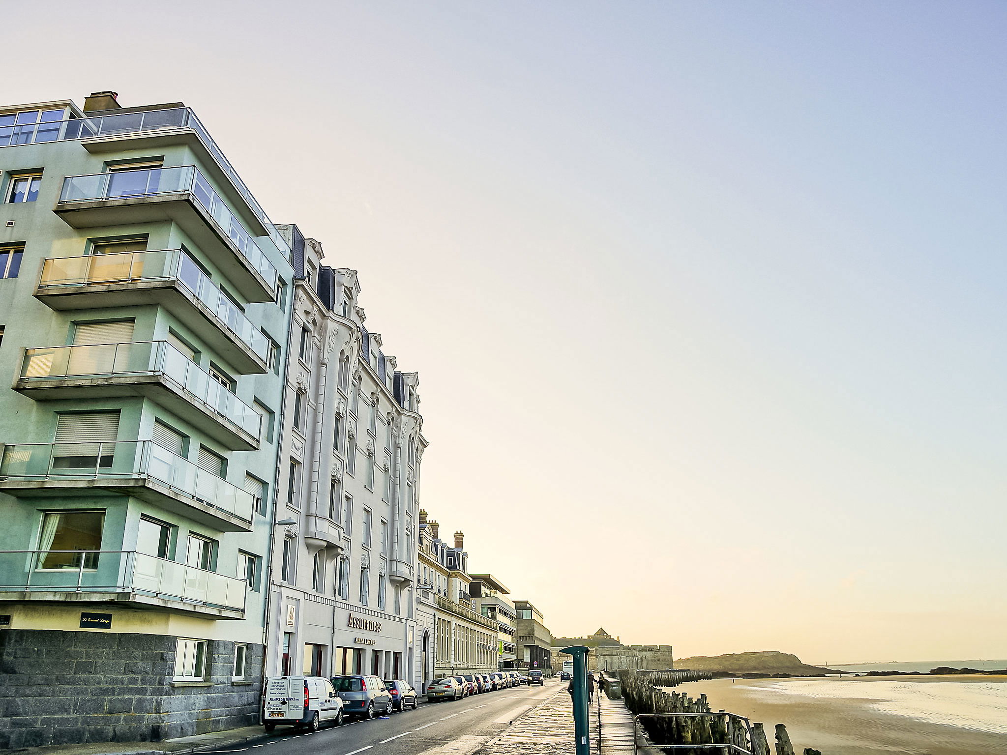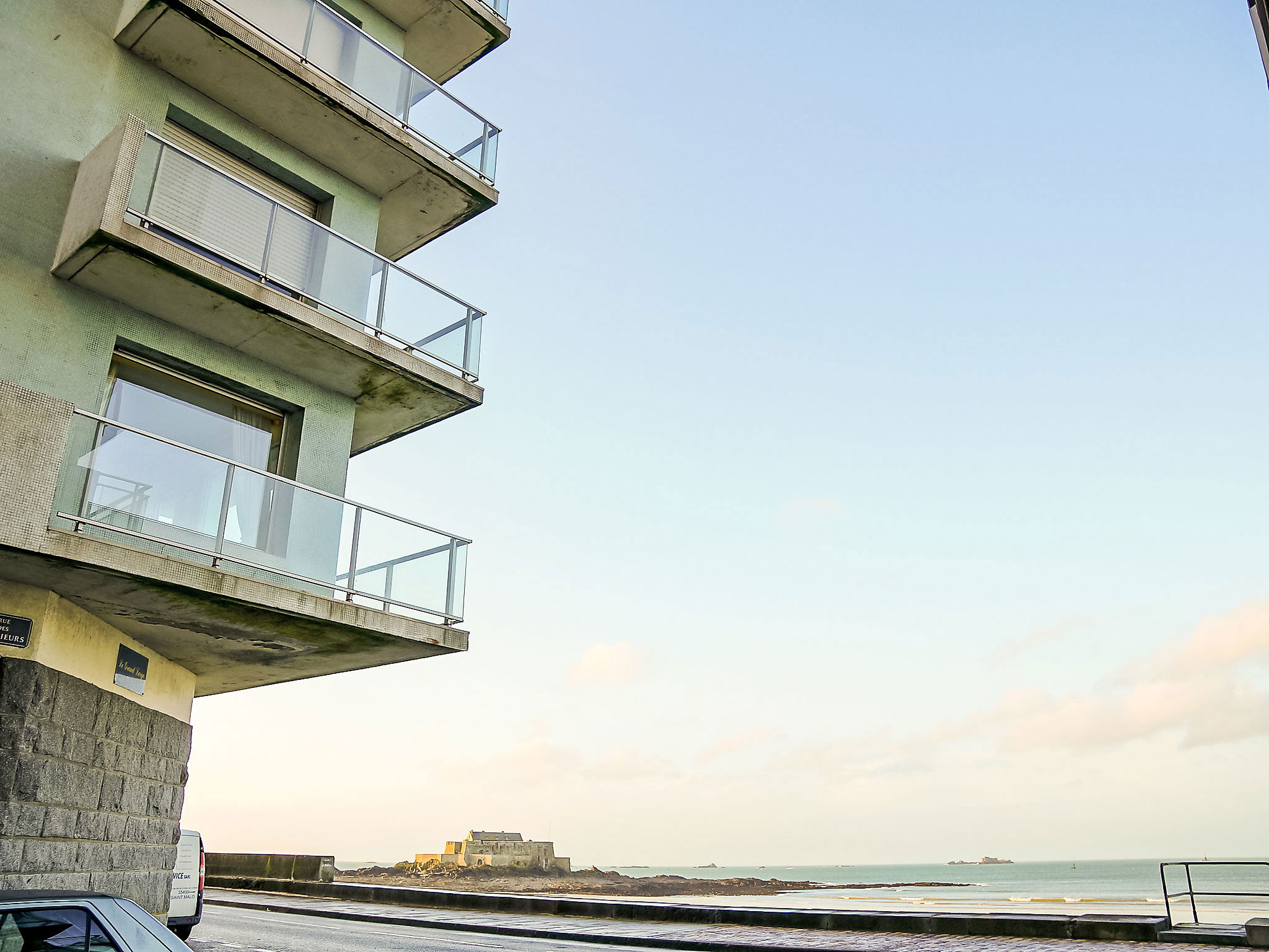 Residence "Le Grand Large", 4 storeys. In the district of Sillon, 20 m from the sea, 20 m from the beach, road to cross. In the complex: lift, central heating system, heating available only from 15.Oct. - 15.Apr.. Shop, grocery, restaurant, bar 250 m, bakery 200 m, bus stop "Intramuros" 400 m, railway station "Gare TGV St Malo" 1.2 km, ferry "Gare maritime du Naye" 1.9 km, sandy beach "Grande Plage du sillon" 20 m, park "La Briantais" 4 km, diving center 1.5 km, indoor swimming pool 1.5 km, thermal baths "Thermes Marin" 2 km. Sports harbour 250 m, golf course (18 hole) 17 km, surf school 1.7 km, sailing school 1.3 km. Nearby attractions: Le Mont St michel 56 km, Cancale 15 km, Dinan 33 km, Dinard 15 km, Casino Saint-Malo 300 m, Aquarium de St Malo 15 km. The keys‘ handover takes place by the agency in Saint Malo, 2 km.