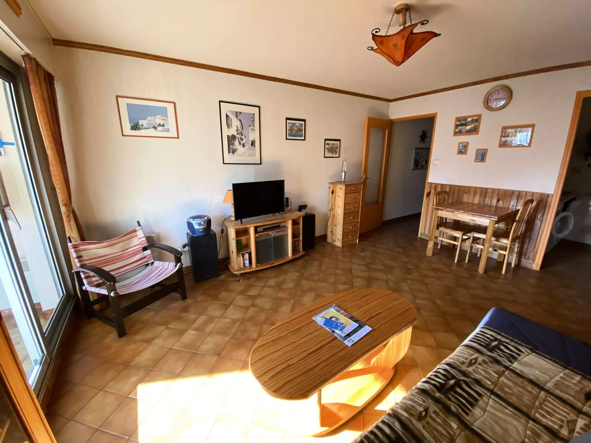1 bedroom apartment, 42m² + 6m² loggia, on the 3rd and top floor, sleeps 6/7, bedroom with closet, sitting area, equipped kitchen area, large bright living room opening onto loggia, bathroom, separate WC, shared parking in the residence.