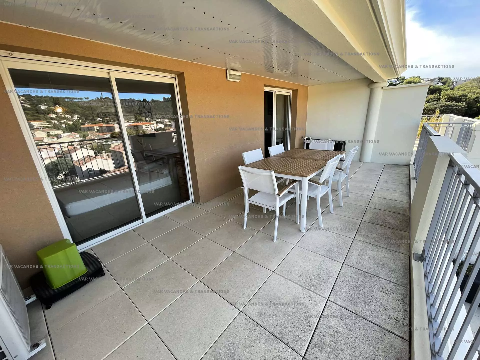 Large furnished terrace of 20 m² with water point (garden hose), facing the port, apartment of 52 m², sleeps 5.