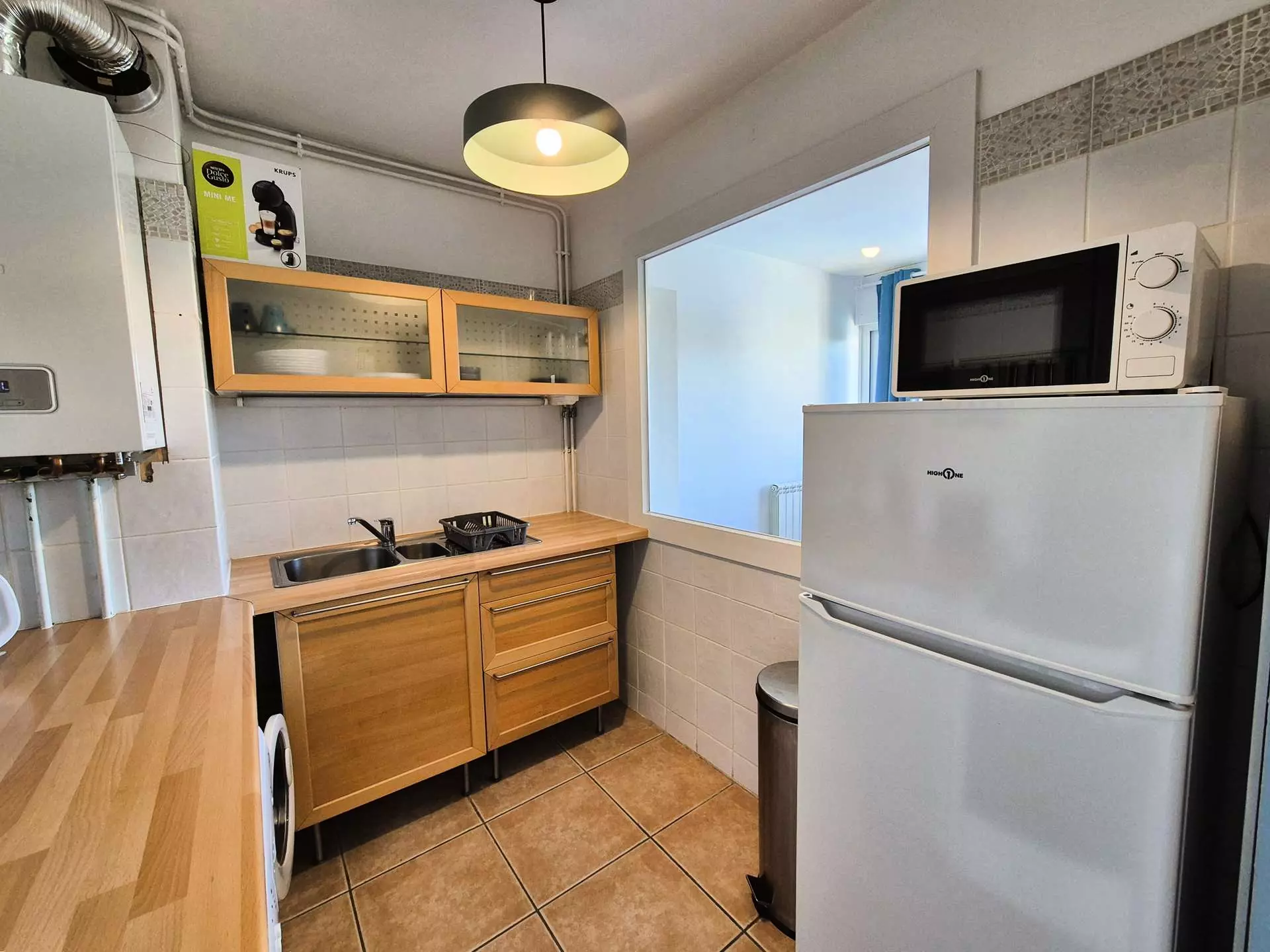 - Hob (3 vitro burners), oven, microwave, refrigerator with freezer compartment, pod coffee maker (dolce gusto), kettle, toaster