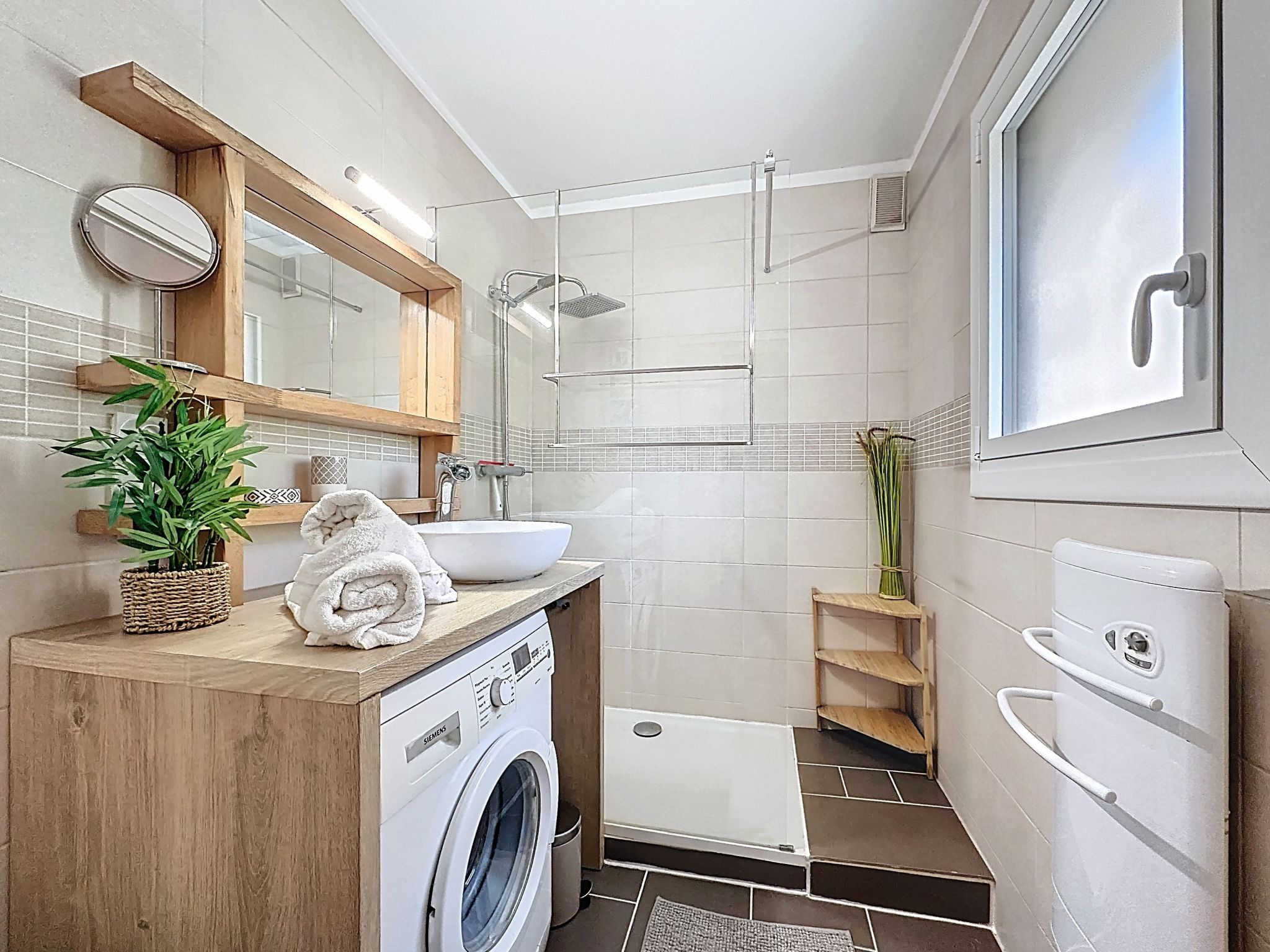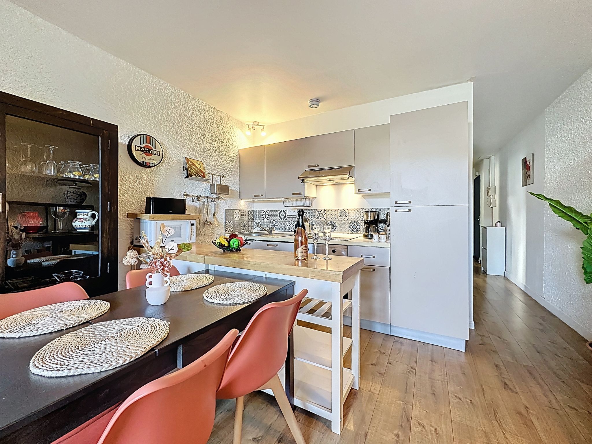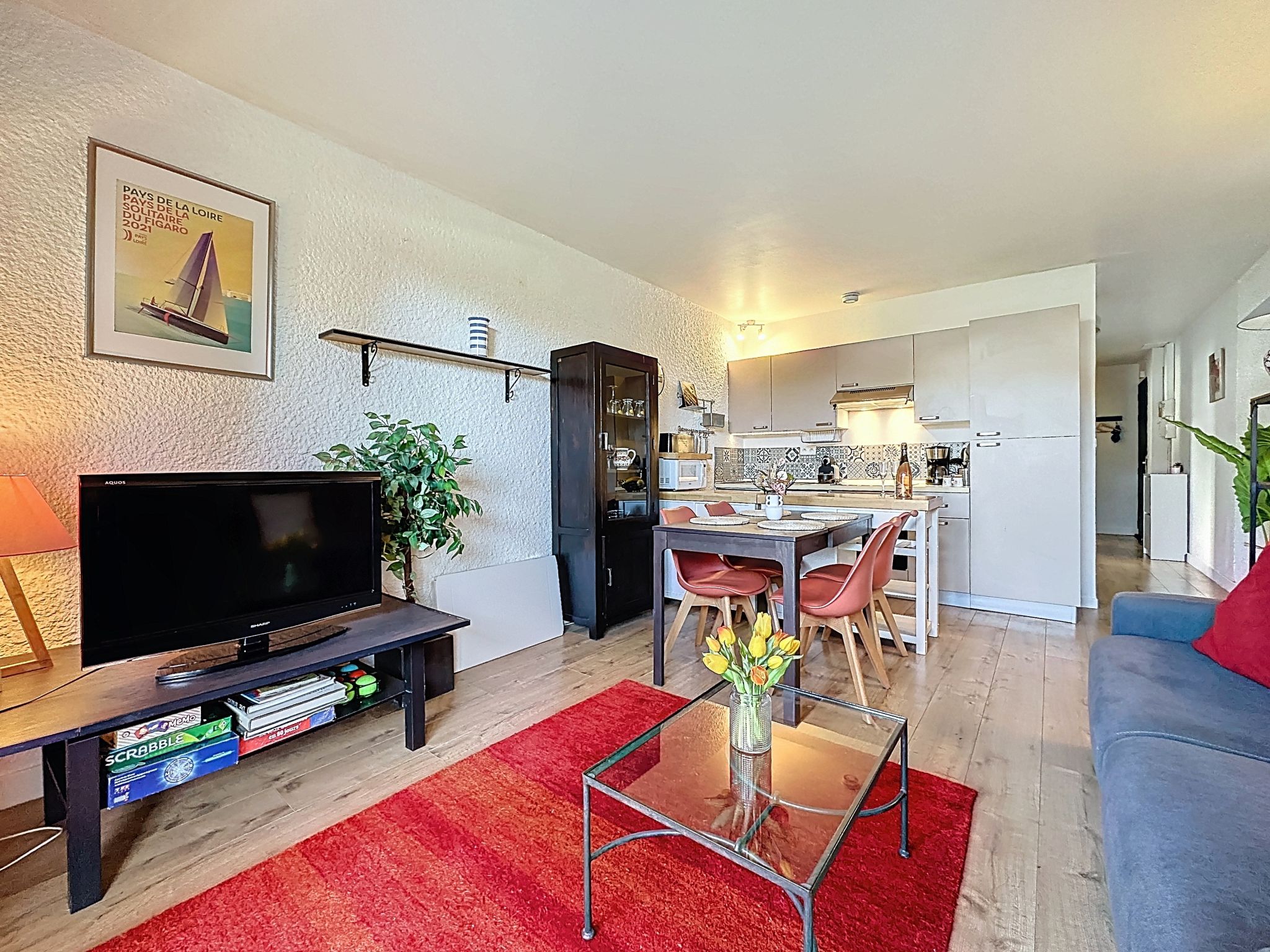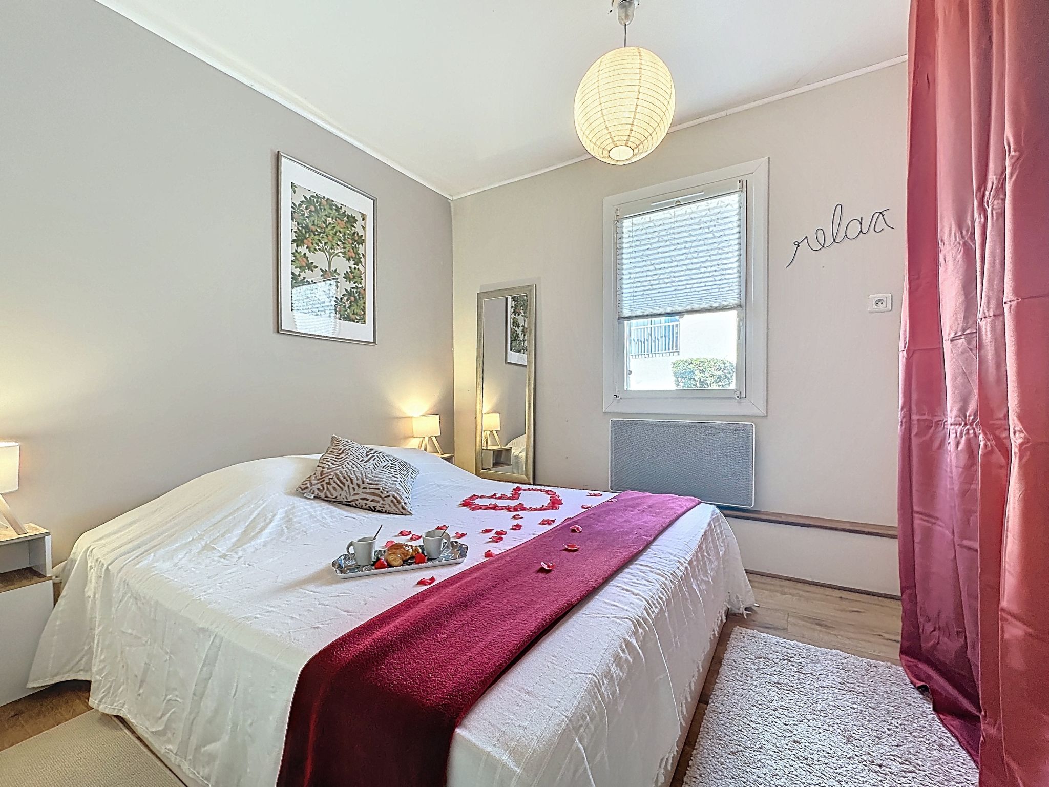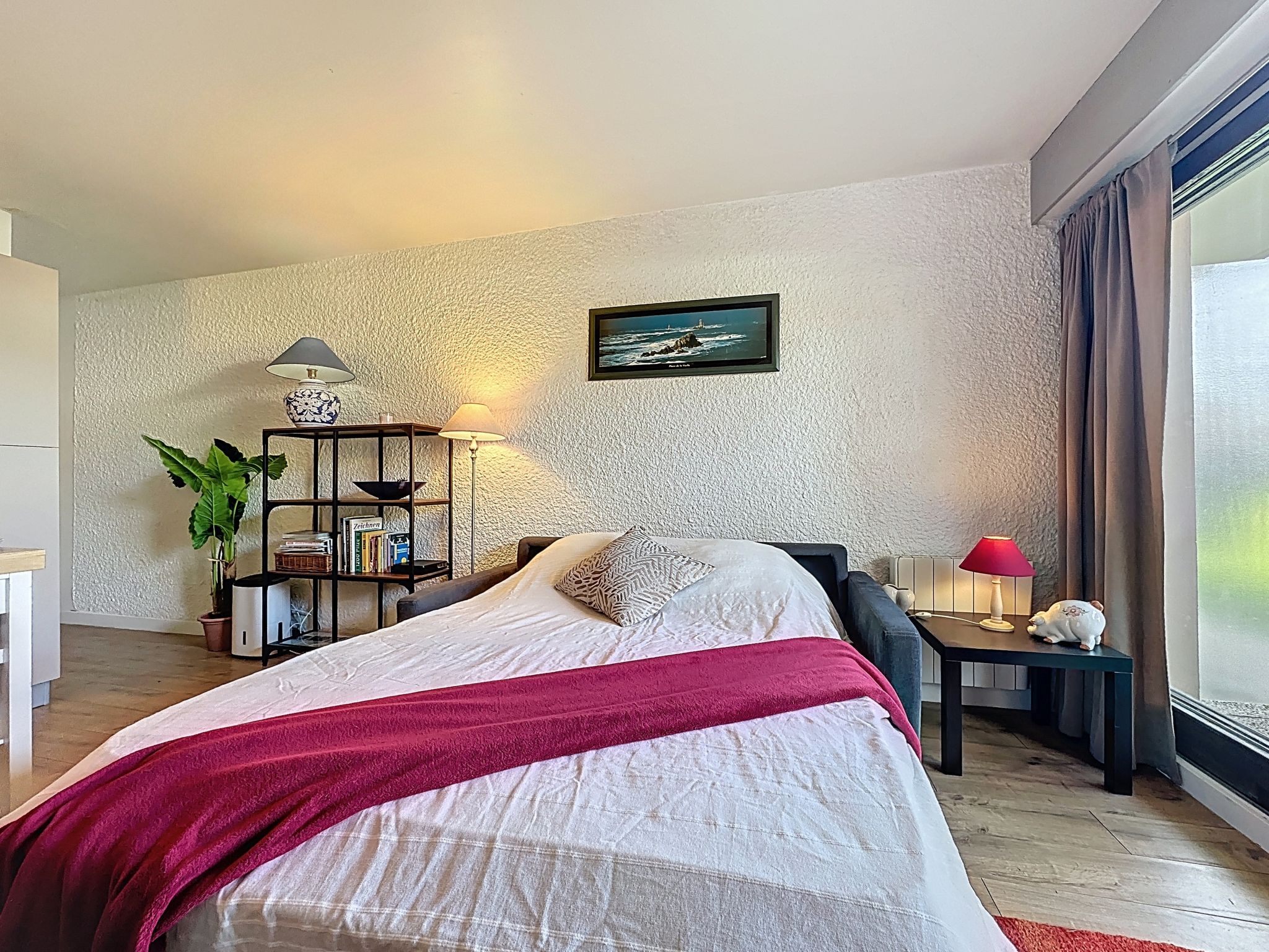 2-room apartment 40 m2, on the ground floor. Comfortable furnishings: living/dining room with 1 double sofabed (1 x 140 cm, length 190 cm), TV (flat screen). 1 room with 1 french bed (1 x 160 cm, length 200 cm). Open kitchen (oven, dishwasher, 1 induction hot plates, 4 gas rings, toaster, kettle, microwave, electric coffee machine, Capsules for coffee machine (Nespresso) extra). Shower/WC. Electric heating. Small terrace 5 m2, west facing position, small garden 10 m2. Terrace furniture. Facilities: washing machine, iron. Internet (WiFi, free). Parking space n 89 (1 car). Please note: non-smokers only. Maximum 1 small pet/ dog allowed. Smoke alarm. Offer by a private individual according to Art. 155, IV of CGI. 44182000427UI