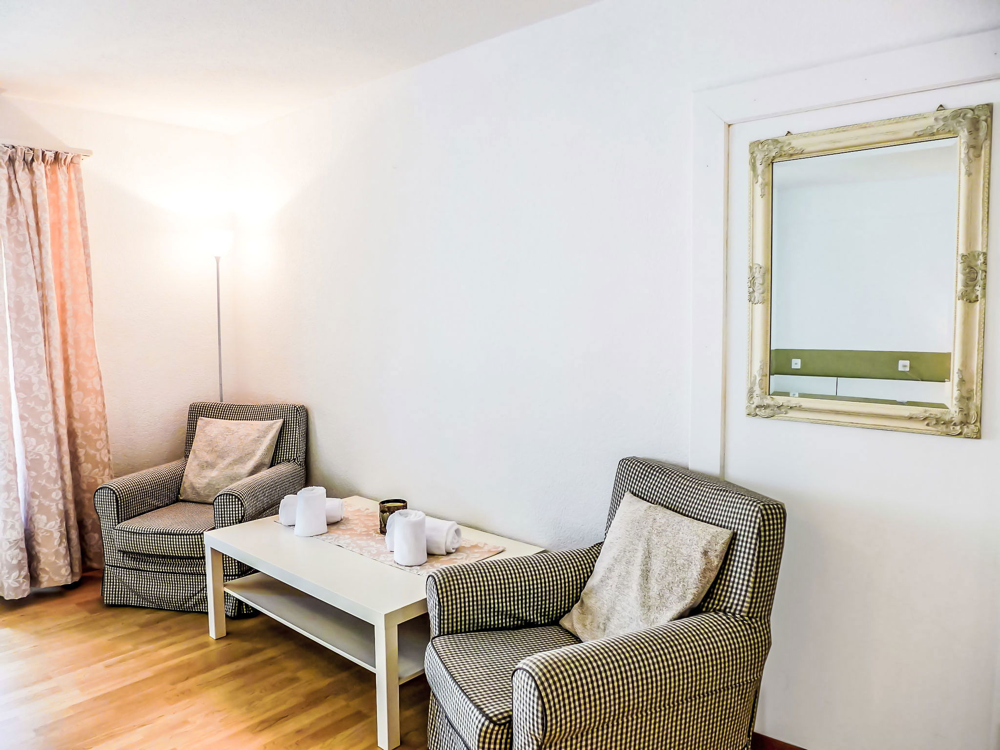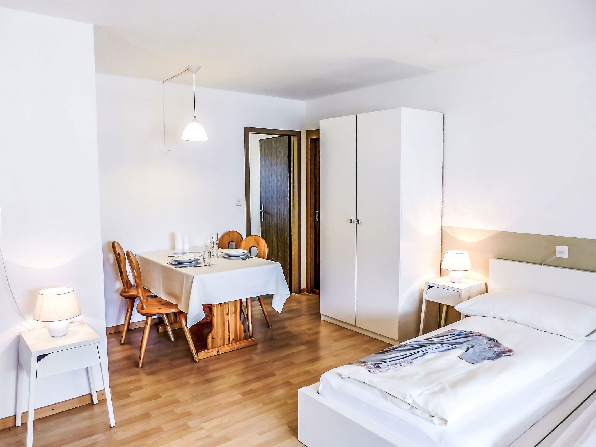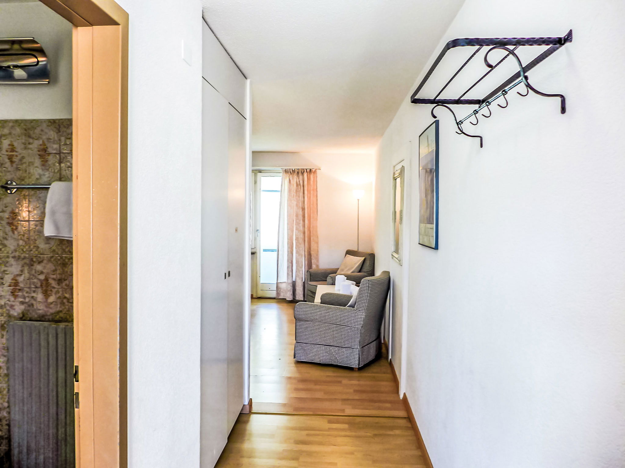 "Chesa Ova Cotschna 304", 1-room apartment 32 m2 on 3rd floor, west facing position. Modern and cosy furnishings: living/sleeping room with 1 double bed (2 x 90 cm, length 200 cm), dining table and TV (flat screen). Exit to the loggia. Small kitchen (oven, 4 ceramic glass hob hotplates, toaster, kettle, electric coffee machine). Bath/WC. Balcony furniture. View of the mountains and the resort. Facilities: hair dryer. Internet (WiFi, free). Please note: non-smokers only, no parking. Maximum 1 pet/ dog allowed.