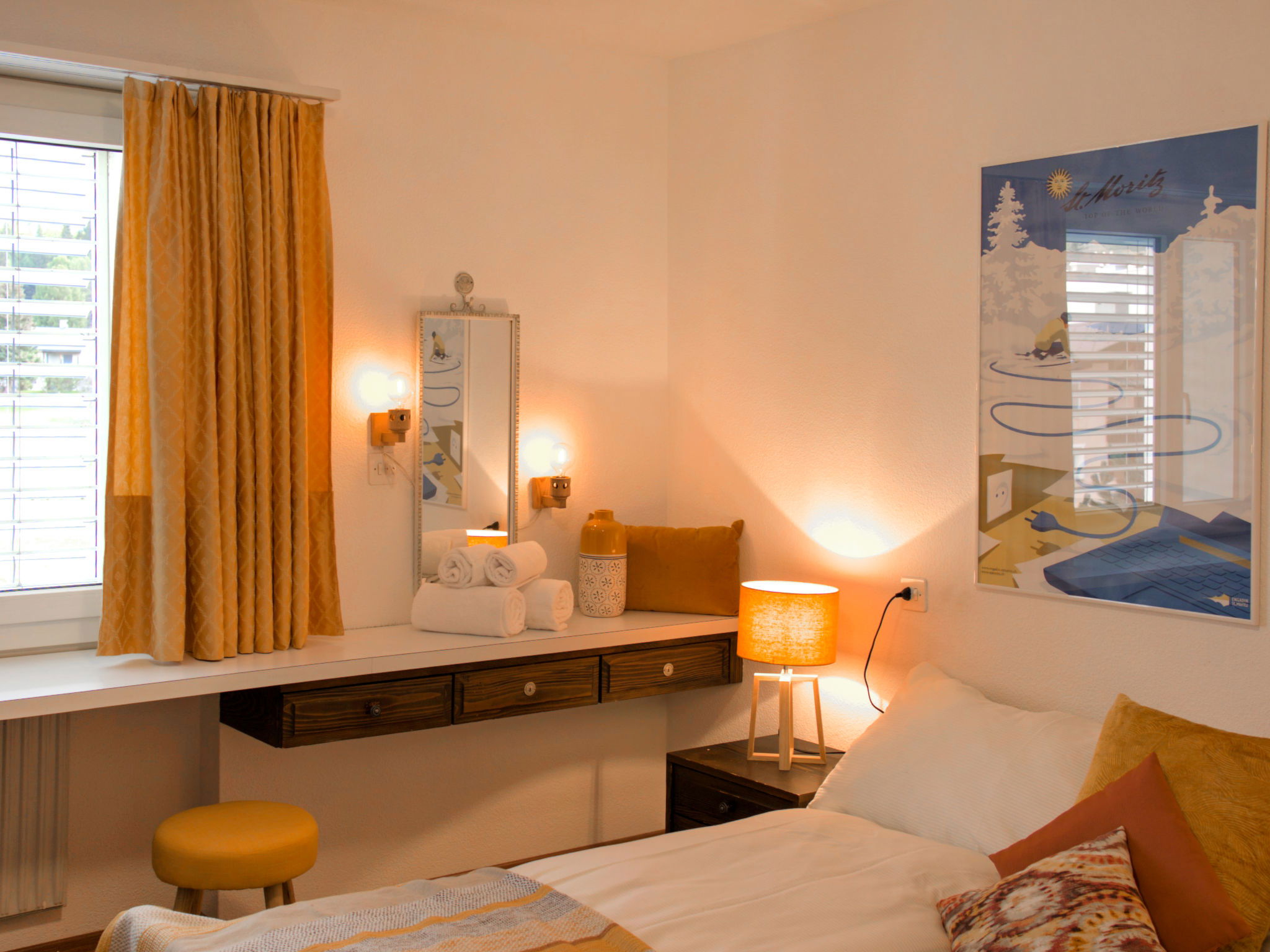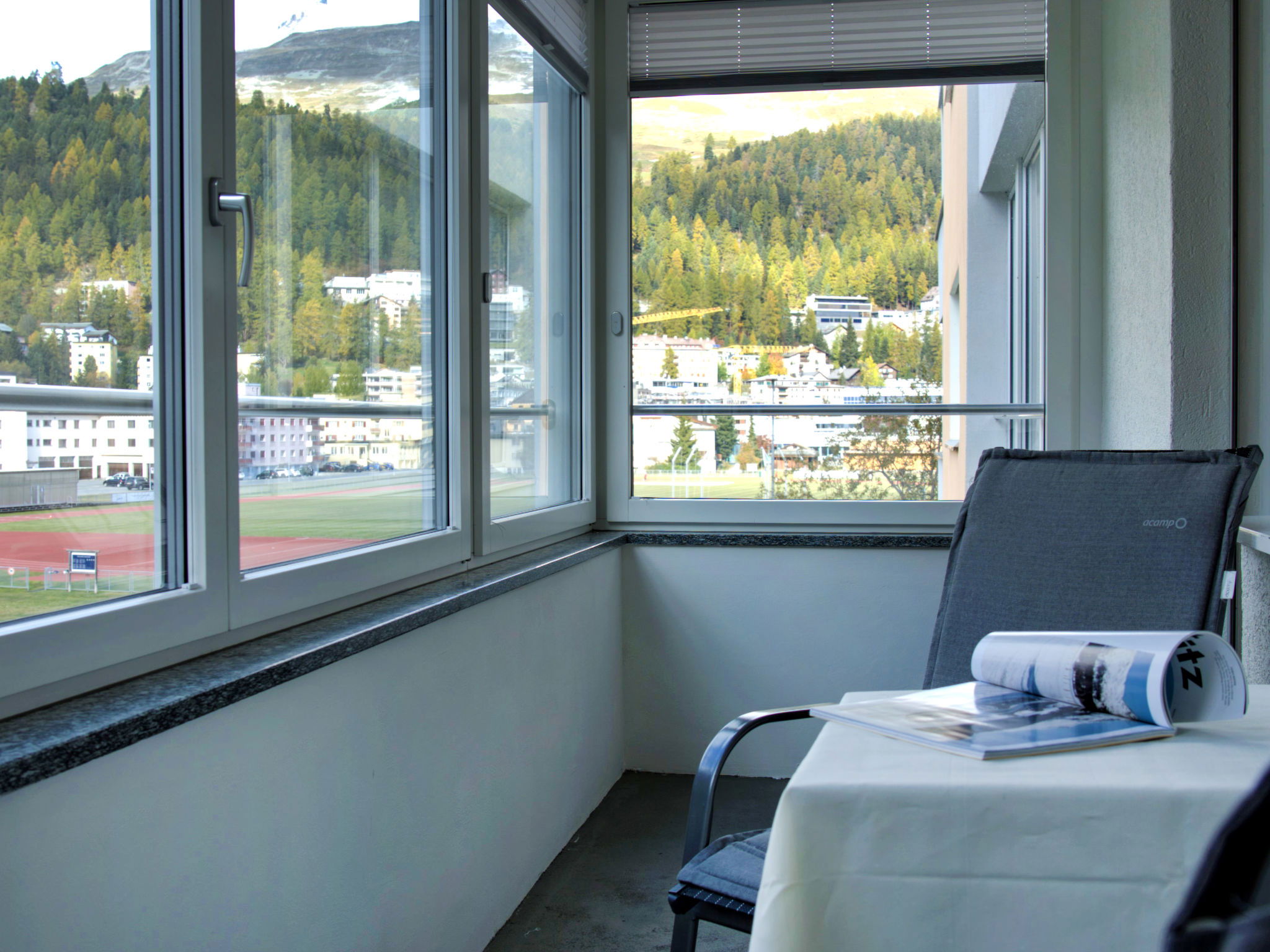 St. Moritz-Bad: Very large apartment house "Chesa Ova Cotschna", 9 storeys, renovated in 2011. In the resort 350 m from the centre of St.Moritz-Bad, in a quiet, sunny position, 300 m from the lake, 900 m from the skiing area. In the house: lift, storage room for bicycles, storage room for skis, central heating system. Shop 350 m, supermarket 800 m, restaurant 50 m, bar 350 m, bakery 600 m, café 350 m, bicycle rental 350 m, bus stop "St. Moritz Bad, Sonne" 50 m, railway station "St. Moritz" 2 km, indoor swimming pool 400 m, thermal baths "Heilbadzentrum St. Moritz", lake St. Moritzer See 300 m. Golf course (18 hole) 7.3 km, surf school 5.3 km, tennis 1 km, indoor tennis centre 1 km, minigolf 400 m, riding stable 2.8 km, walking paths from the house, cycle lane 200 m, cable car 900 m, ski lift, slopes 900 m, ski rental 350 m, ski bus stop 50 m, ski school 2 km, children's ski school 2 km, sled run 5.7 km, cross country ski track 100 m, ice rink 450 m, children's playground 500 m. Nearby attractions: Segantini Museum 2.2 km, Engadiner Museum 1.2 km, Mili Weber-Haus 2.9 km, Olympia Bob Run mit Museum 2.6 km, Nietzsche Museum in Sils-Maria 9.5 km. Well-known ski regions can easily be reached: Corviglia Piz Nair 900 m, Corvatsch - Furtschellas 6.5 km, Diavolezza - Lagalb 20 km. Well-known lakes can easily be reached: St.Moritzer See 300 m, Silvaplaner See 5.2 km, Silser See 9.5 km. Hiking paths: Stazerwald & Stazersee, Corviglia Piz Nair, Muottas Muragl. Please note: the keys‘ handover takes place by the agency in St. Moritz Bad. Additional accommodations can be booked.