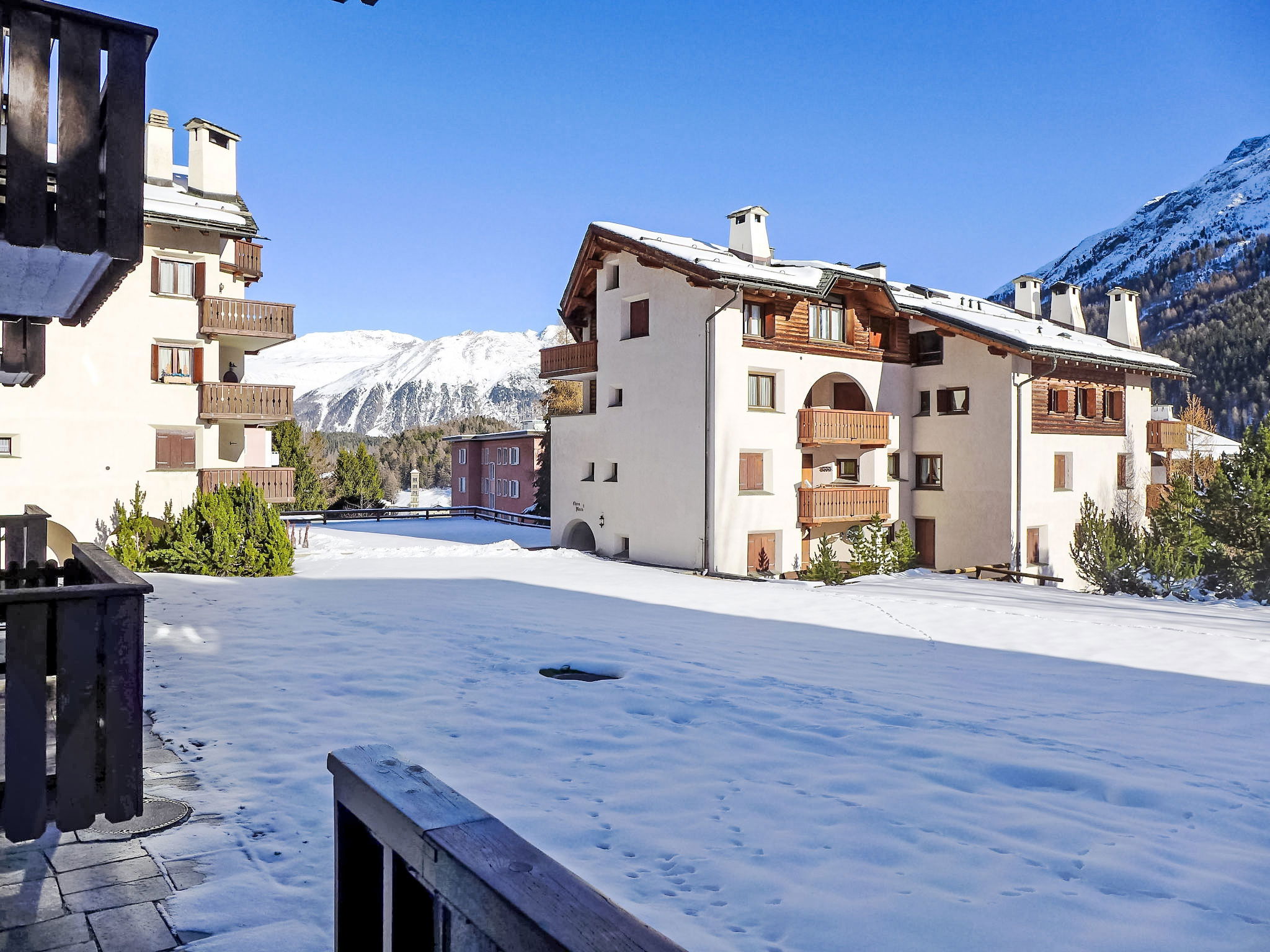 St. Moritz Bad: Comfortable apartment house "Chesa Arlas", 4 storeys, built in 1965. In a sunny, elevated position in the residential district, 800 m from the lake, 1.4 km from the skiing area. In the house: lift, central heating system, washing machine, tumble dryer (for shared use, extra). In Winter: please take snow chains, 4x4 car recommended in winter. Steep footpath to the house. Single garage at the house. Shop 450 m, supermarket 400 m, restaurant 400 m, bar 400 m, bakery 450 m, café 450 m, bicycle rental 550 m, bus stop "St Moritz Bad, Via Salet", railway station 2 km, indoor swimming pool 1 km, thermal baths "Heilbadzentrum St. Moritz" 1.2 km, lake St. Moritzer See 800 m. Golf course (18 hole) 7.3 km, surf school 5.7 km, tennis 1.5 km, indoor tennis centre 1.5 km, minigolf 1 km, riding stable 2.1 km, walking paths from the house 800 m, cycle lane 1 km, cable car 1.4 km, ski lift 1.4 km, slopes 1.4 km, ski rental 800 m, ski bus stop 400 m, ski school 1.6 km, children's ski school 1.6 km, sled run 5.6 km, cross country ski track 1 km, ice rink 750 m, children's playground 1.2 km. Nearby attractions: Segantini Museum 1.7 km, Engadiner Museum 800 m, Mili Weber-Haus 2.9 km, Olympia Bob Run mit Museum 2.2 km, Nietzsche Museum in Sils-Maria 10 km. Well-known ski regions can easily be reached: Corviglia Piz Nair 1.4 km, Corvatsch - Furtschellas 7 km, Diavolezza - Lagalb 19.7 km. Well-known lakes can easily be reached: St. Moritzer See 800 m, Silvaplaner See 5.7 km, Silser See 10 km. Hiking paths: Stazerwald & Stazersee, Corviglia Piz Nair, Muottas Muragl.
