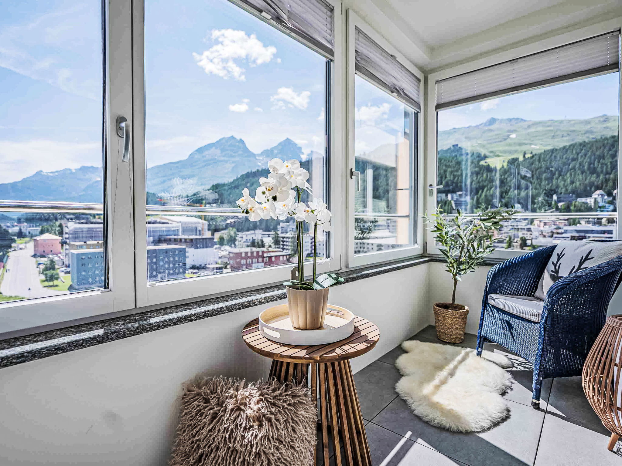 St. Moritz-Bad: Very large apartment house "Chesa Ova Cotschna", 9 storeys, renovated in 2011. In the resort 350 m from the centre of St.Moritz-Bad, in a quiet, sunny position, 300 m from the lake, 900 m from the skiing area. In the house: lift, storage room for bicycles, storage room for skis, central heating system. Shop 350 m, supermarket 800 m, restaurant 50 m, bar 350 m, bakery 600 m, café 350 m, bicycle rental 350 m, bus stop "St. Moritz Bad, Sonne" 50 m, railway station "St. Moritz" 2 km, indoor swimming pool 400 m, thermal baths "Heilbadzentrum St. Moritz", lake St. Moritzer See 300 m. Golf course (18 hole) 7.3 km, surf school 5.3 km, tennis 1 km, indoor tennis centre 1 km, minigolf 400 m, riding stable 2.8 km, walking paths from the house, cycle lane 200 m, cable car 900 m, ski lift, slopes 900 m, ski rental 350 m, ski bus stop 50 m, ski school 2 km, children's ski school 2 km, sled run 5.7 km, cross country ski track 100 m, ice rink 450 m, children's playground 500 m. Nearby attractions: Segantini Museum 2.2 km, Engadiner Museum 1.2 km, Mili Weber-Haus 2.9 km, Olympia Bob Run mit Museum 2.6 km, Nietzsche Museum in Sils-Maria 9.5 km. Well-known ski regions can easily be reached: Corviglia Piz Nair 900 m, Corvatsch - Furtschellas 6.5 km, Diavolezza - Lagalb 20 km. Well-known lakes can easily be reached: St.Moritzer See 300 m, Silvaplaner See 5.2 km, Silser See 9.5 km. Hiking paths: Stazerwald & Stazersee, Corviglia Piz Nair, Muottas Muragl. Please note: the keys‘ handover takes place by the agency in St. Moritz Bad. Additional accommodations can be booked.