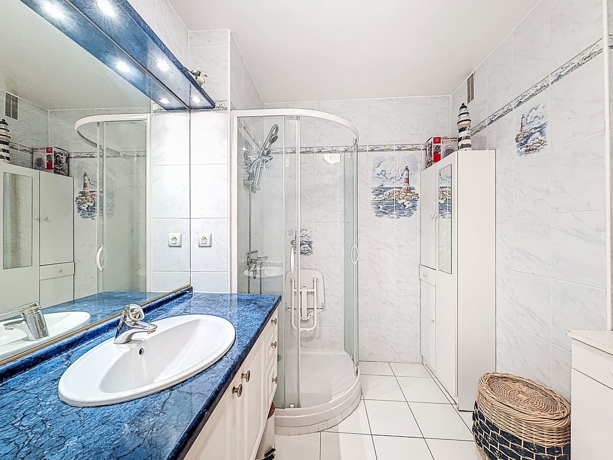 3-room apartment 75 m2 on 1st floor. Comfortable furnishings: living/dining room with TV (flat screen). Exit to the terrace, west facing position. 1 room with 1 french bed (1 x 140 cm, length 190 cm). Exit to the terrace. 1 room with 2 beds (90 cm, length 190 cm). Kitchen (oven, 4 gas rings, toaster, kettle, electric coffee machine). Shower, sep. WC. Terrace 15 m2, west facing position. Terrace furniture (2). Facilities: washing machine, hair dryer. Internet (WiFi, free). Parking space n 130. Please note: non-smokers only. Maximum 1 pet/ dog allowed. Smoke alarm. Offer by a private individual according to Art. 155, IV of CGI. 56186001242QY